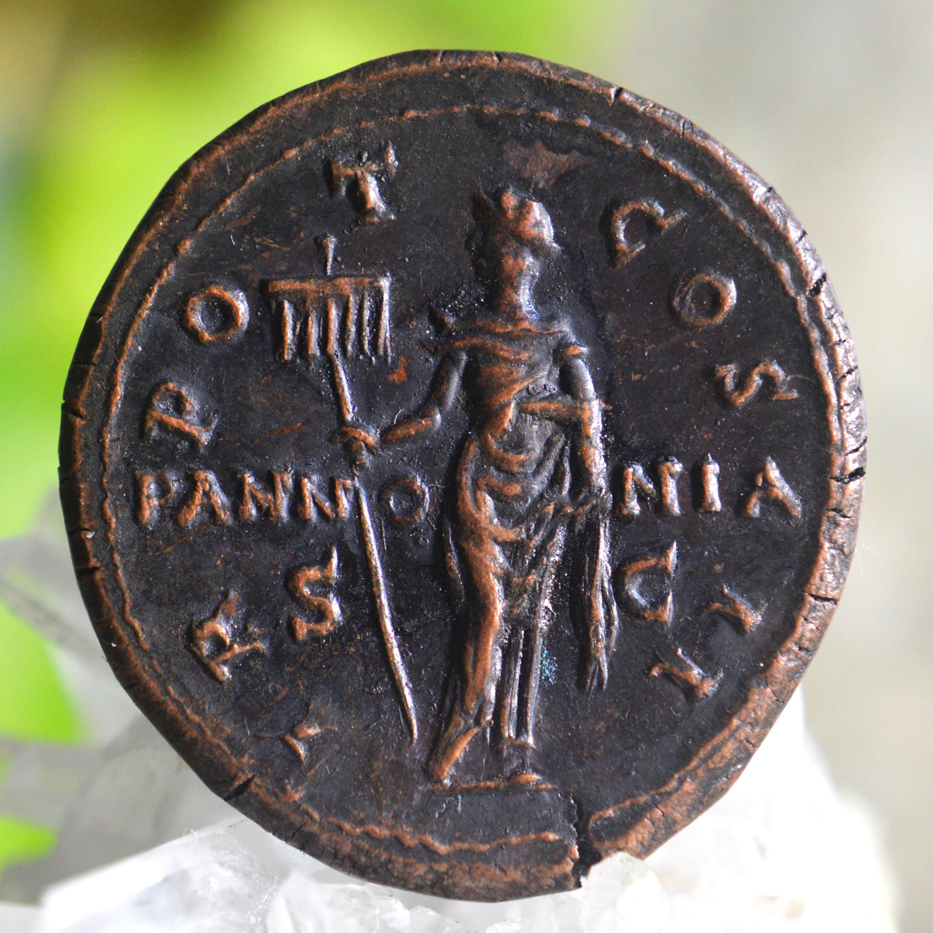Rev.: TR POT COS II, PANNO-NIA/S C across field, Pannonia standing left, holding vexillum and gathering dress at left side.