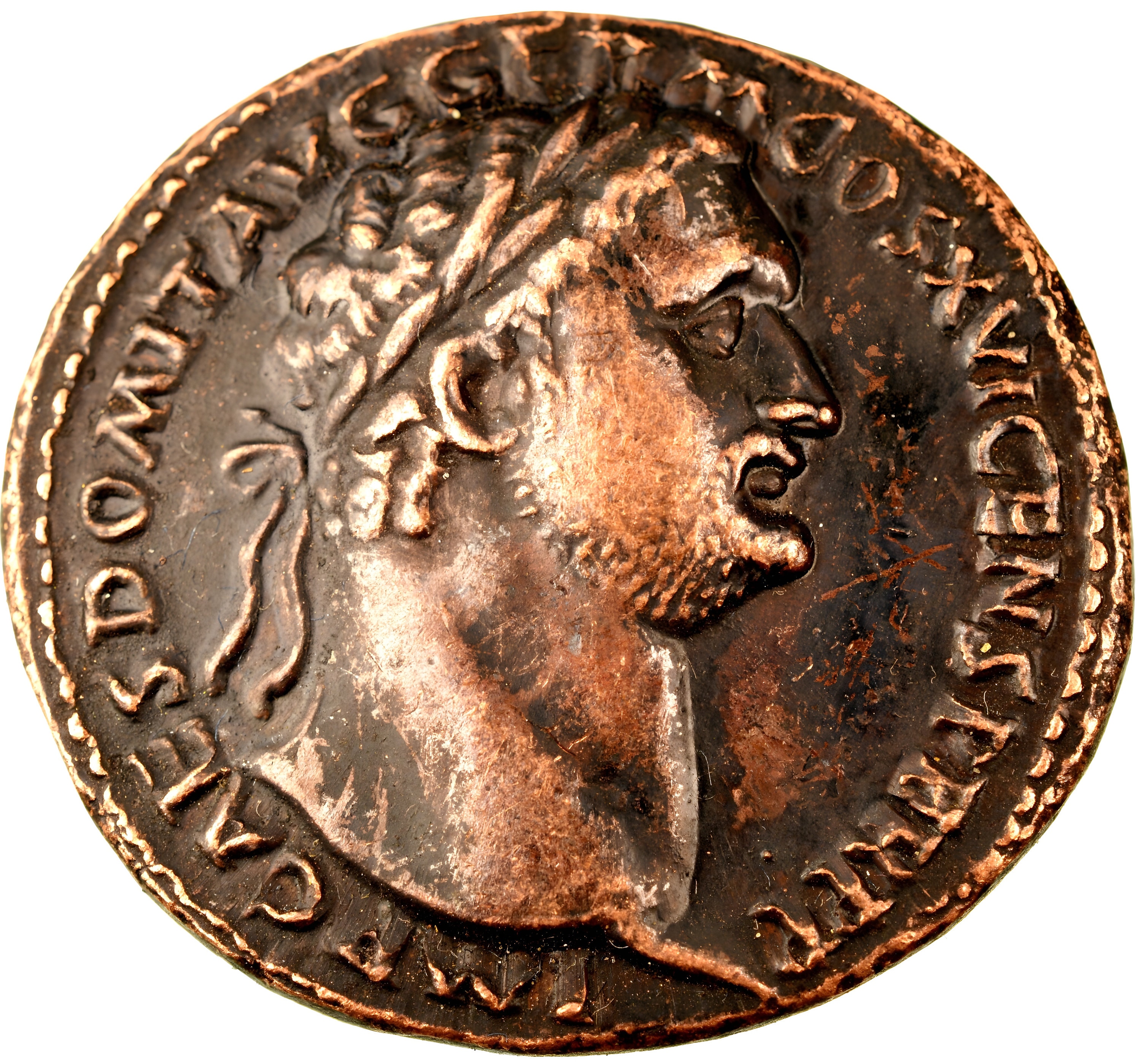 Inscription Obverse: Bust of Domitianus to the right, IMP CAES DOMIT AVG GERM COS XVI CENS PER P P