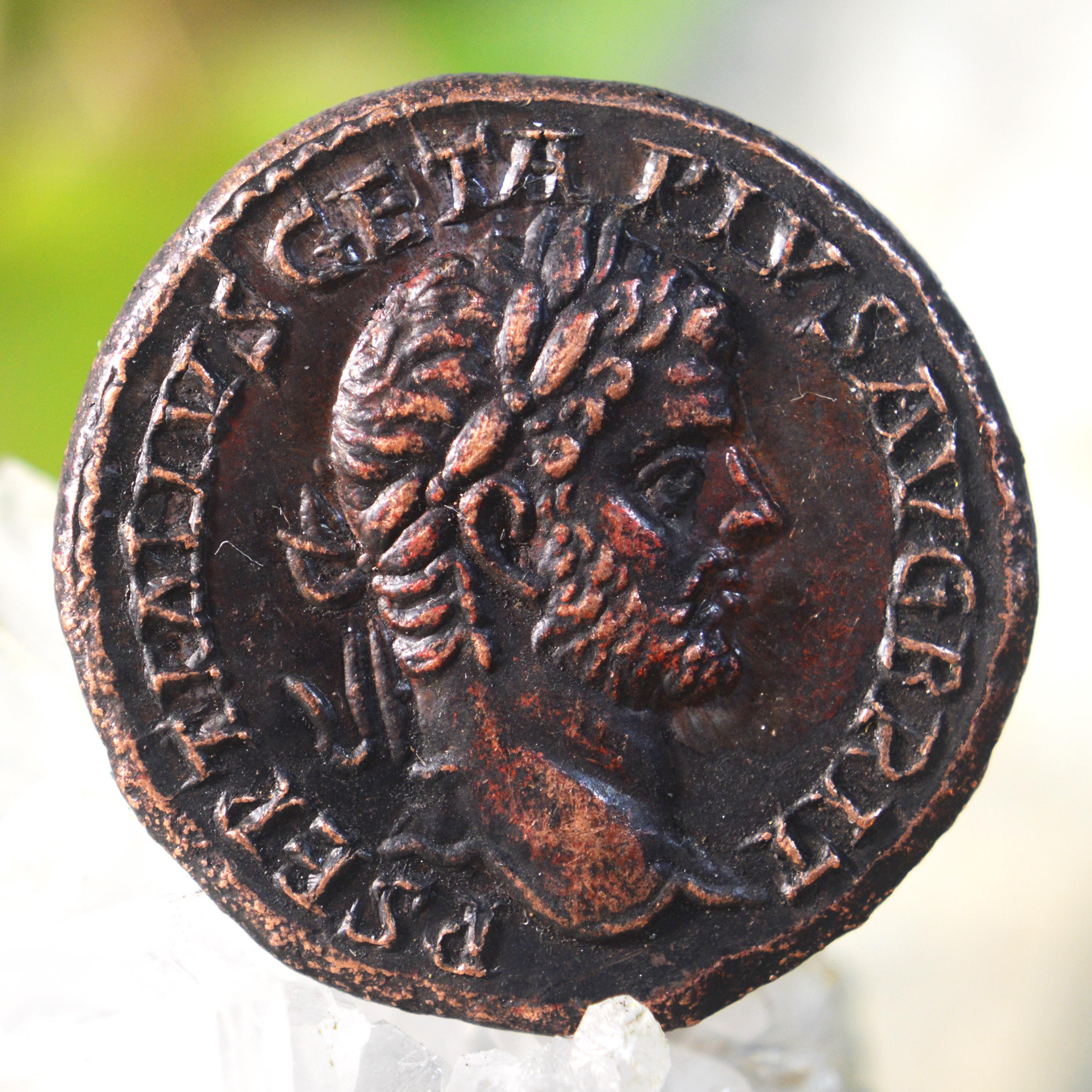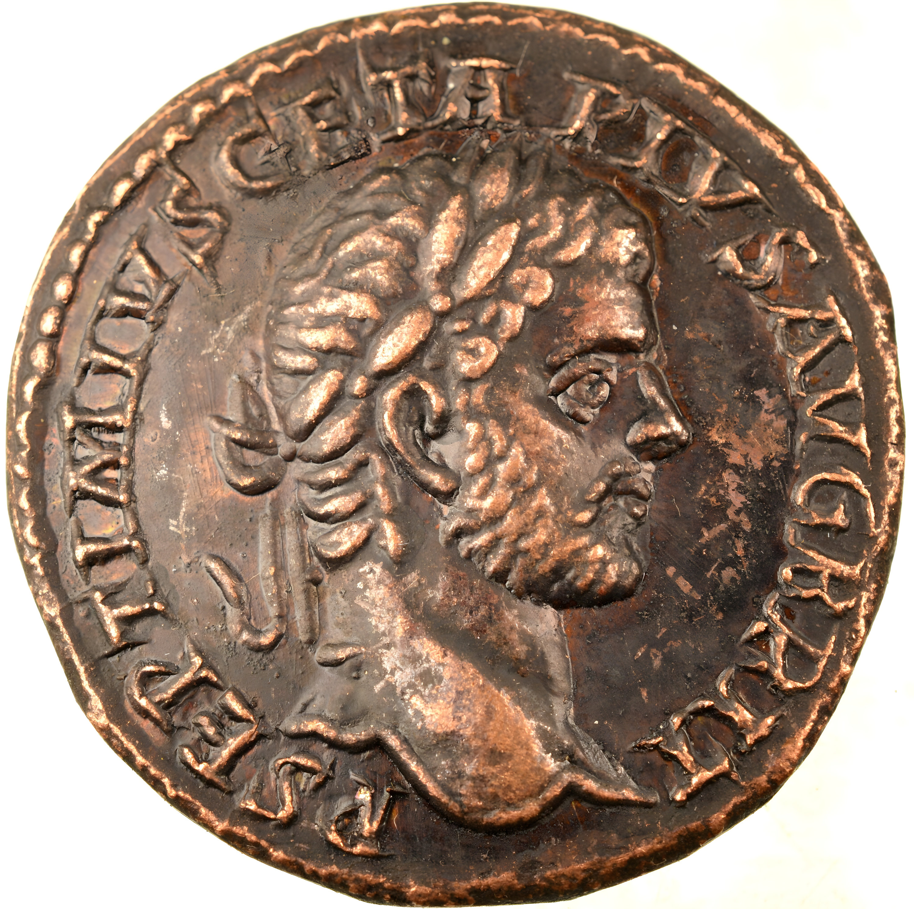 Obverse side: Head of Geta, laureate, right, P SEPTIMIVS GETA PIVS AVG BRIT