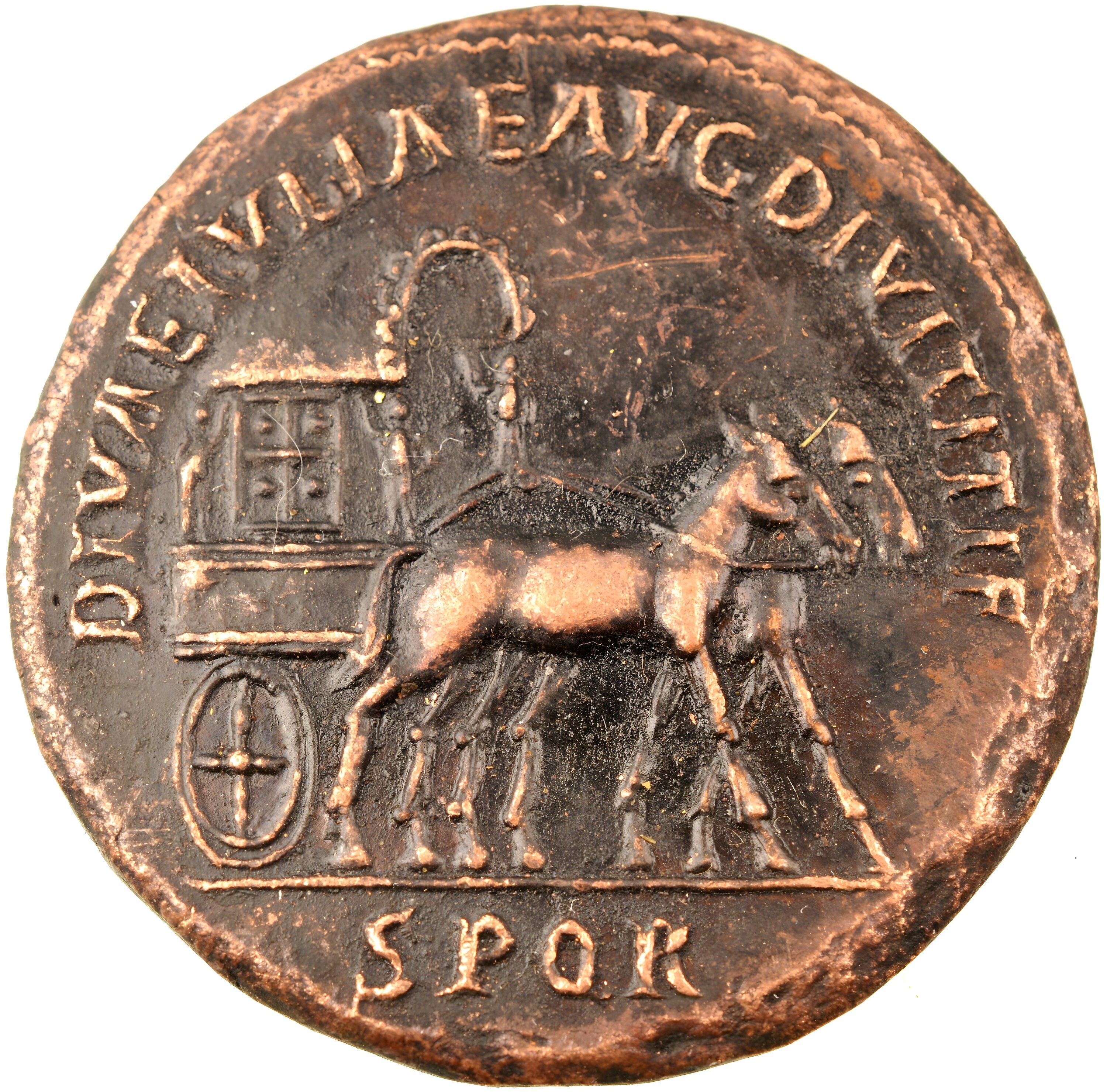 Obverse side: Carpentum drawn right by two mules, DIVAE IVLIAE AVG DIVI TITI F, SPQR in ex