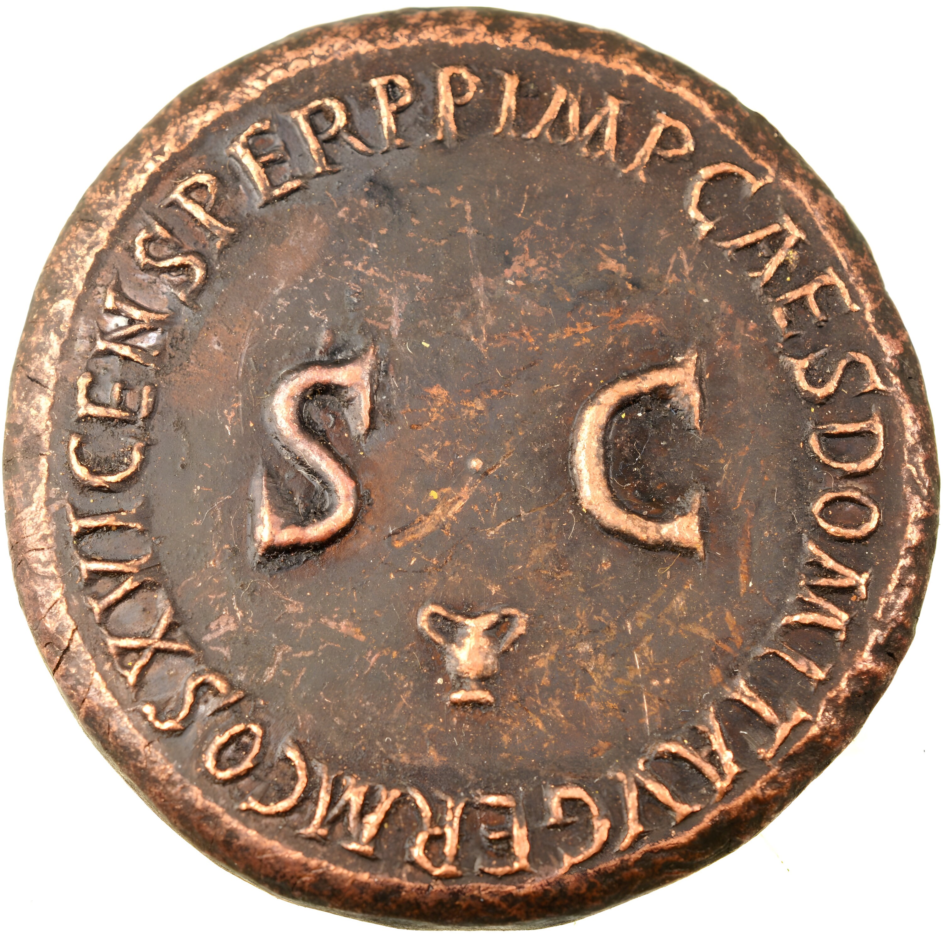Reverse side: Large SC, IMP CAES DOMIT AVG GERM COS XVI CENS PER P P around large S C