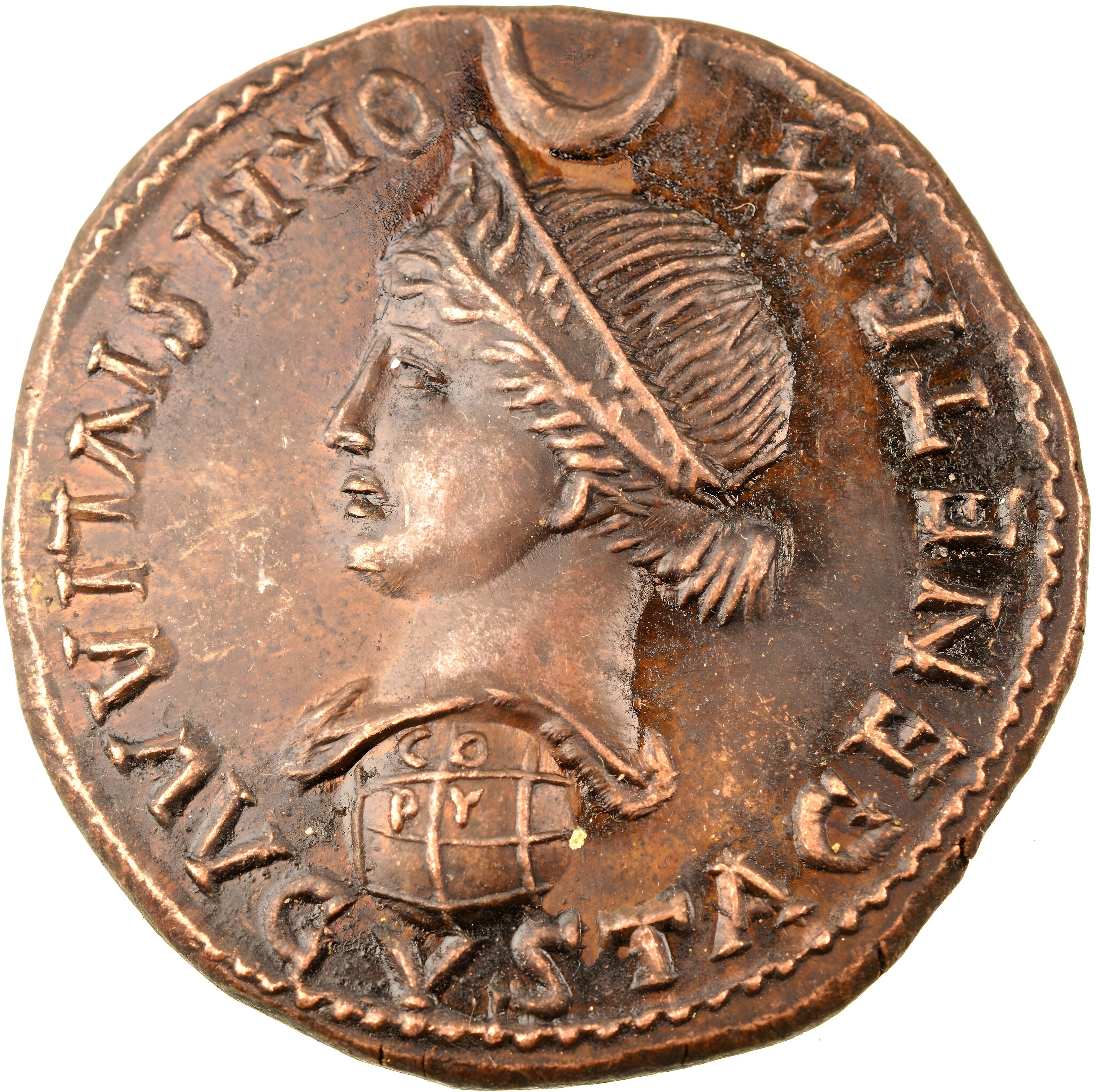The portrait of Livia, known as Julia Augusta by the dictates of Augustus’ will, demonstrates an increased divine association of the dowager empress; the crescent consciously parallels the star above the head of the Divus Augustus. The legend formula is apparently unknown elsewhere. The phrase genetrix orbis may allude to Venus Genetrix, the divine ancestress of the gens Iulia as well as mater or parens patriae, titles which the Senate bestowed on Livia.