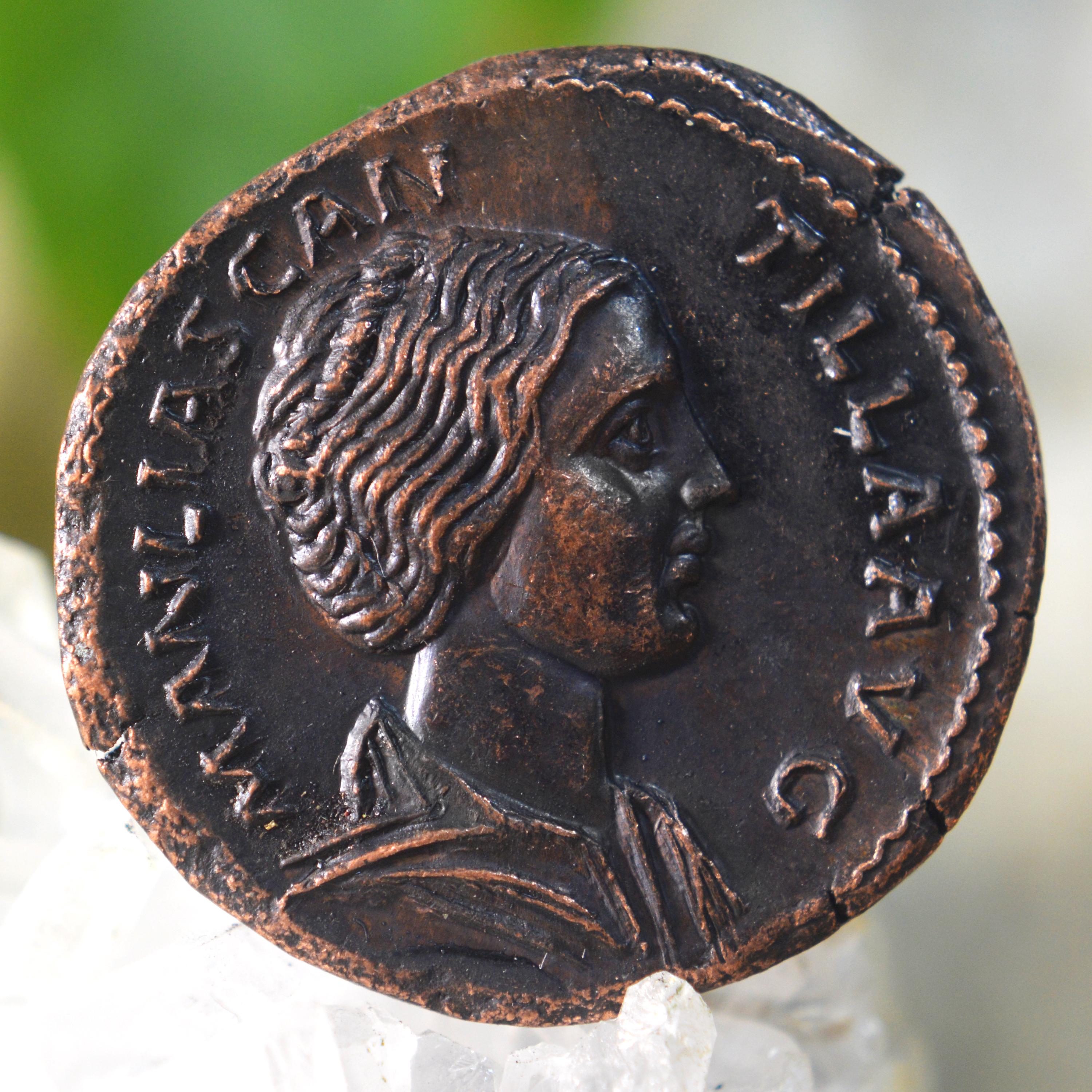 Manlia Scantilla and her daughter Didia Clara were awarded the title of Augusta by decree of the Senate on the day her husband, Didius Julianus, became emperor. Little is known about her except that, due to an unknown deformity, she was reputed to be extremely ugly. The new emperor Septimius Severus removed her status and title when her husband was killed after ruling only two months. She died less than a month later. Her coins are very rare due to her husband’s short reign.