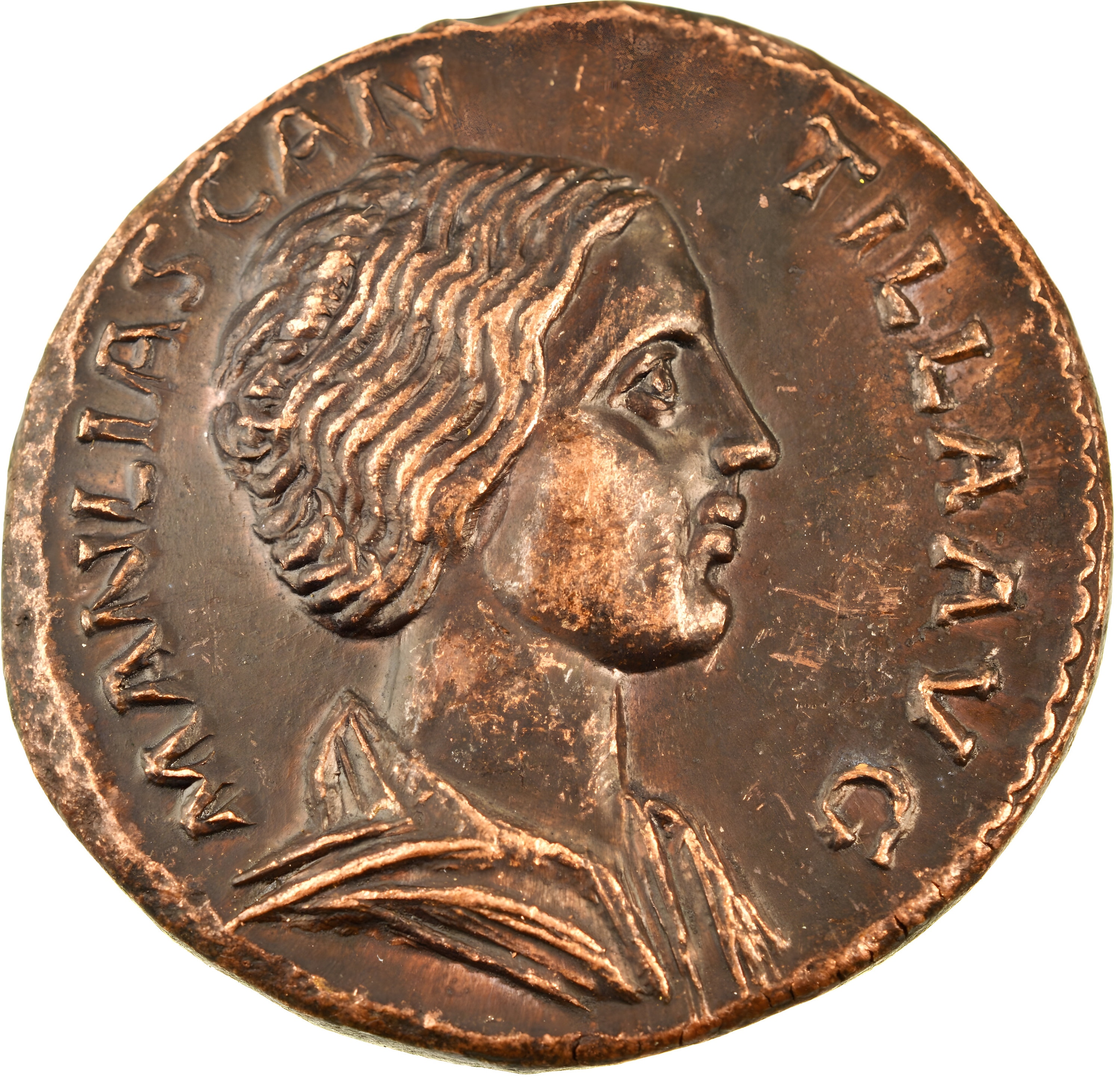 Obv.: MANLIA SCAN TILLA AVG, draped bust right, hair in bun behind