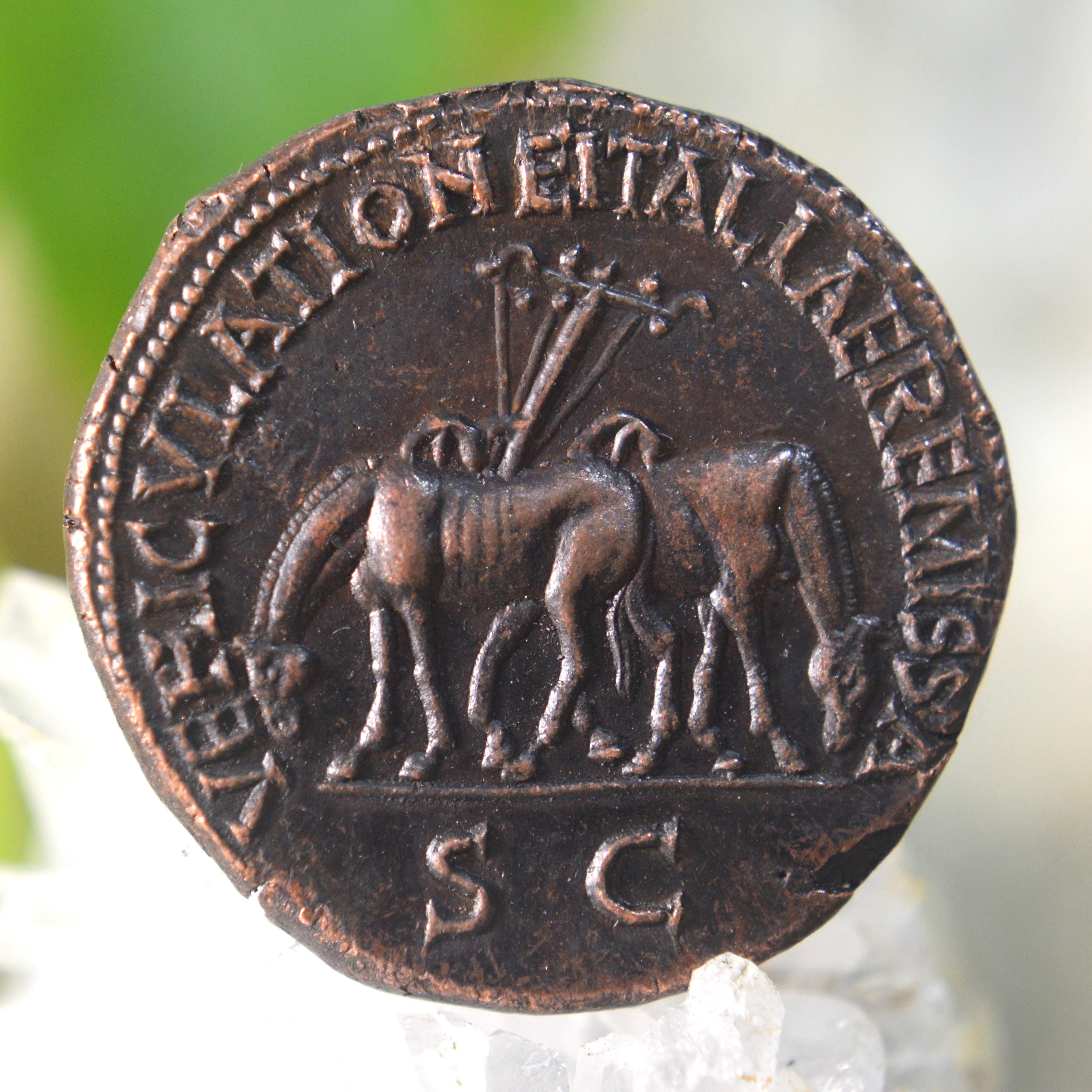 Experience the grandeur of Rome with our hand-crafted Æ Sestertius replica — a museum-quality coin that echoes the power and artistry of the ancient empire. Carefully crafted to reflect the scale, detail, and texture of the original bronze coins, each piece captures the essence of Roman imperial imagery and myth.