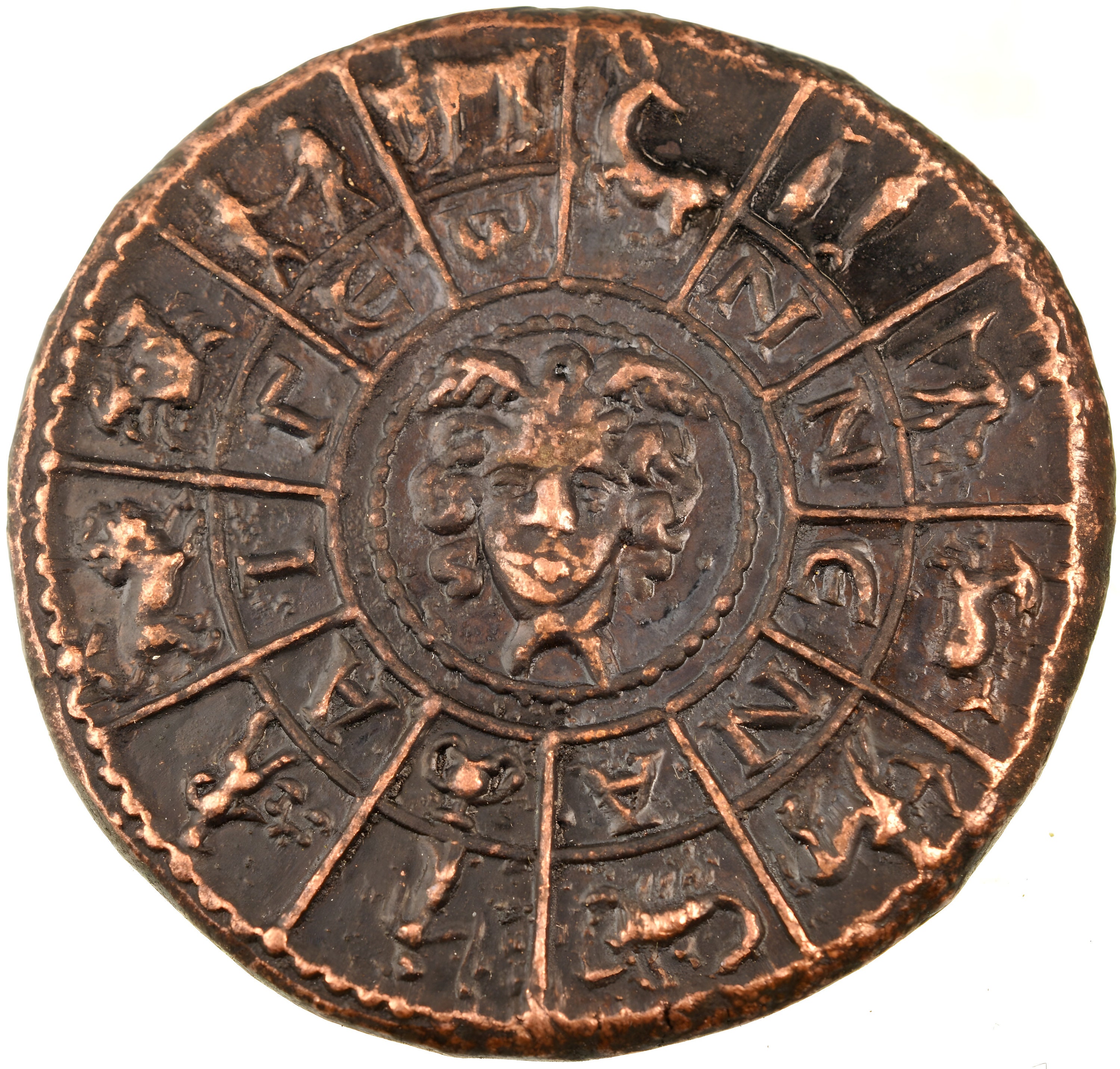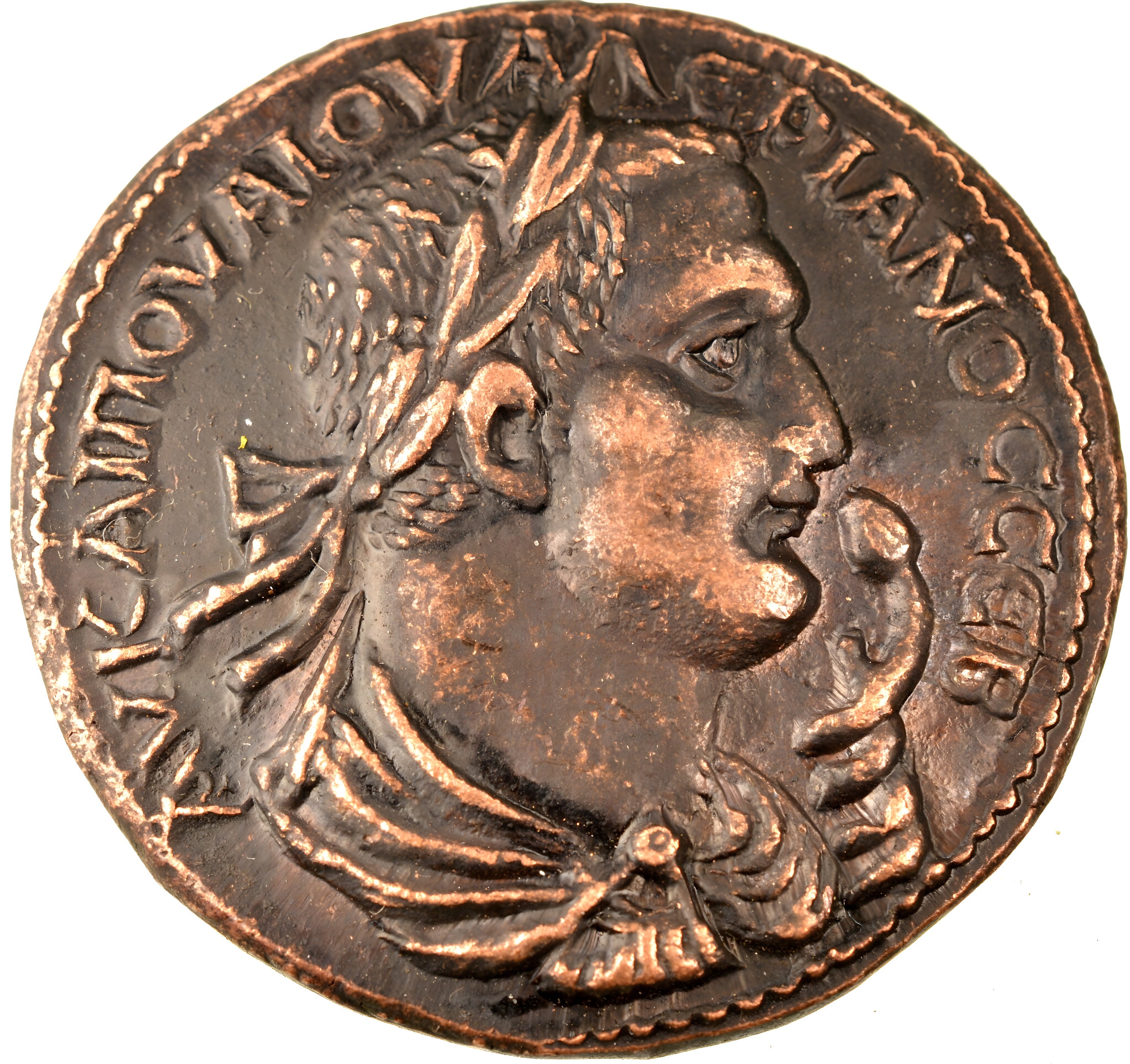 Roman medallions are extremely rare objects, because Roman Emperors used medallions to promote their rule and mark important events. The term medallion is normally used to denote minted coin-like tokens not intended for general circulation, although issued by the Roman mints, differ from standard denominations in circulation in a number of ways. Medallions have played a very considerable part in spreading knowledge of art and in arousing interest in History of Art among the educated and intelligent persons who owned them through gift or inheritance.