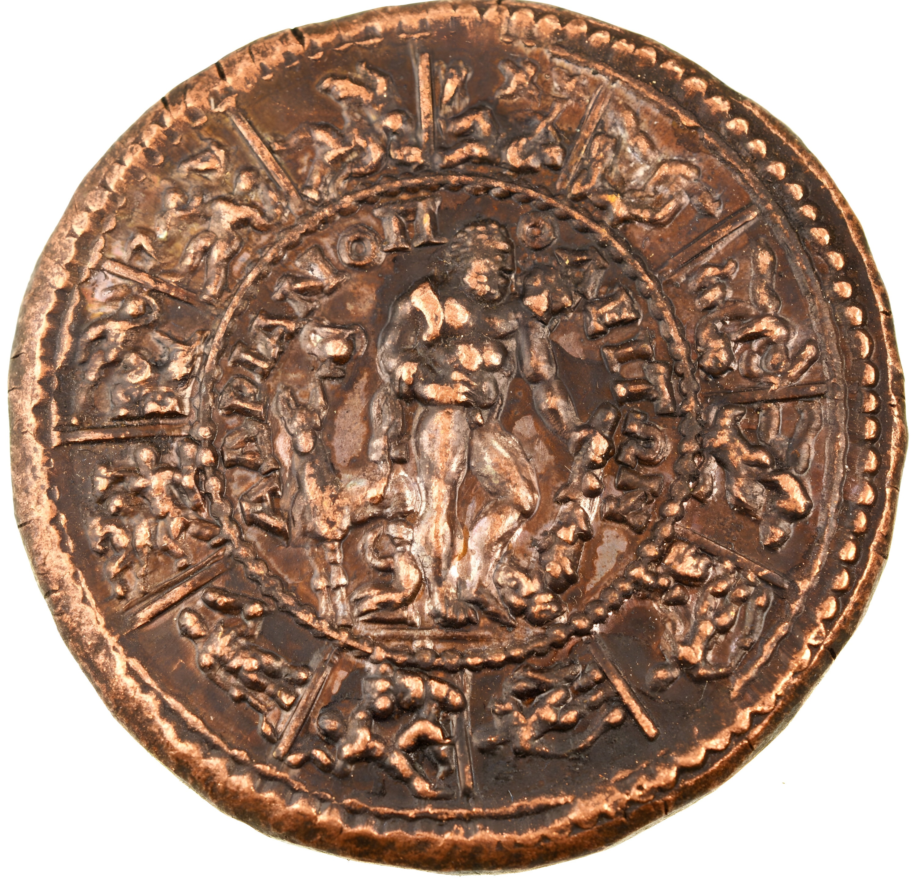 Roman medallions are extremely rare objects, because Roman Emperors used medallions to promote their rule and mark important events. The term medallion is normally used to denote minted coin-like tokens not intended for general circulation, although issued by the Roman mints, differ from standard denominations in circulation in a number of ways. Medallions have played a very considerable part in spreading knowledge of art and in arousing interest in History of Art among the educated and intelligent persons who owned them through gift or inheritance.