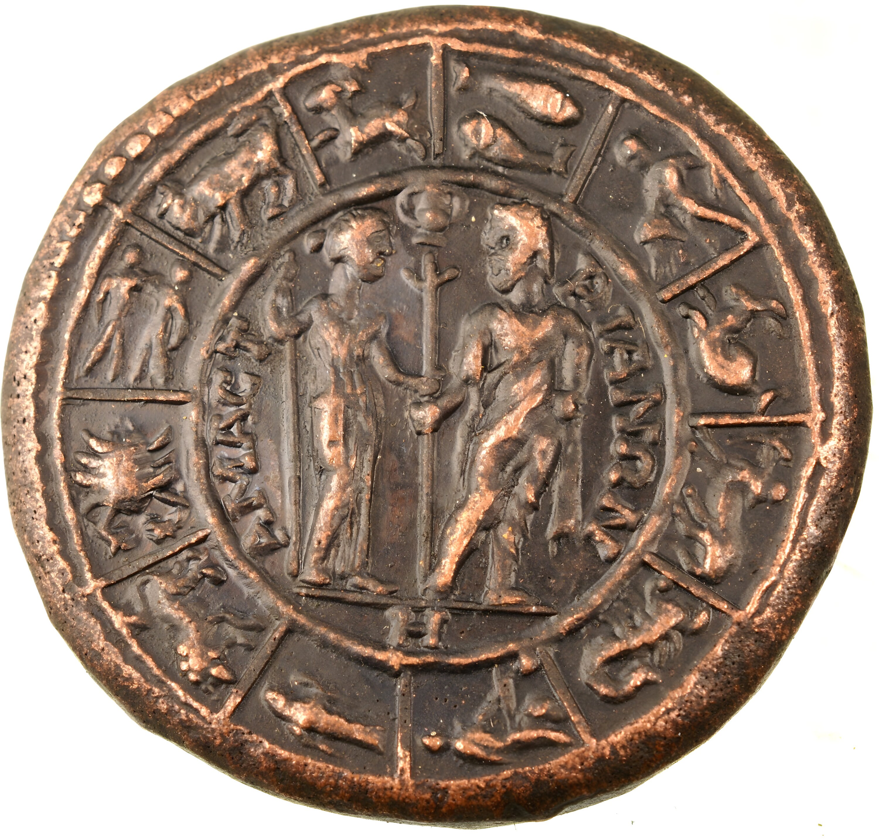 Roman medallions are extremely rare objects, because Roman Emperors used medallions to promote their rule and mark important events. The term medallion is normally used to denote minted coin-like tokens not intended for general circulation, although issued by the Roman mints, differ from standard denominations in circulation in a number of ways. Medallions have played a very considerable part in spreading knowledge of art and in arousing interest in History of Art among the educated and intelligent persons who owned them through gift or inheritance.