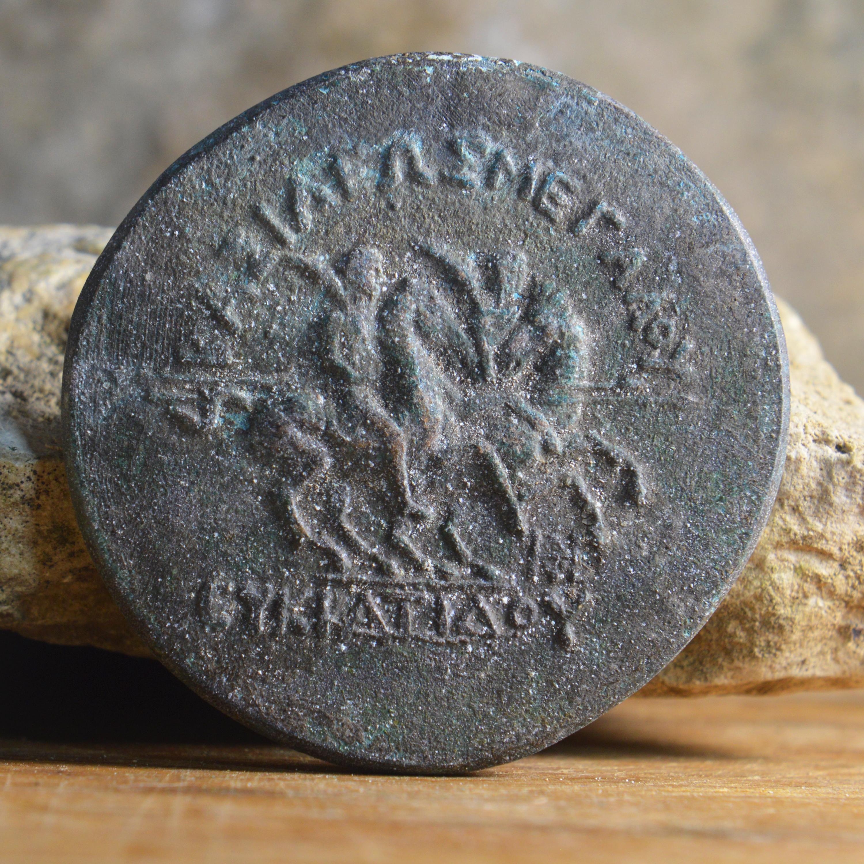 One of the most famous ancient coins, the massive gold 20-stater of Eucratides, was surely also the largest gold coin minted in antiquity. It may well have been a victory medal to celebrate Eucratides's conquest of "India," presumably some land south of the Hindu Kush, perhaps Gandhara.