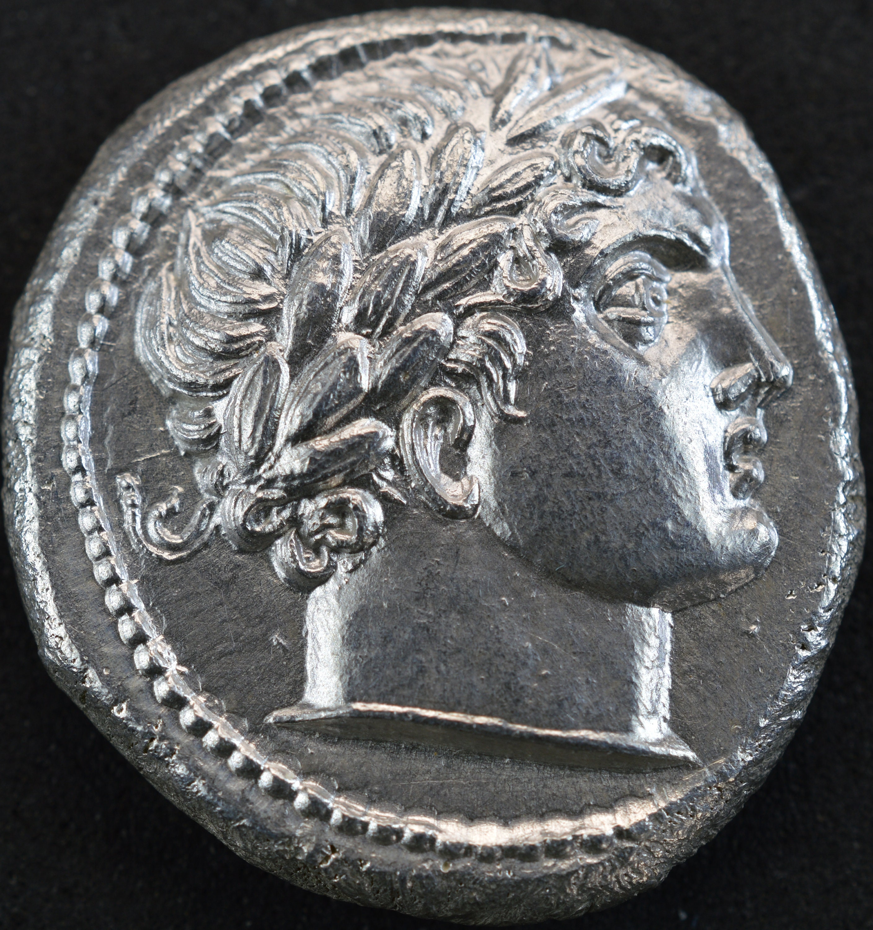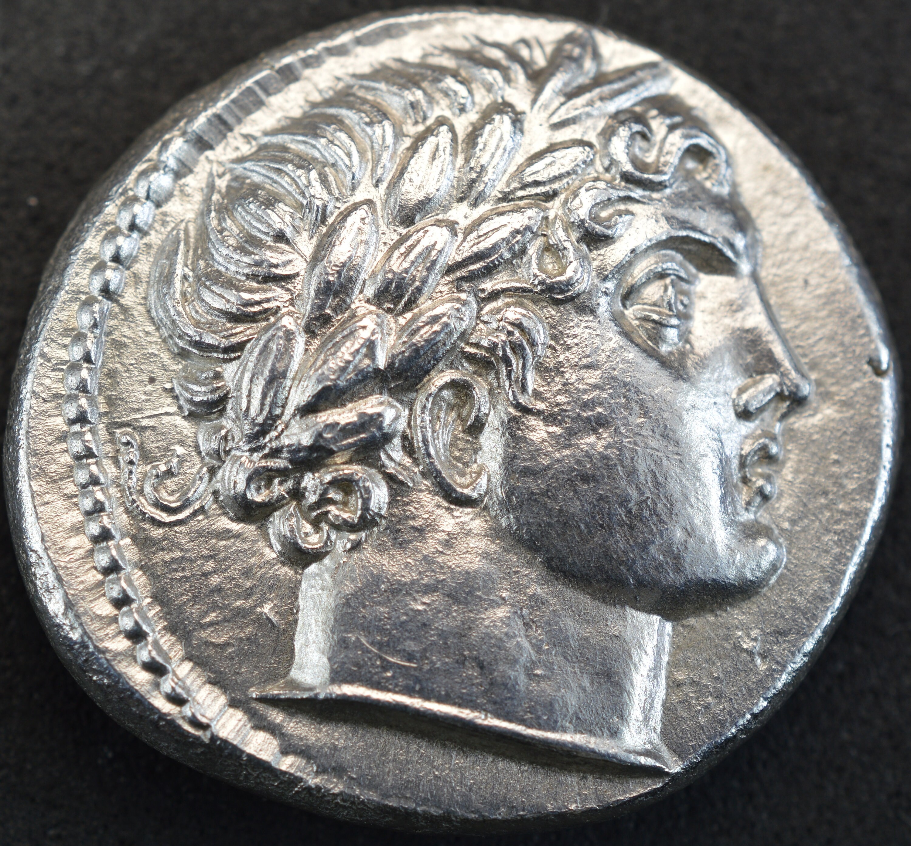 Obverse side: Laureate head of Apollo right