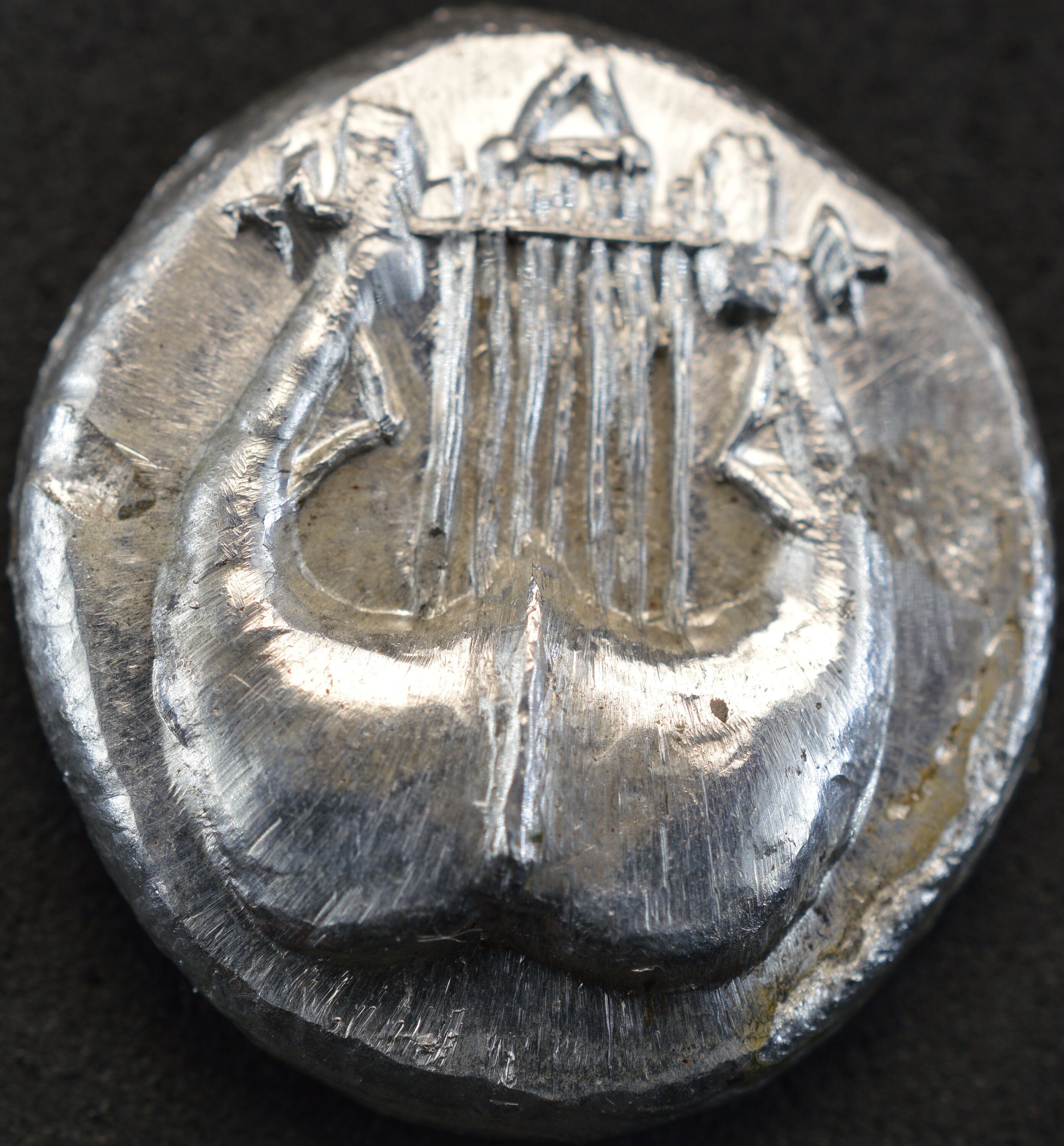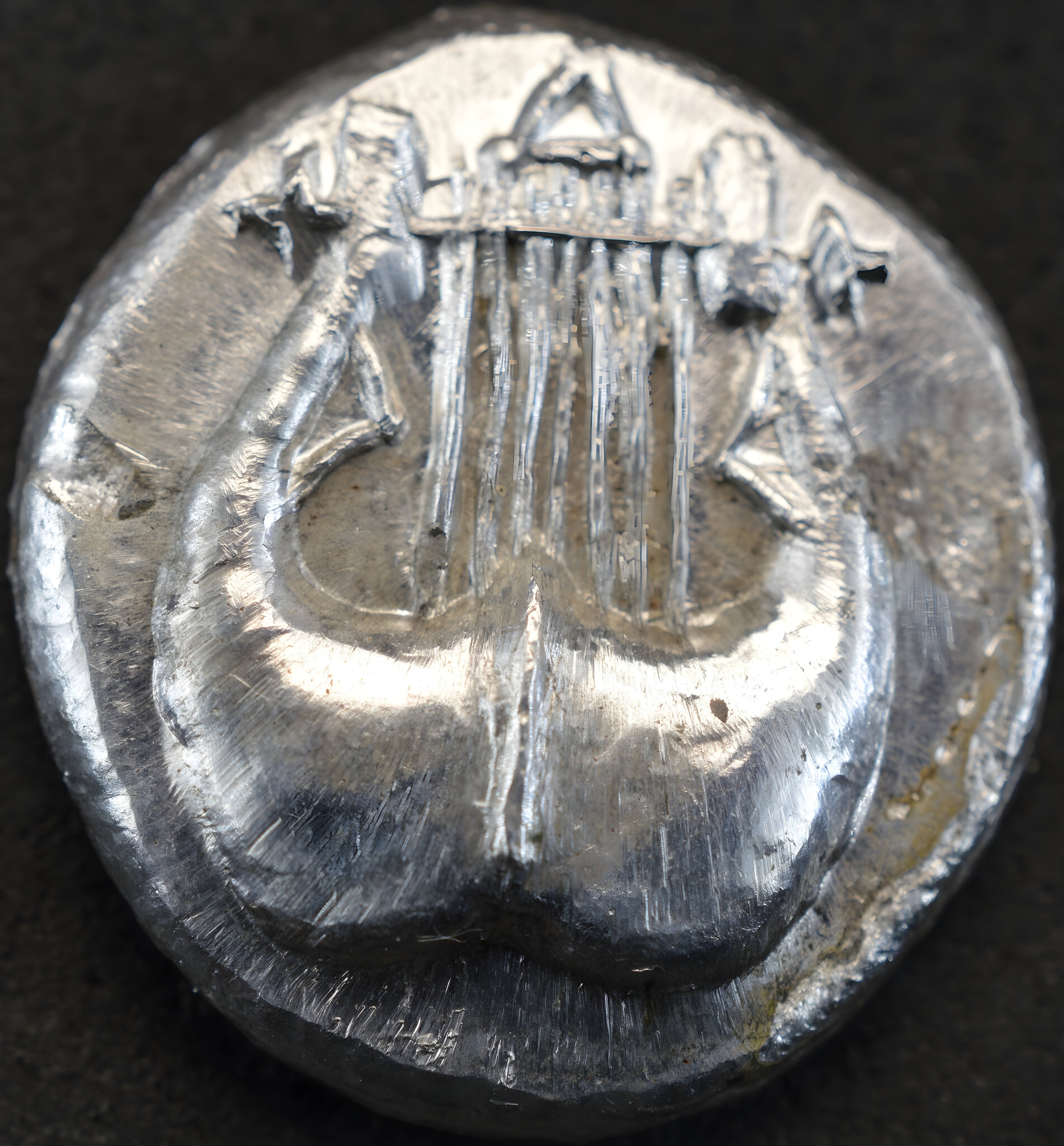 Obverse side: Lyre with seven strings; Δ above, Anepigraphic