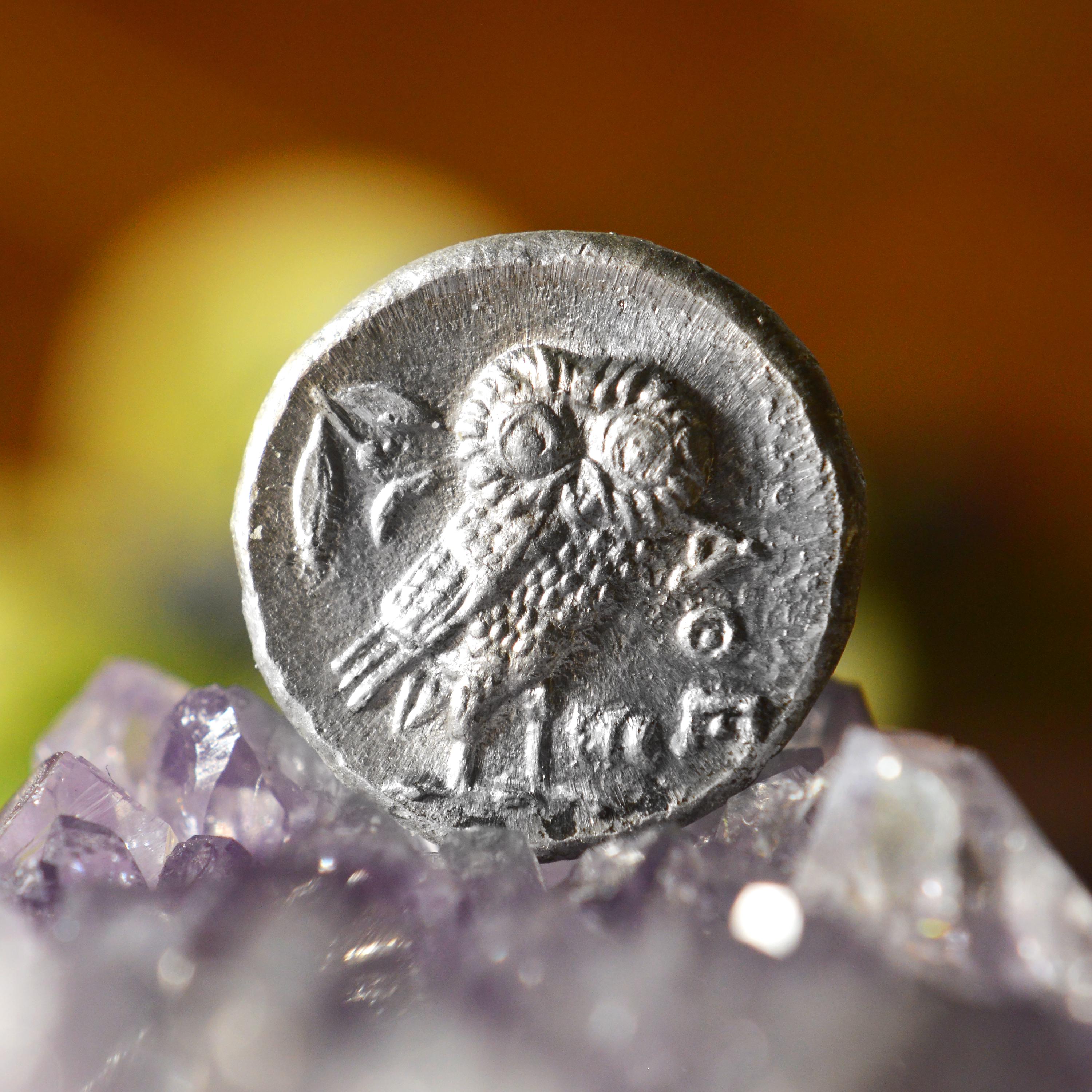 The mythology depicted on Owls is equally interesting. Athena was goddess of both wisdom and warfare, combining within herself two qualities we find incompatible today but the ancients didn’t, a telling difference between their world and ours. She was the patron goddess of Athens, one of the greatest cities of all time.