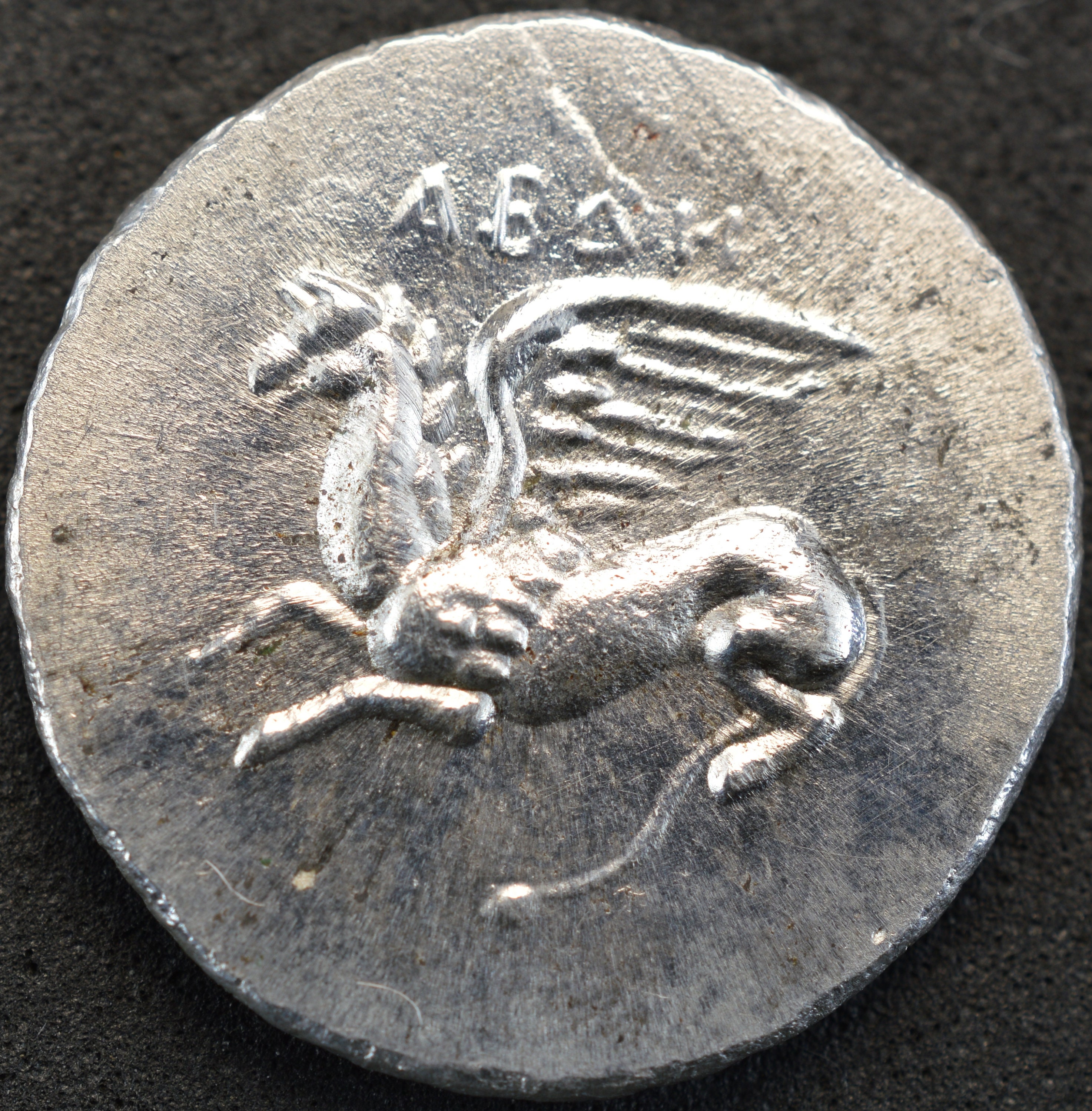 These coins had a variety of types on the obverse and an imprint on the reverse. The possible obverse stamps includes owls, horse protomes, amphoras, horse’s hindquarters, wheels, bettles, Gorgons, bull’s heads, astragalos, and triskelis.