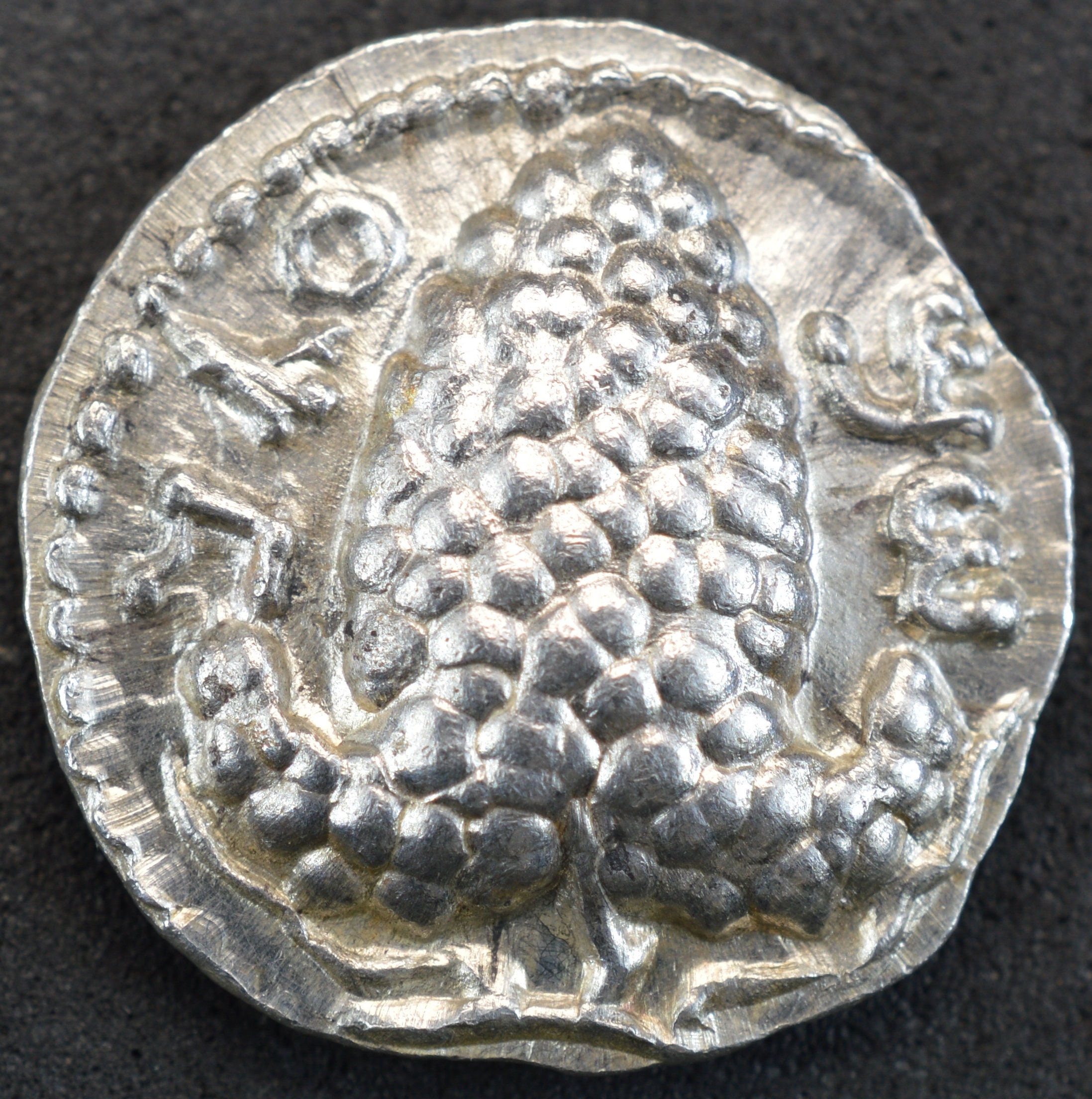 Obverse side: ‘Shimon’ (n Palaeo-Hebrew) around bunch of grapes