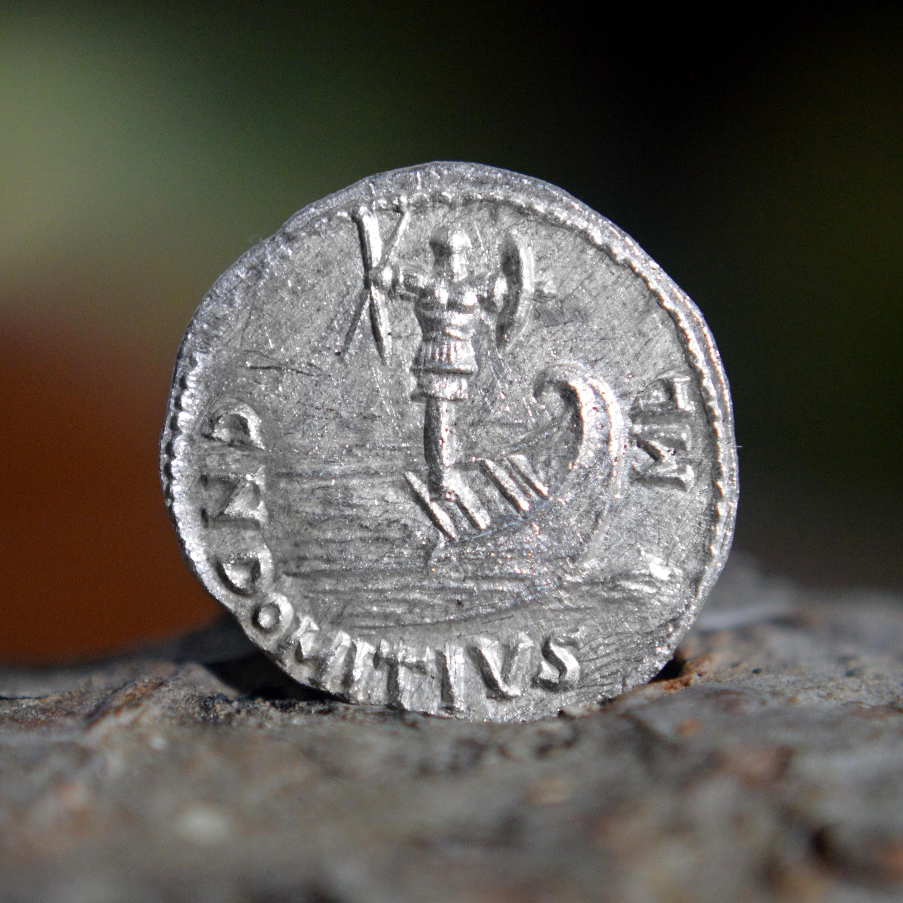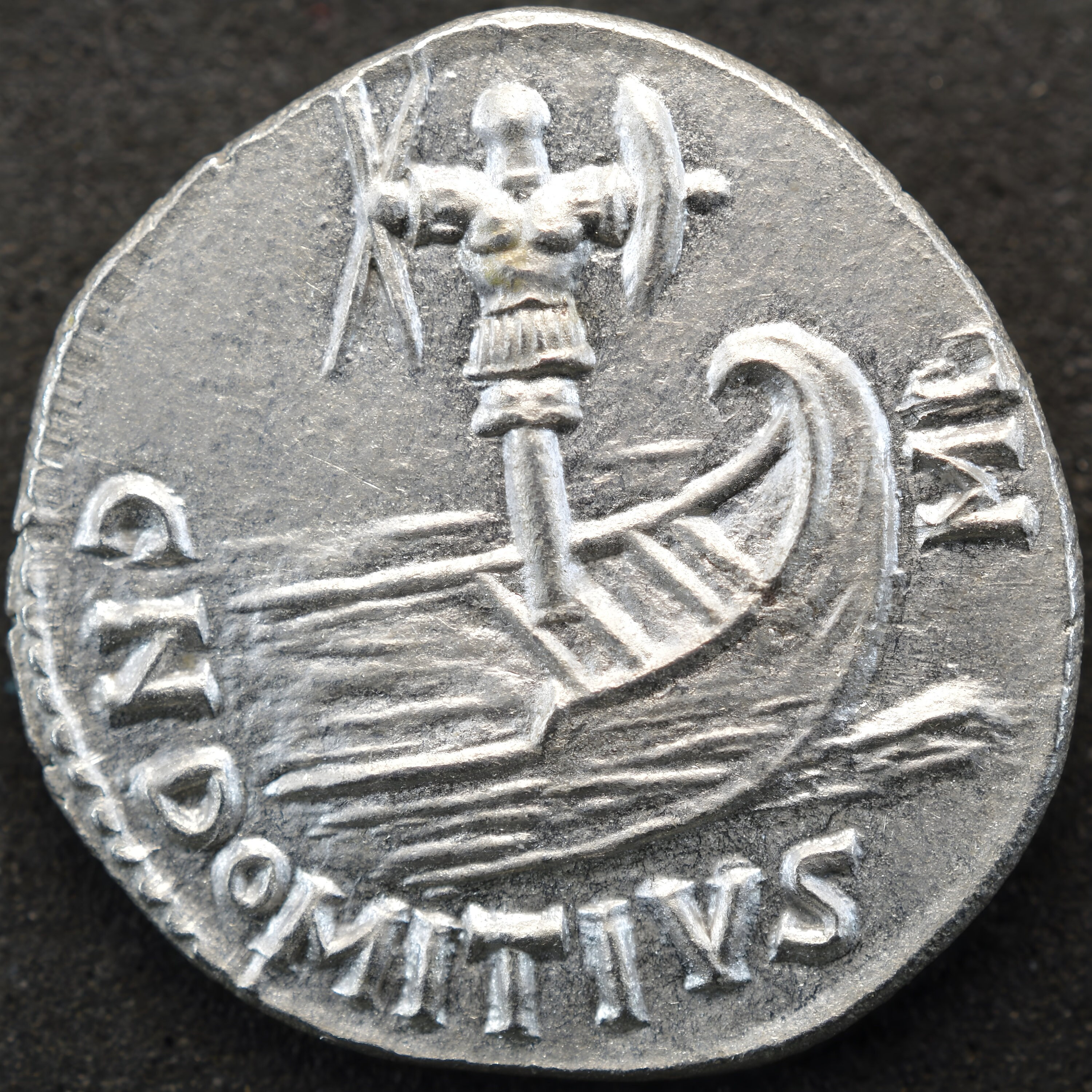 Silver Roman Denarius of Gnaeus Domitius Ahenobarbus Hailed as Imperator, Adriatic or Ionian sea Solid Silver Coin