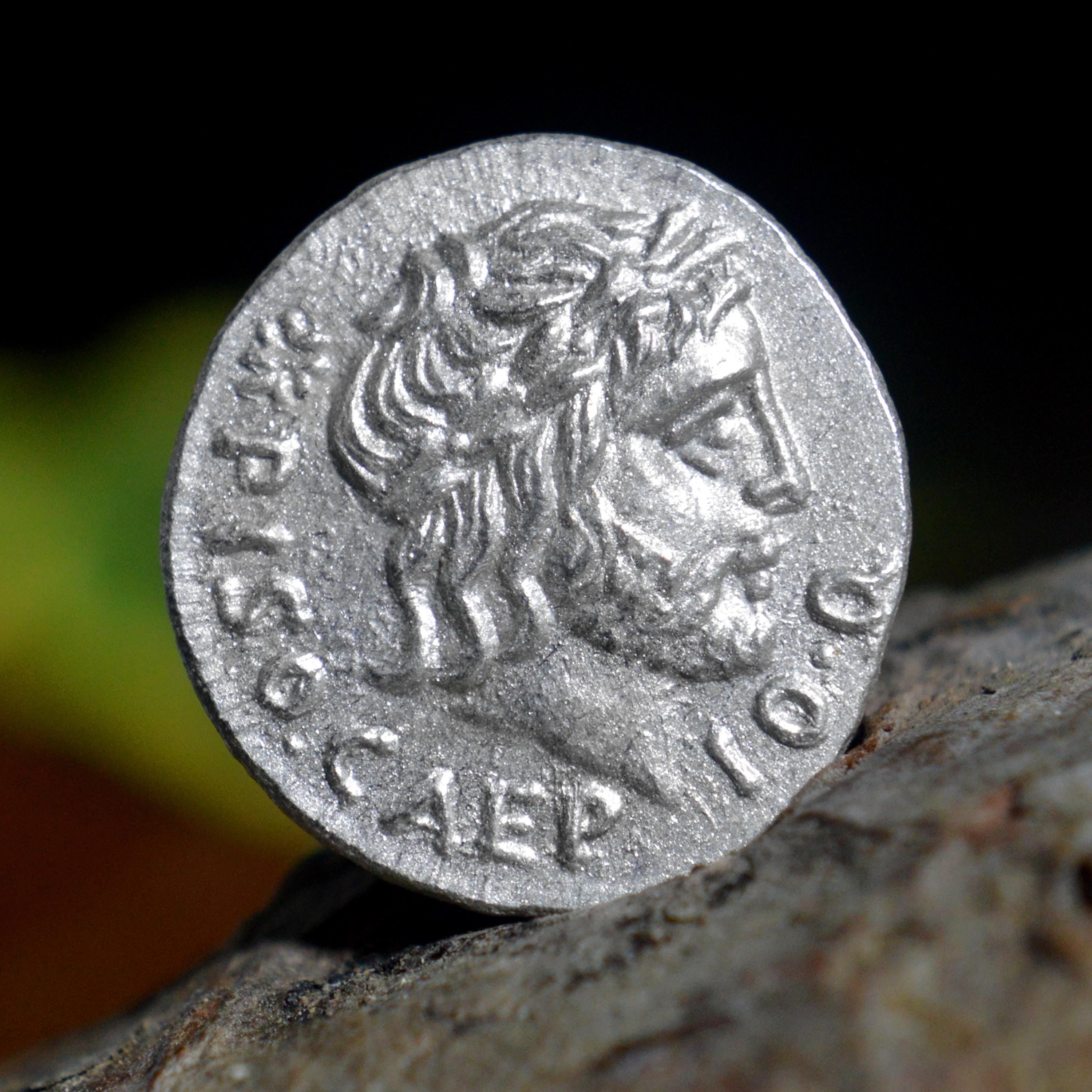 Silver Roman Denarius of Lucius Calpurnius Piso Caesoninus and Quaestor Servilius Caepio Gens Servilia Solid Silver Coin