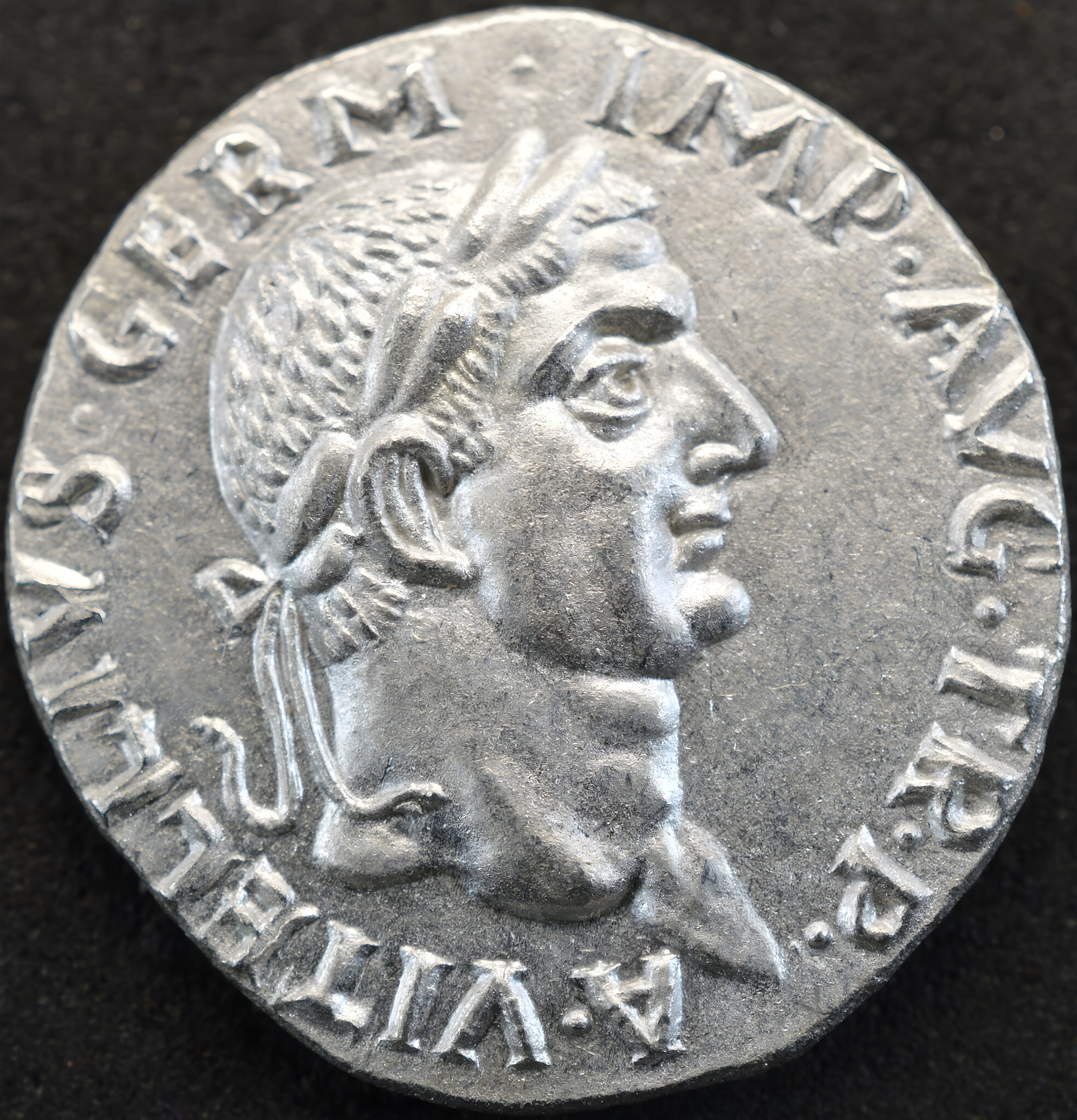 On the obverse is a portrait of Aulus Vitellius (the emperor), and on the reverse is a portrait of his father the consul Lucius Vitellius. There were 2 types minted with the portrait of the elder Vitellius. The other one is rarer than this type, but both types are very difficult to find for sale. The coinage baring his portrait with that of his son served the purpose of political propaganda intended to show the heritage and qualifications of his son to be Emperor.