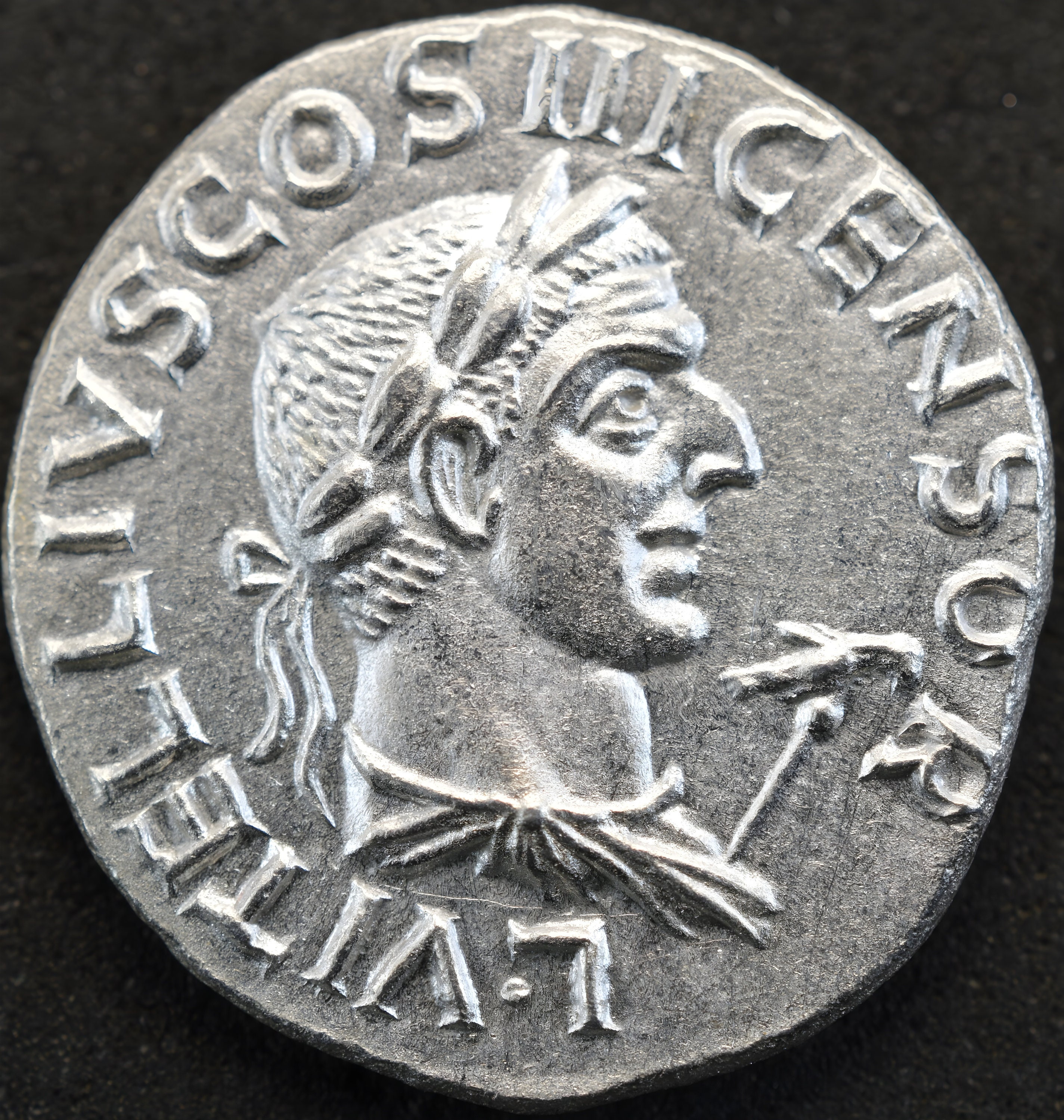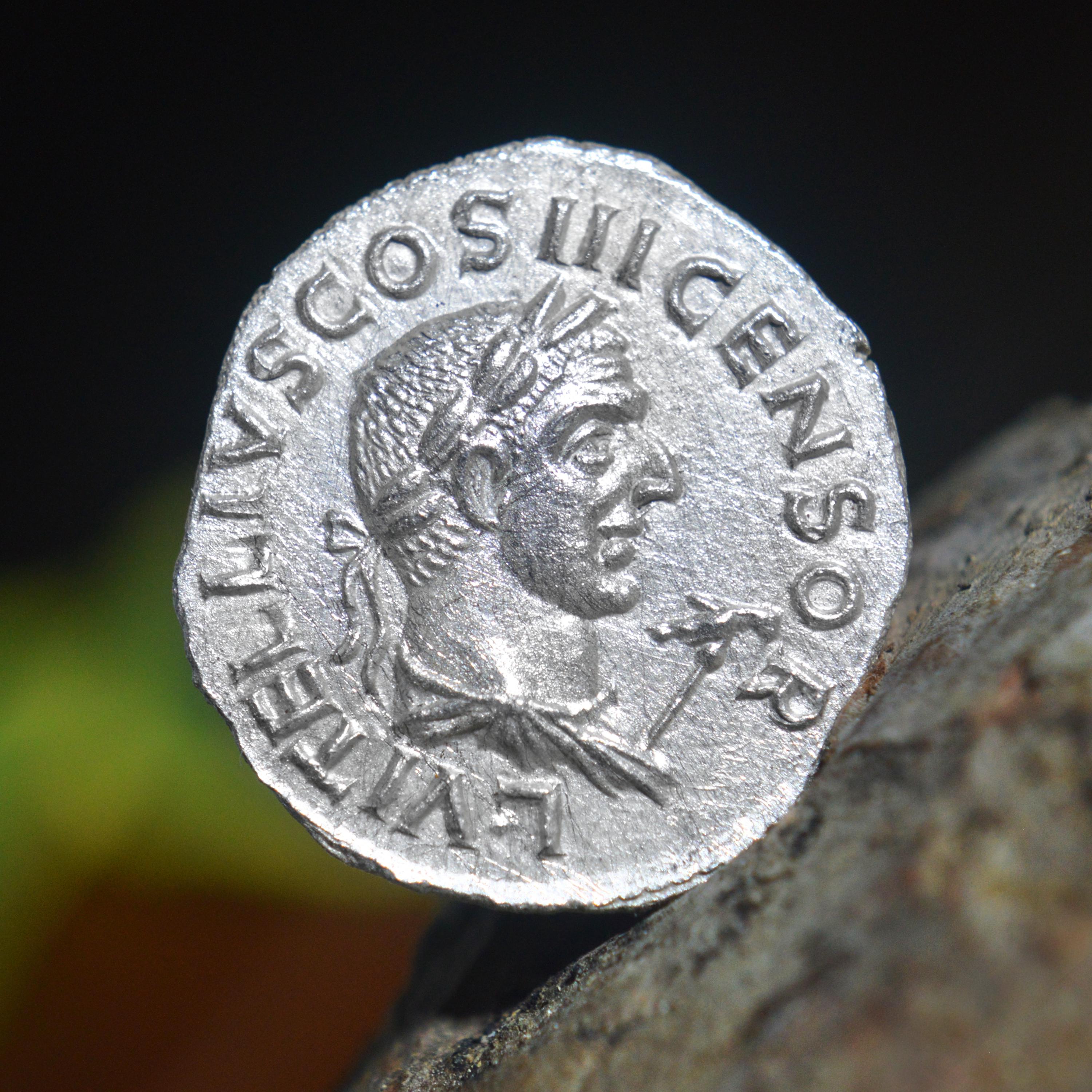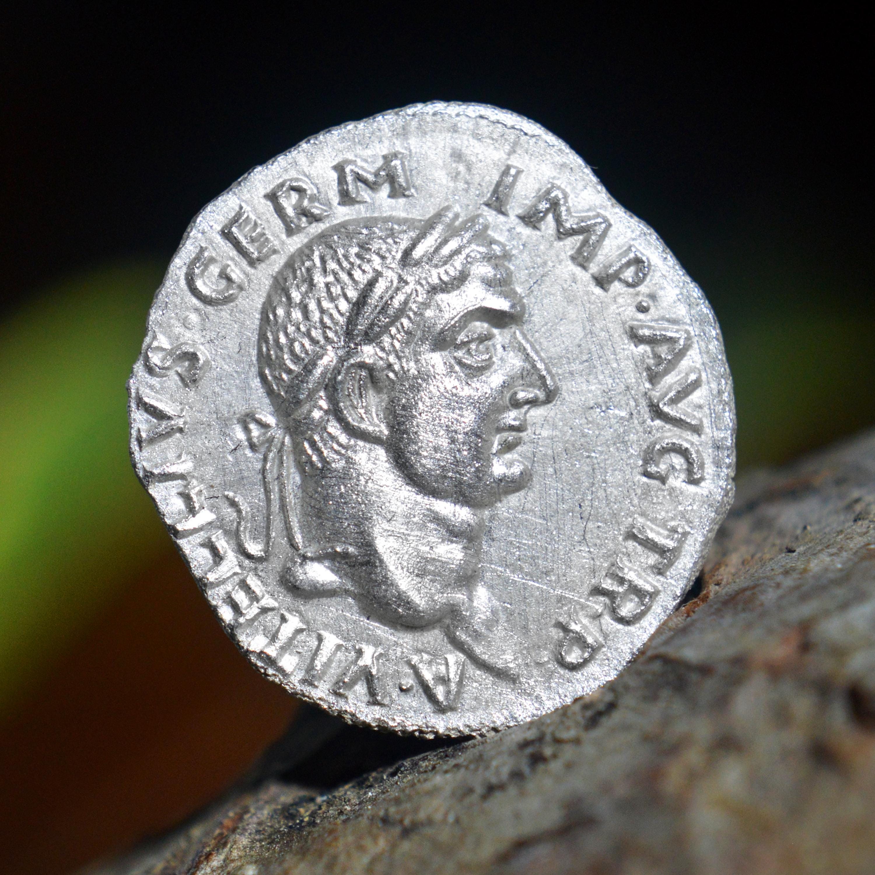 Silver Roman Denarius of Lucius Vitellius, Vitelius the Elder with his son Aulus Vitellius Solid Silver Coin