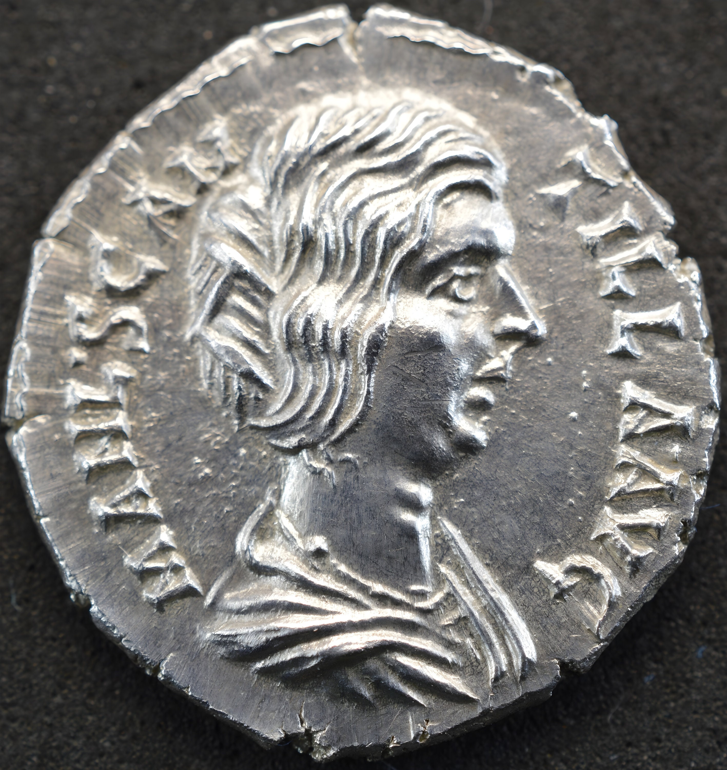 Little is known of Manlia Scantilla, the wife of Didius Julianus. She was however at the centre of one of the most significant political events of the late second century, that of the ‘auction’ of the Roman Empire to the Praetorian Guard. Following the murder of Pertinax, the Guard declared that the throne would be sold to the individual that offered the highest price. Didius offered 25,000 Sestertii to each soldier and his ‘bid’ was accepted. Scantilla received the title of Augusta when Didius Julianus became emperor but this was removed after several weeks following his murder and the accession of Septimius Severus to the Imperial throne.
