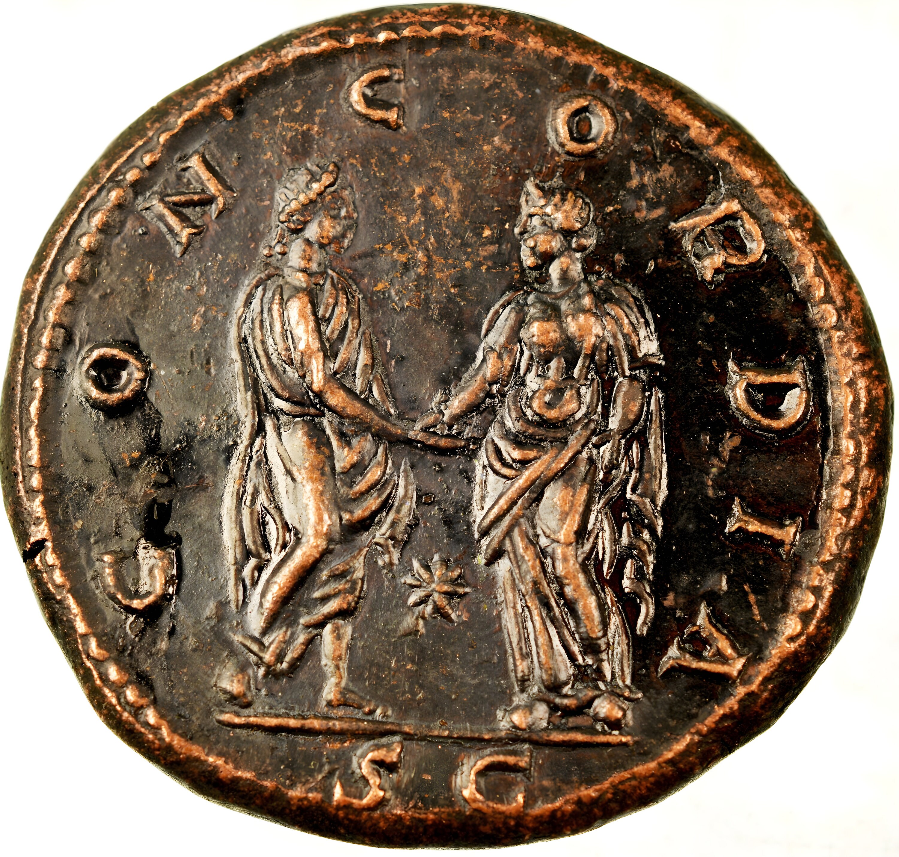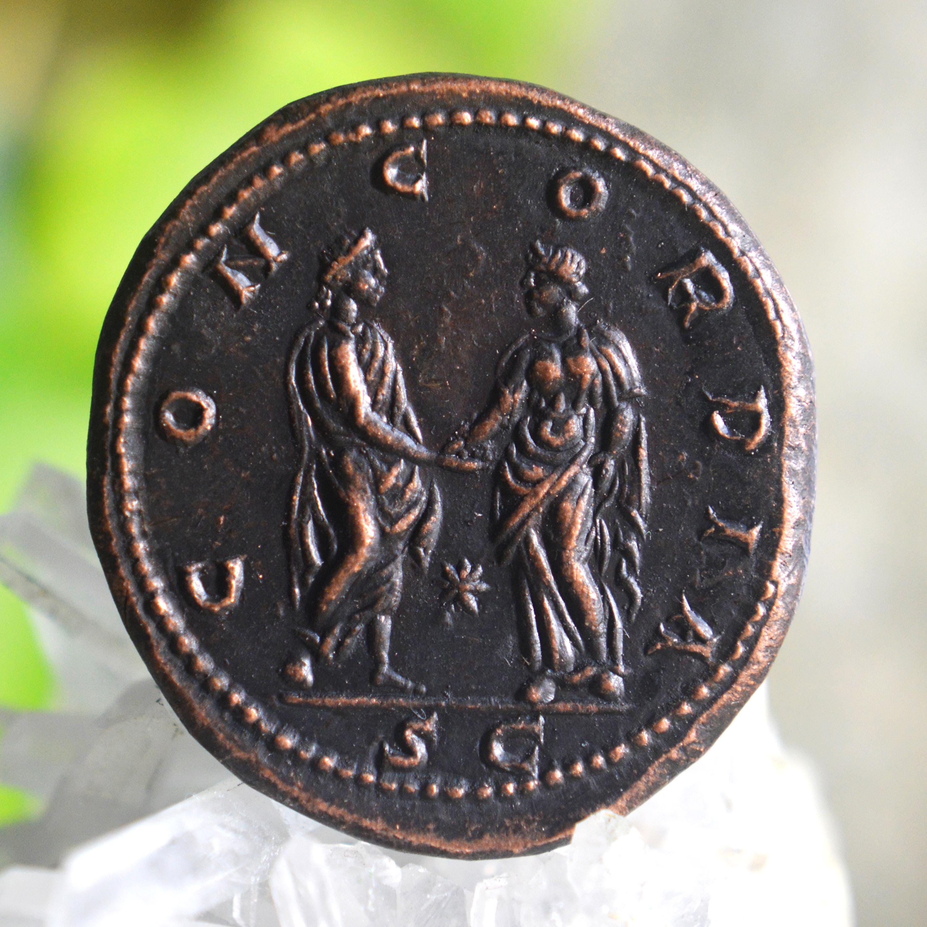 Experience the grandeur of Rome with our hand-crafted Æ Sestertius replica — a museum-quality coin that echoes the power and artistry of the ancient empire. Carefully crafted to reflect the scale, detail, and texture of the original bronze coins, each piece captures the essence of Roman imperial imagery and myth.