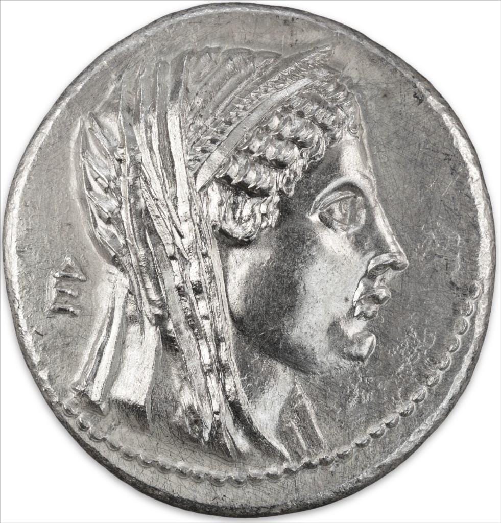 The dekadrachm (decadrachm) was an ancient Greek silver coin worth 10 drachms. Because of its large denomination, the decadrachm is thought by many to have been primarily commemorative. Thus, a high quality of artistry is reflected in the design of the decadrachm.