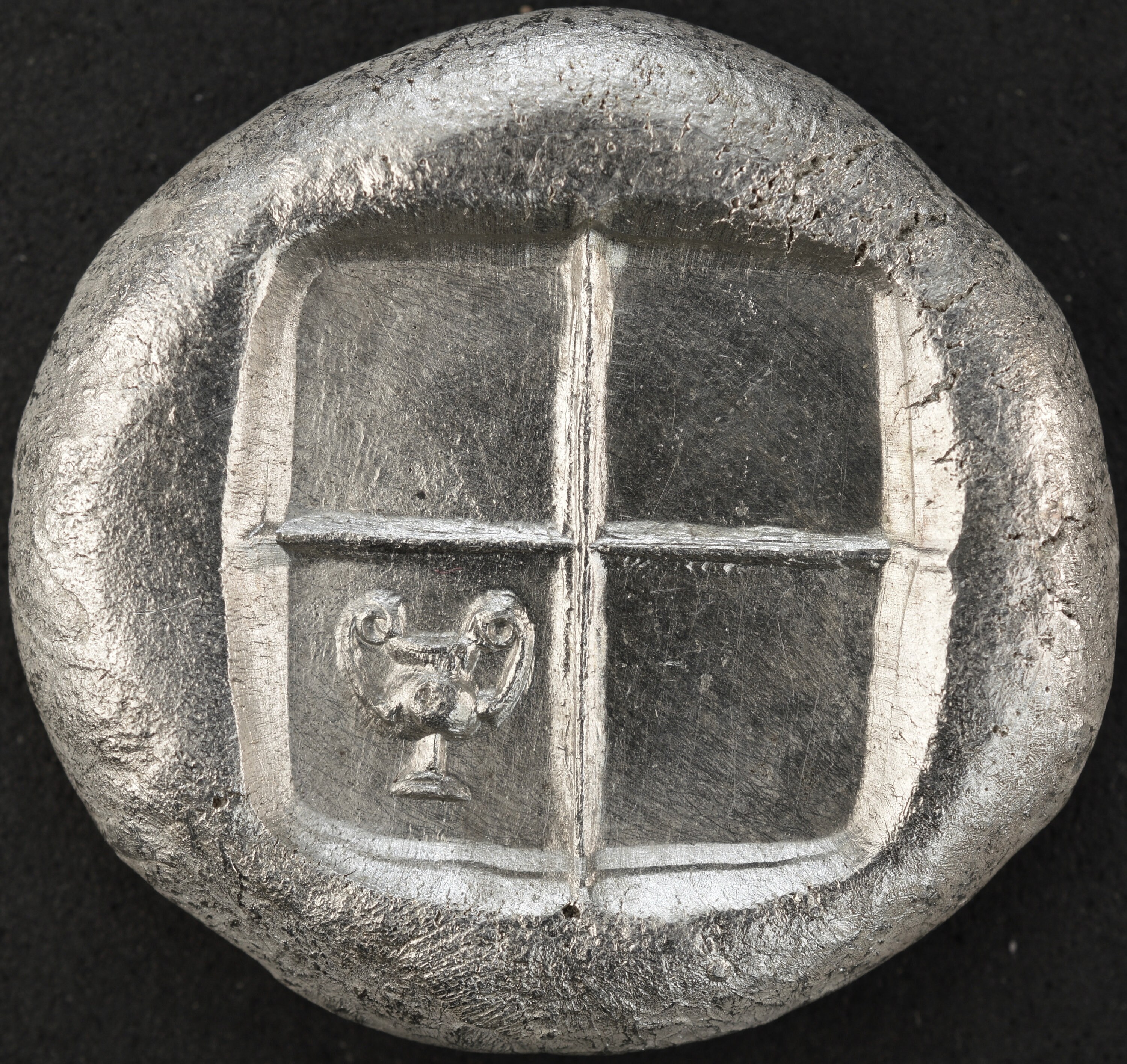 Rev.: Fourpart incuse square, amphora with high handles in bottom left compartment.