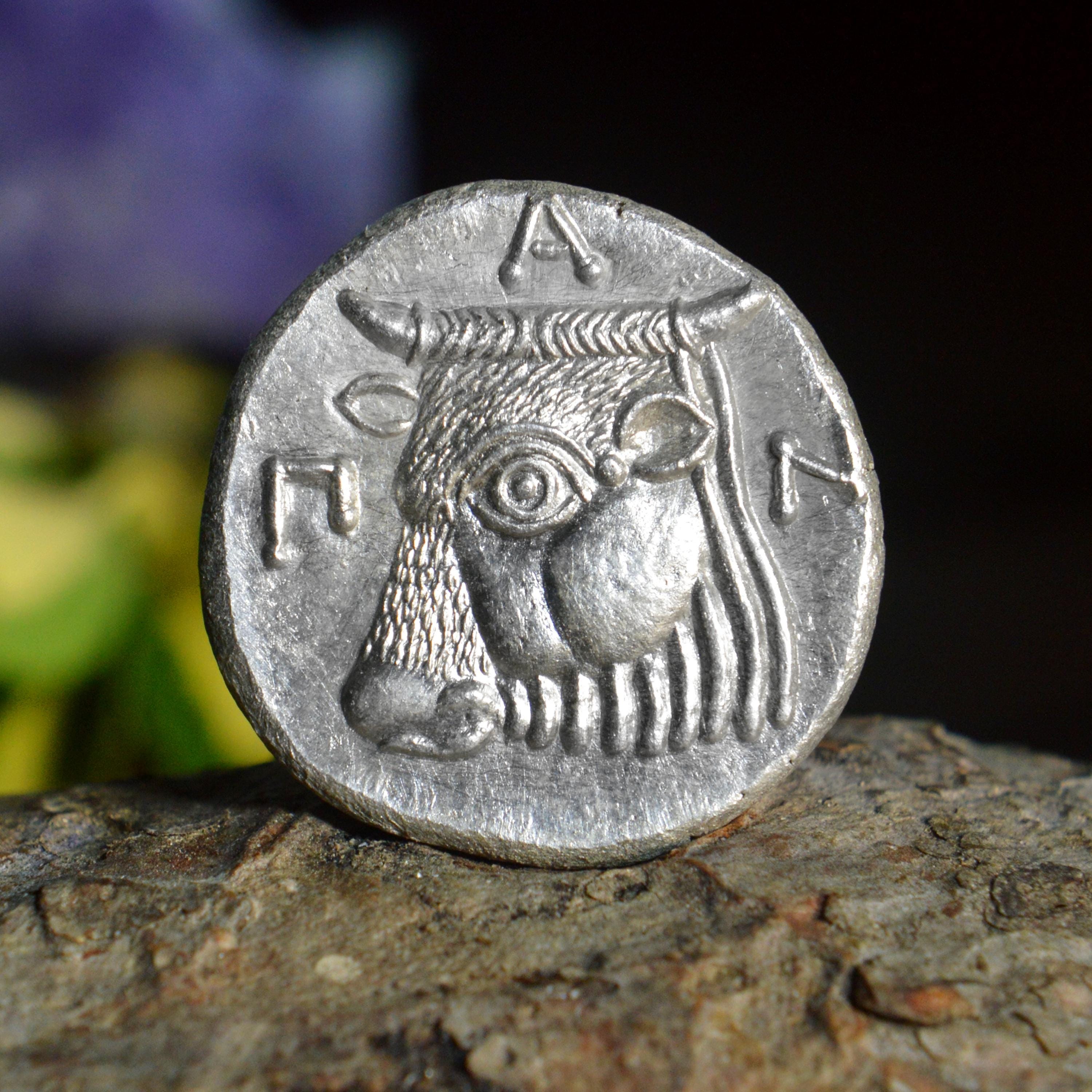 Introducing our exquisite replica of Greek Silver Tridrachm Coin, a stunning tribute to the artistry and cultural legacy of Ancient Greece. Meticulously crafted, this replica captures the essence of one of the most iconic coins in Greek history.