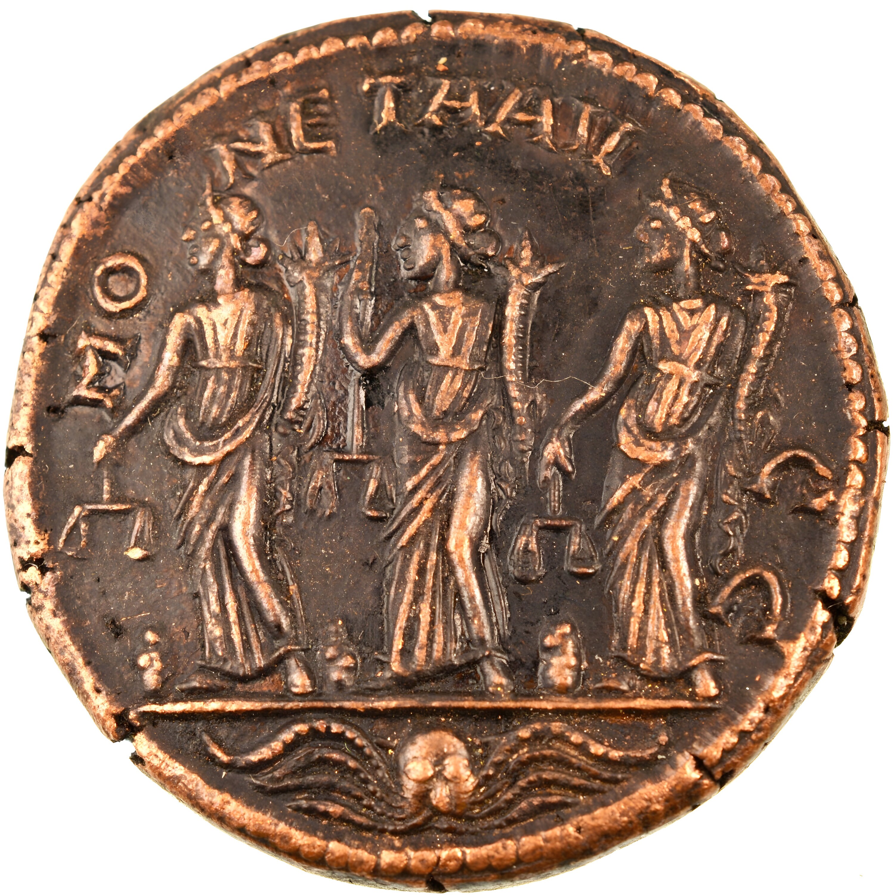 Rev: MONETA AVG, The three Monetae standing l., each holding scales and cornucopiae; at feet of each, a heap of coins