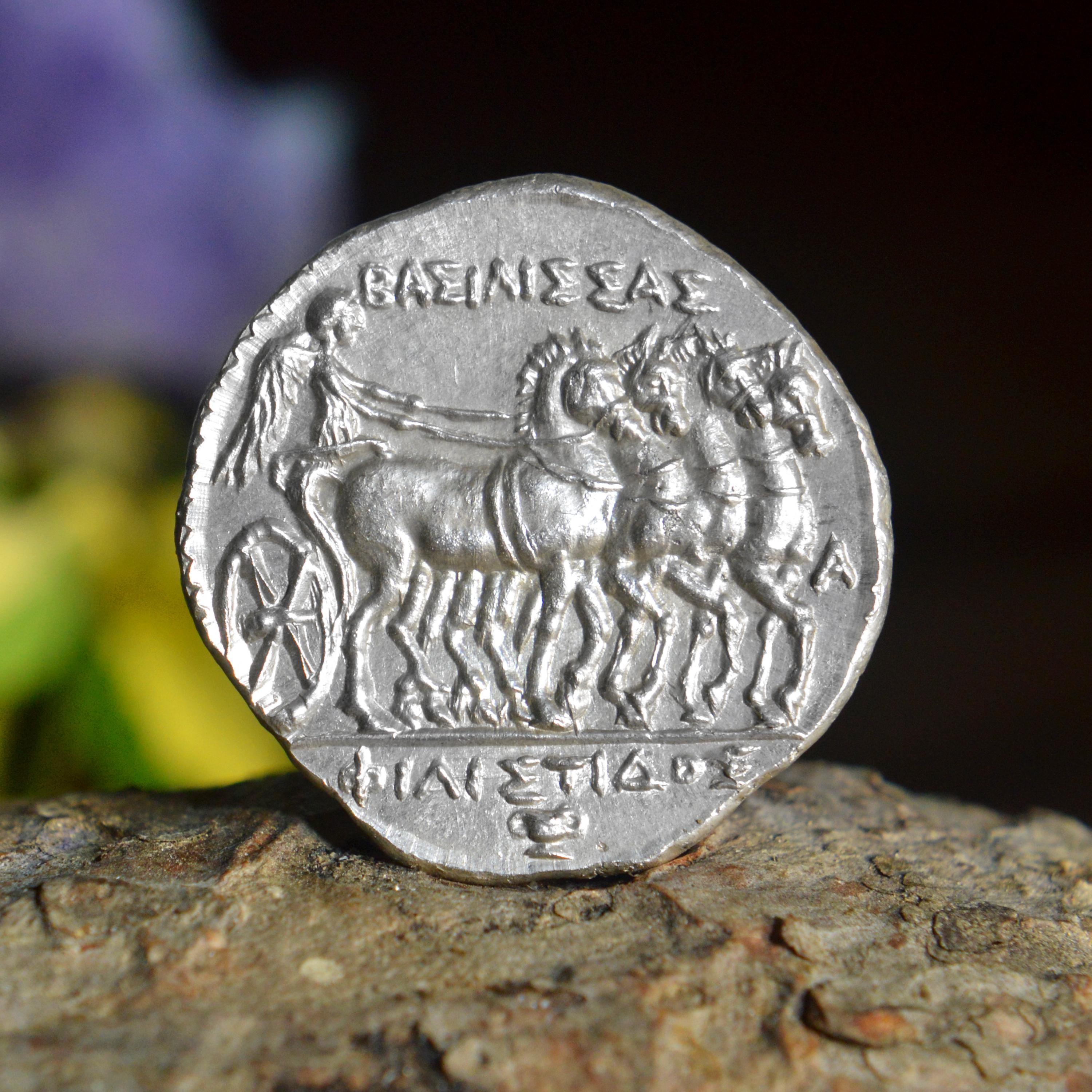 Experience the glory of ancient Greece with our hand-crafted Greek Tetradrachm replica — a museum-quality coin inspired by classical artistry and historic legacy. Each piece is hand-struck in solid silver, not cast, using techniques rooted in the traditions of ancient Greek coin-makers.