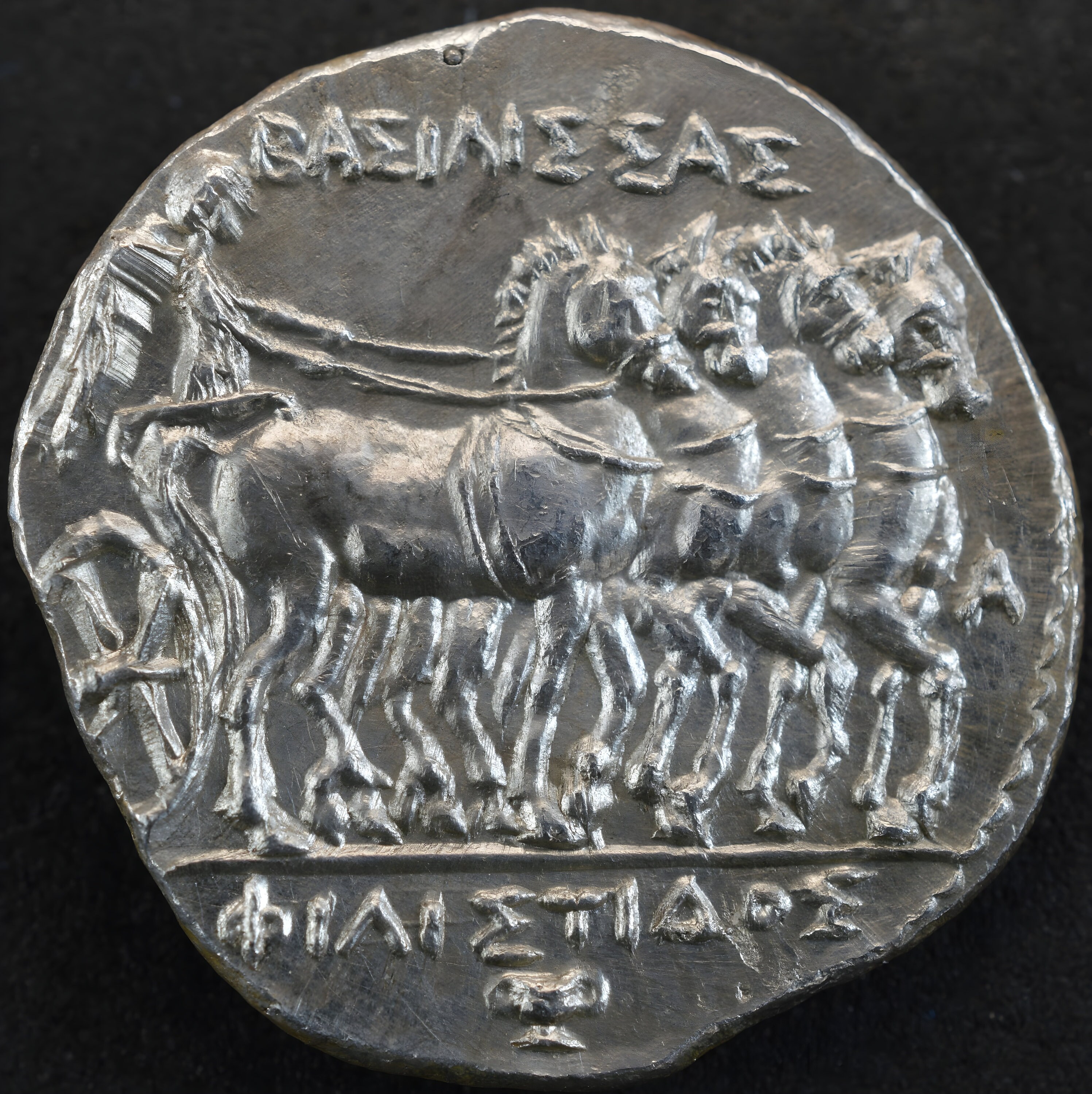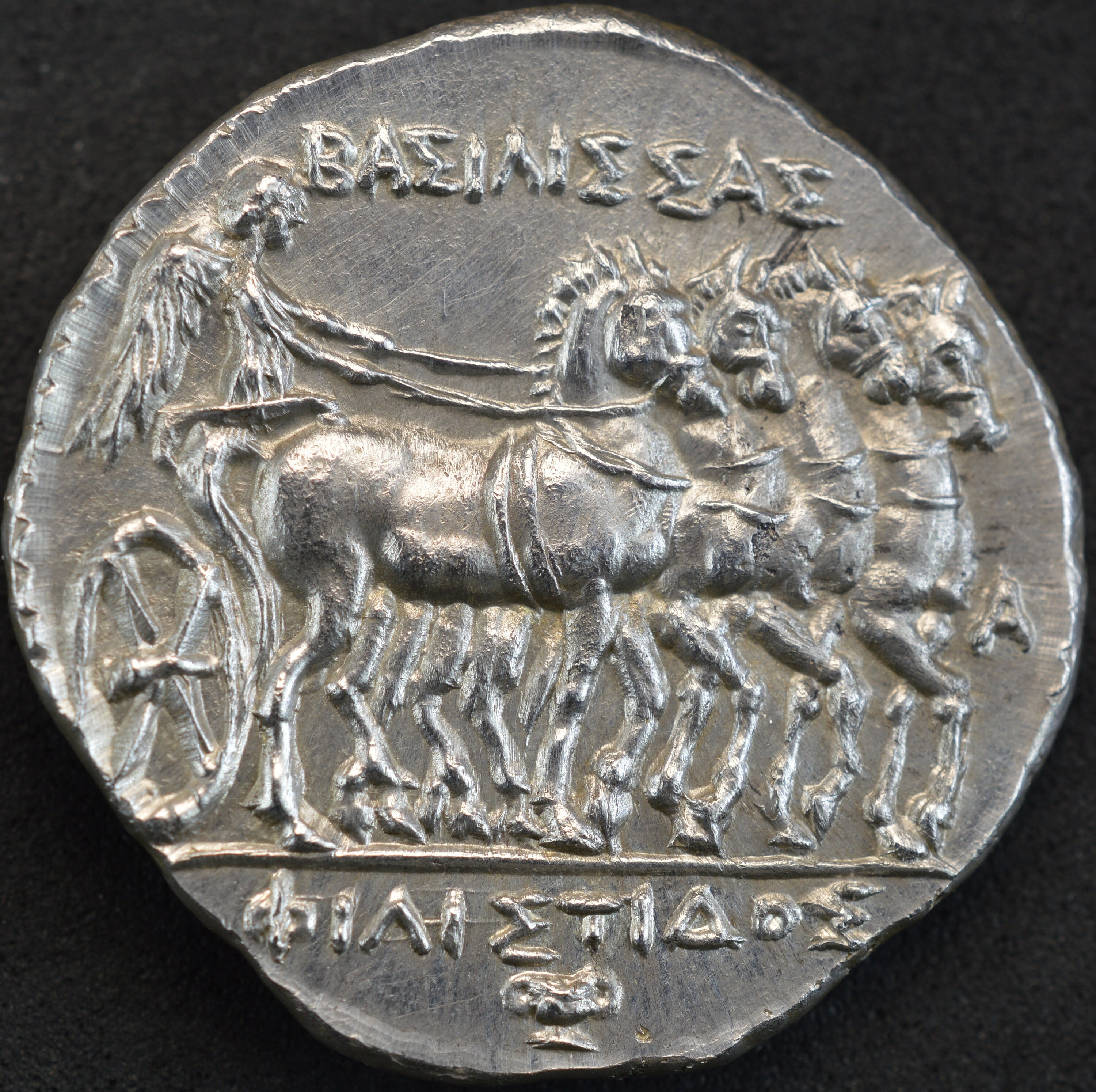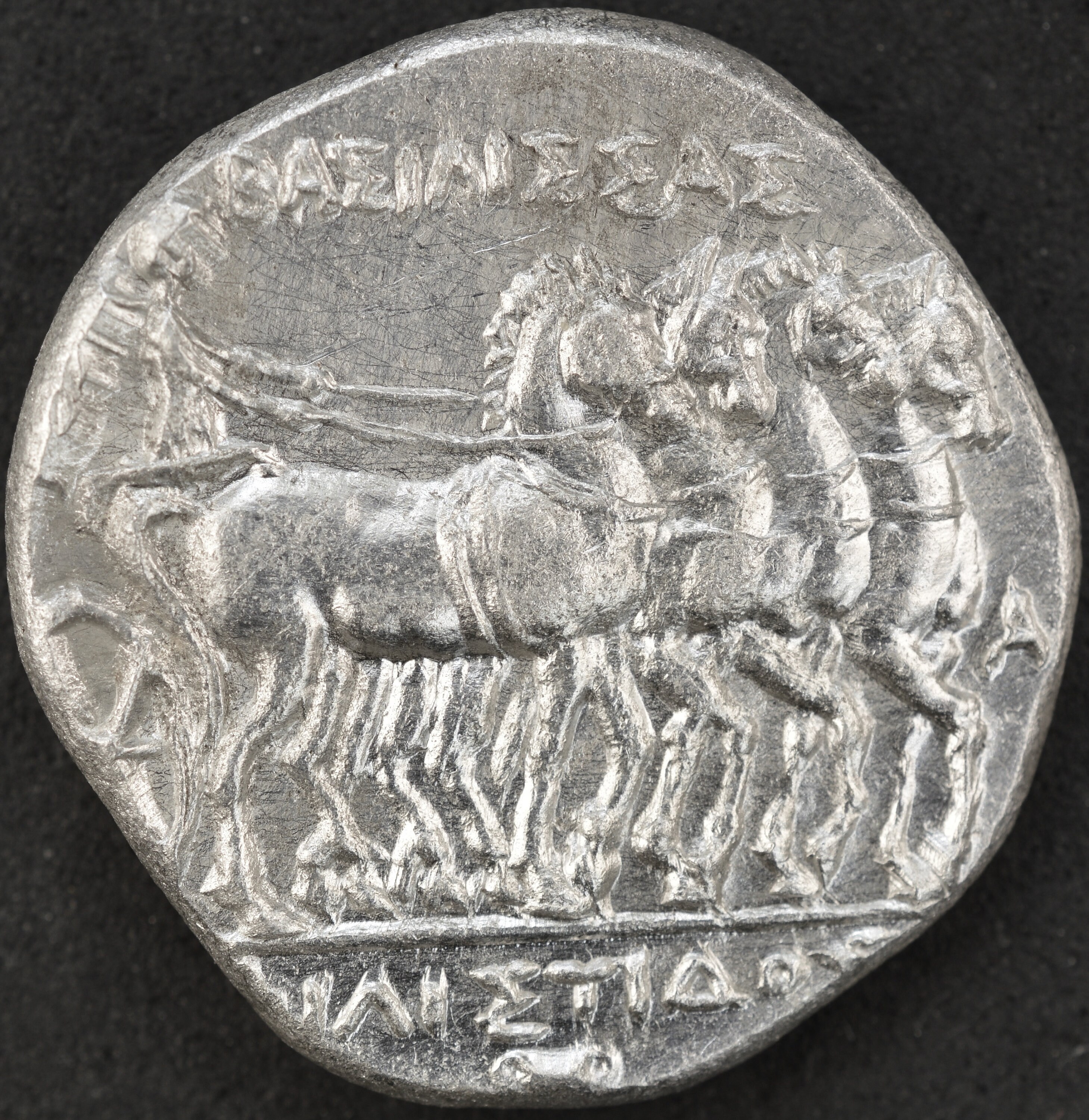 Rev: Nike driving slow quadriga to right, holding reins; ΒΑΣΙΛΙΣΣΑΣ and MI above, [ΦΙ]ΛΙΣΤΙΔΟΣ in exergue.