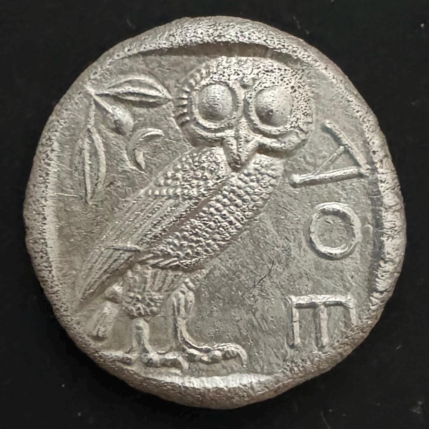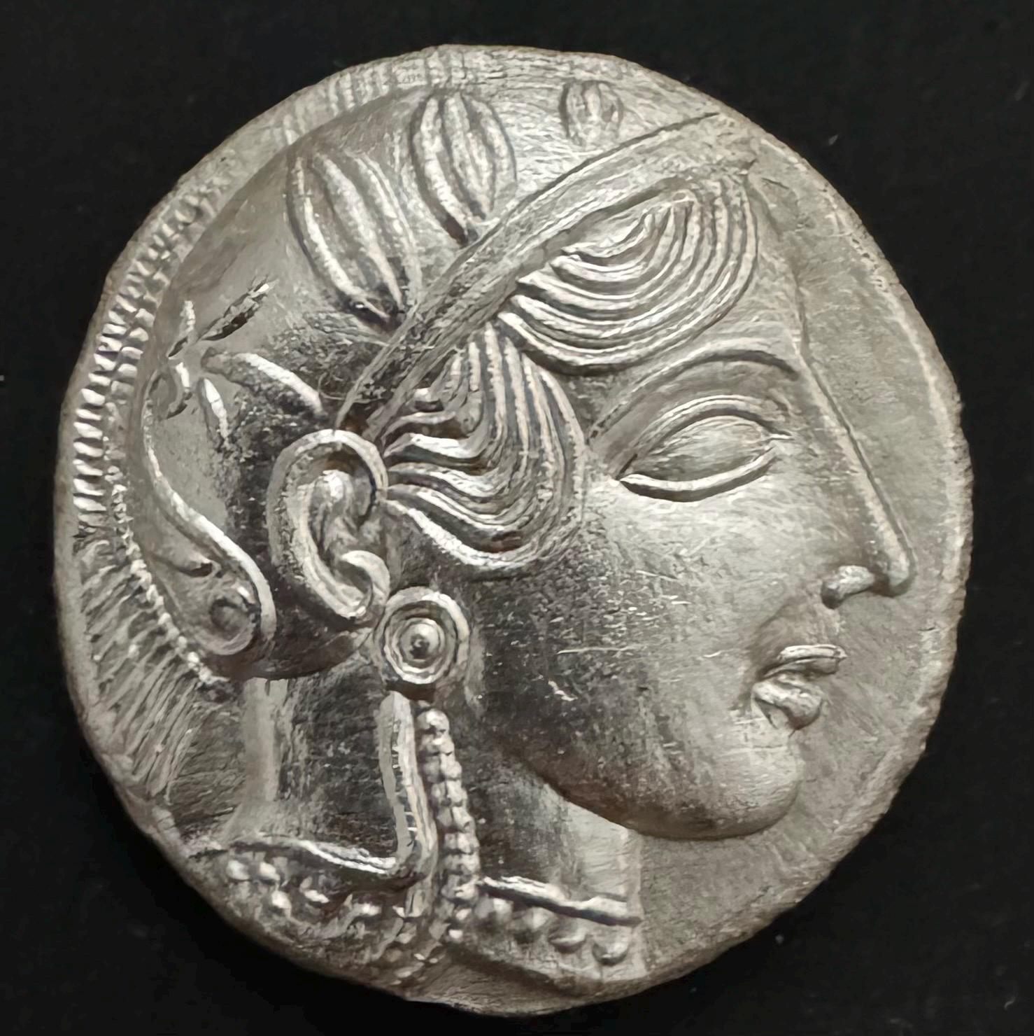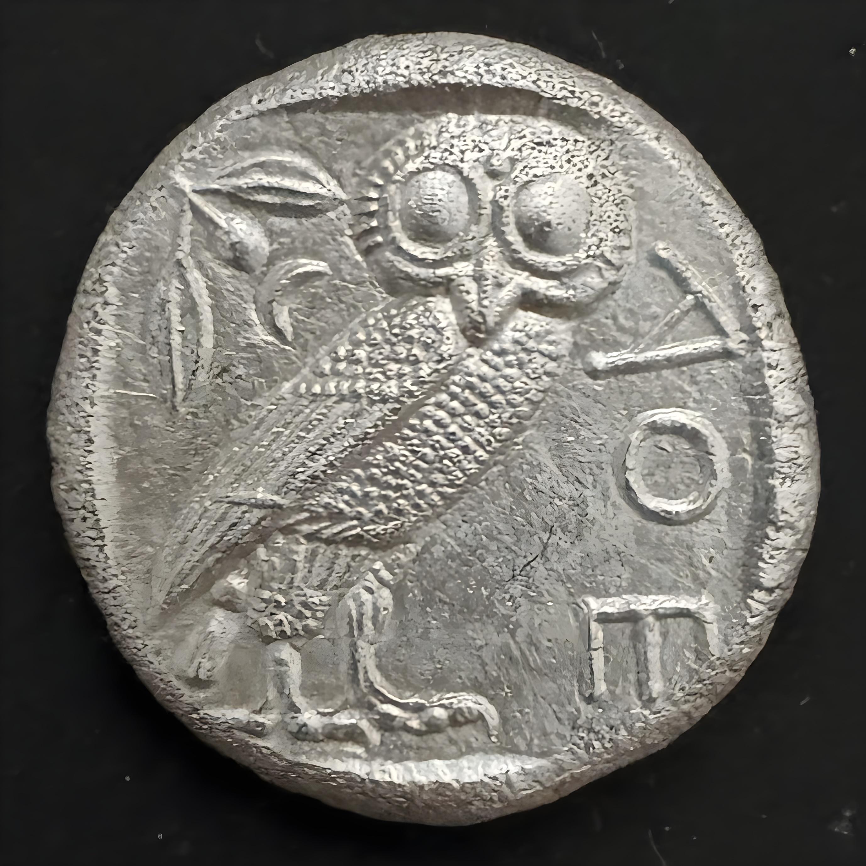 Silver Greek Tetradrachm of Athenian Owl Classical Depiction of Athena, Athens, Attica, Goddess of wisdom Athena, Solid Silver Coin