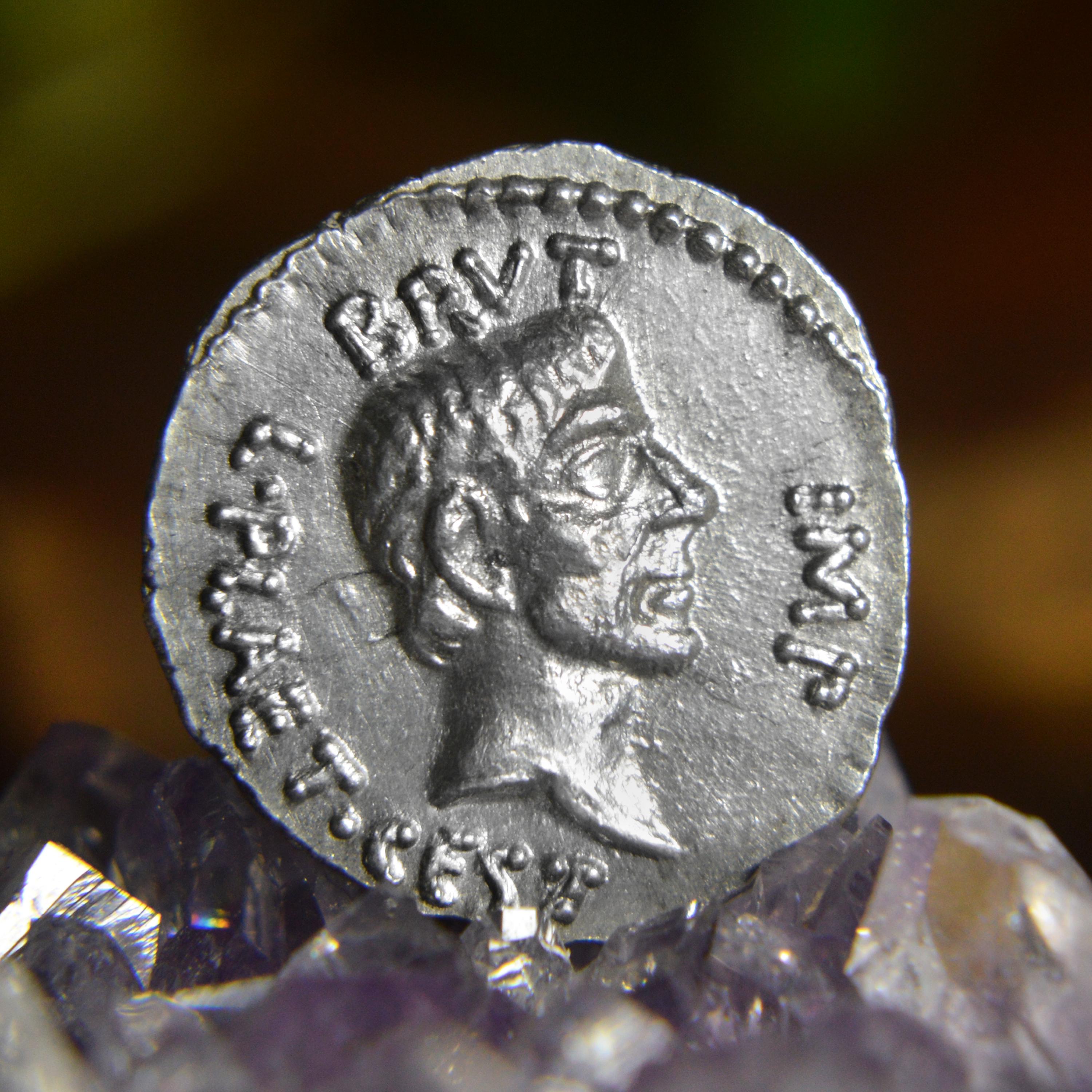 Silver Roman Denarius of Brutus, the Ides of March EID MAR, the Assassin of Julius Caesar, Marcus Junius Brutus Solid Silver Coin