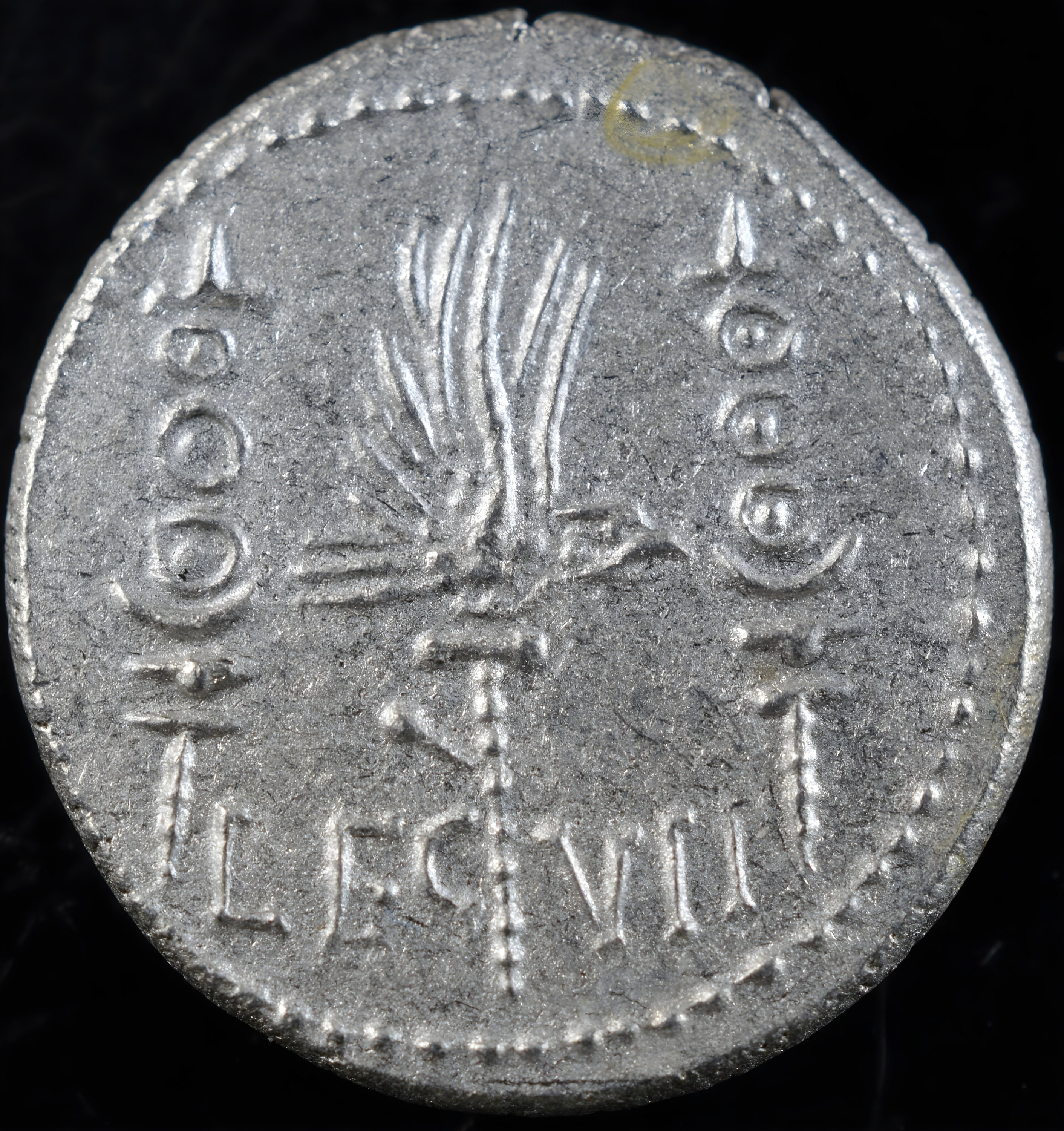 Silver Roman Denarius of Mark Antony Legionary, The Triumvirs, LEG VII Solid Silver Coin