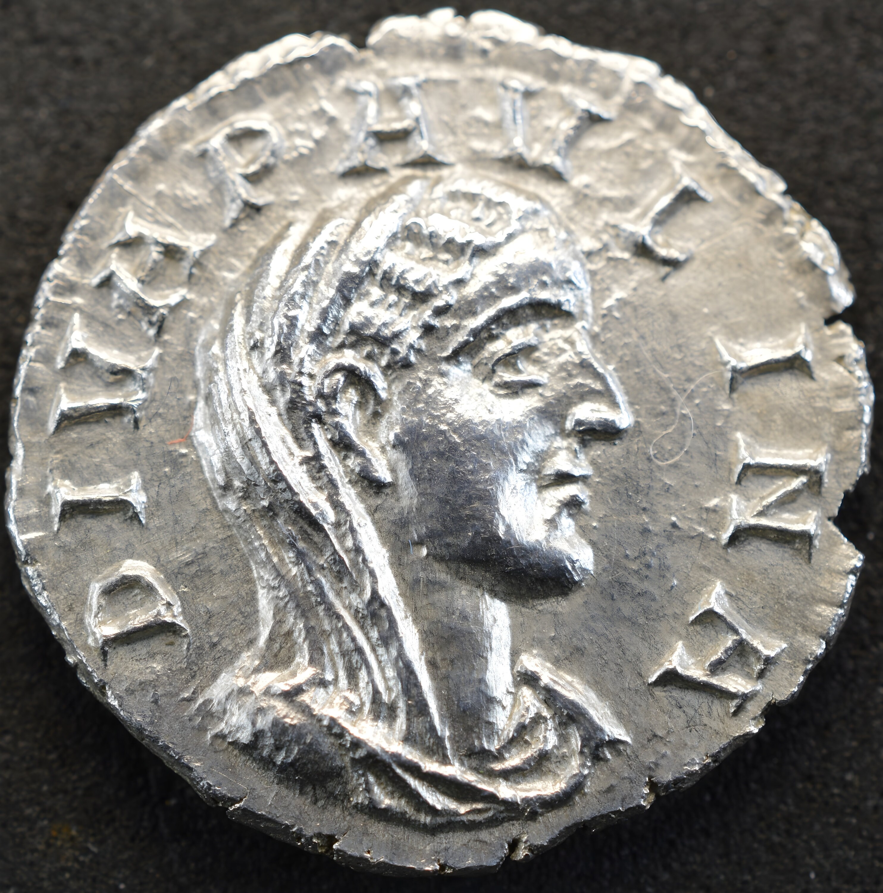 Practically everything known about the wife of emperor Maximinus Thrax (i.e. the Thracian) is recorded by two Roman historians who do not mention her name. Worse yet, one of the great sources of consternation for modern catalogers of the coinage for Empress Caecilia Paulina is the lack of sculptural likenesses to corroborate the visage on the coins. Humphrey Sutherland, in RIC IV pt. 2, p. 135, observes: “Both Ammianus Marcellinus and Zonaras refer to Maximinus wife, though without giving her name: and the attribution to this lady of the coins bearing the legend DIVA PAVLINA rests on the resemblance of the portraiture to that of Maximinus himself.” “If, therefore, she is to be identified with the Paulina of the coins, the date of her consecration is difficult to determine.”