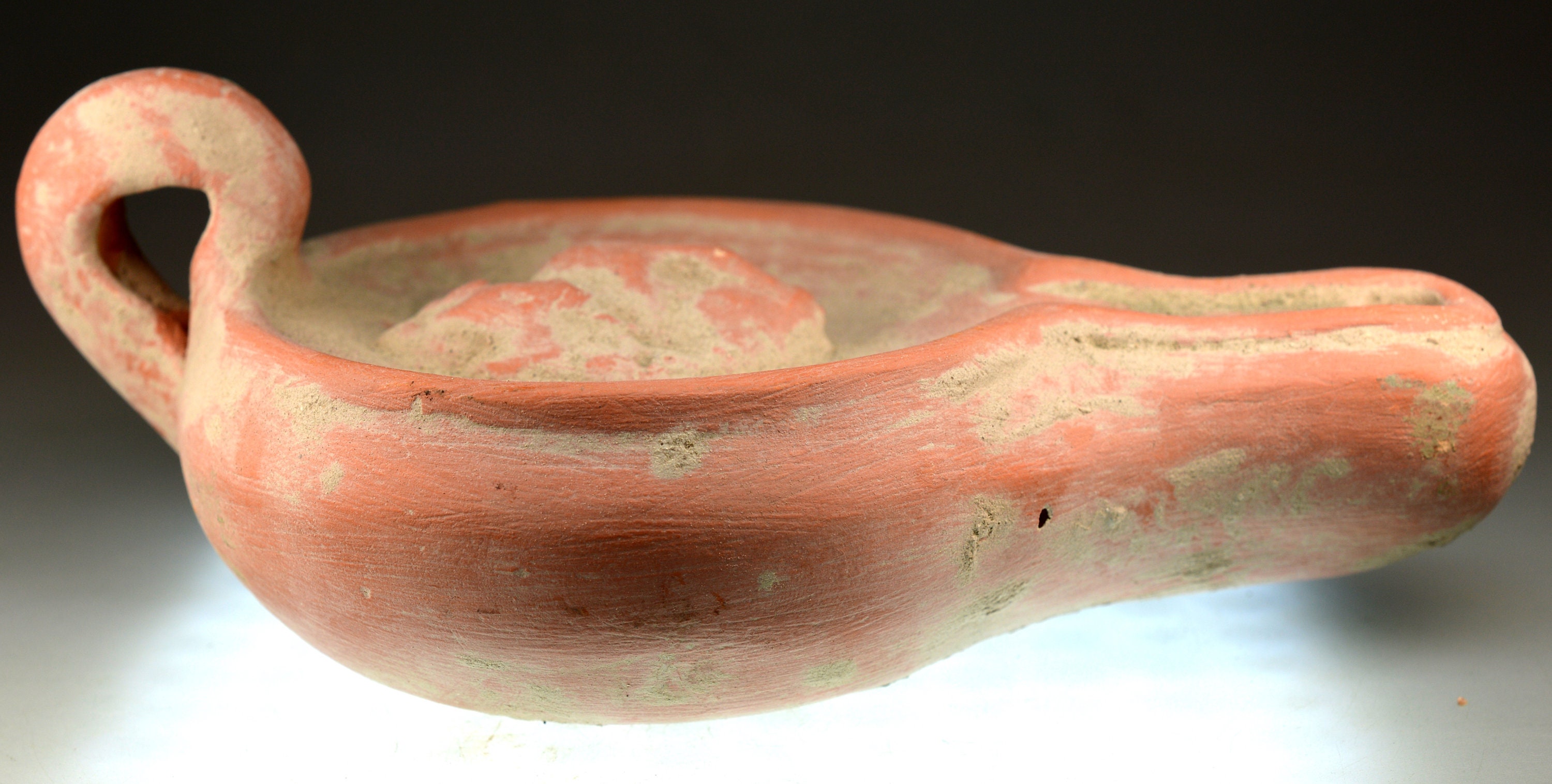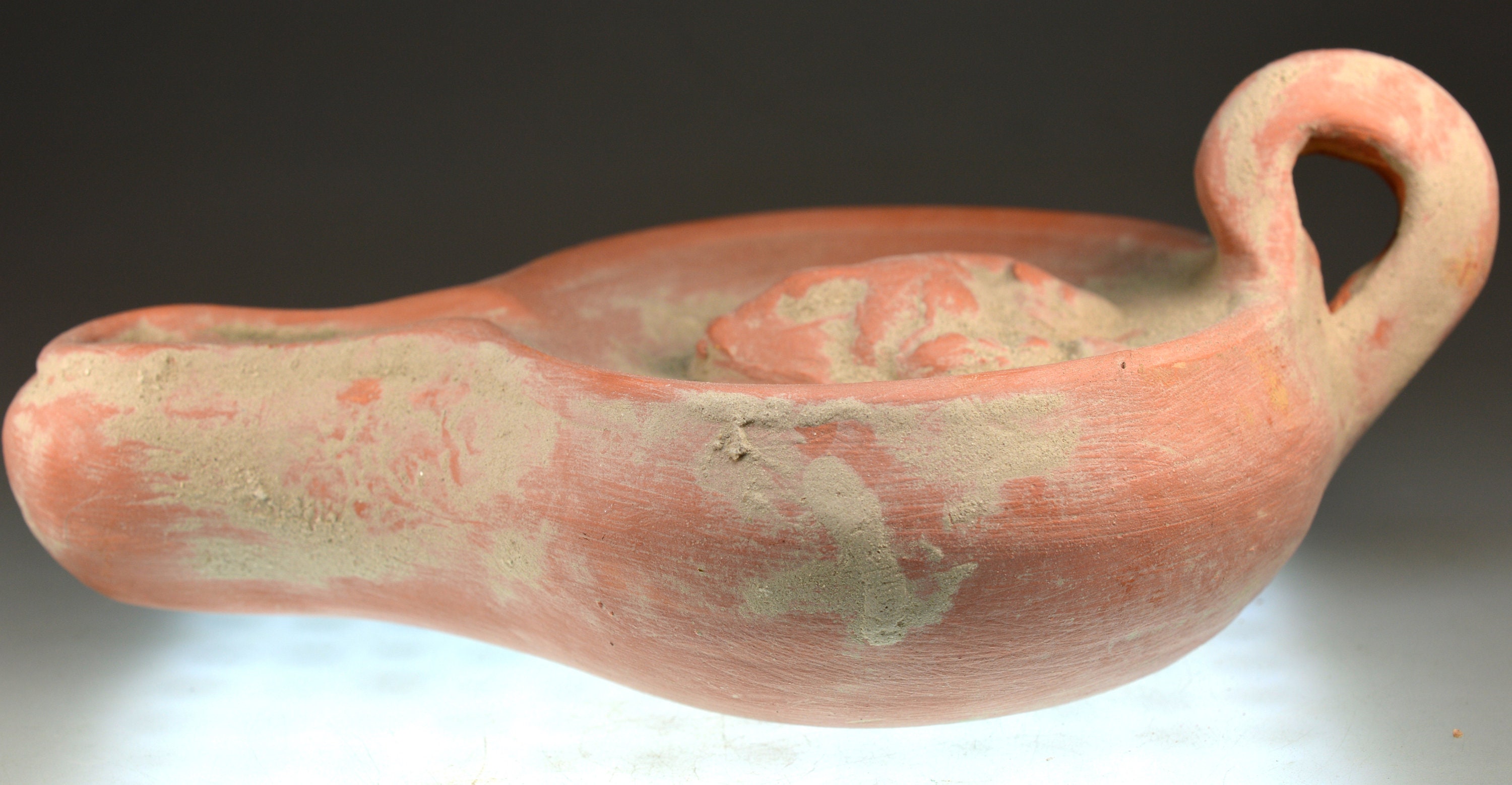Large Roman Clay Oil Lamp with Handle, Pottery Oil Lamp, Terracotta Artificial Light