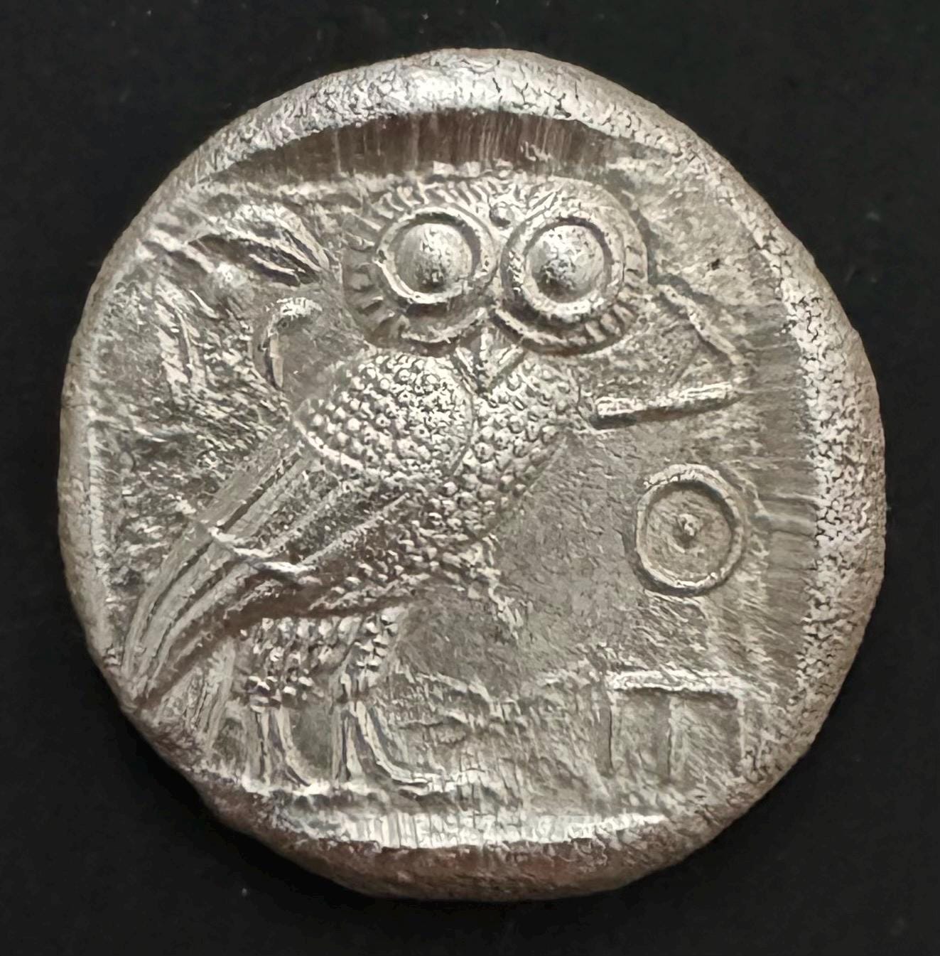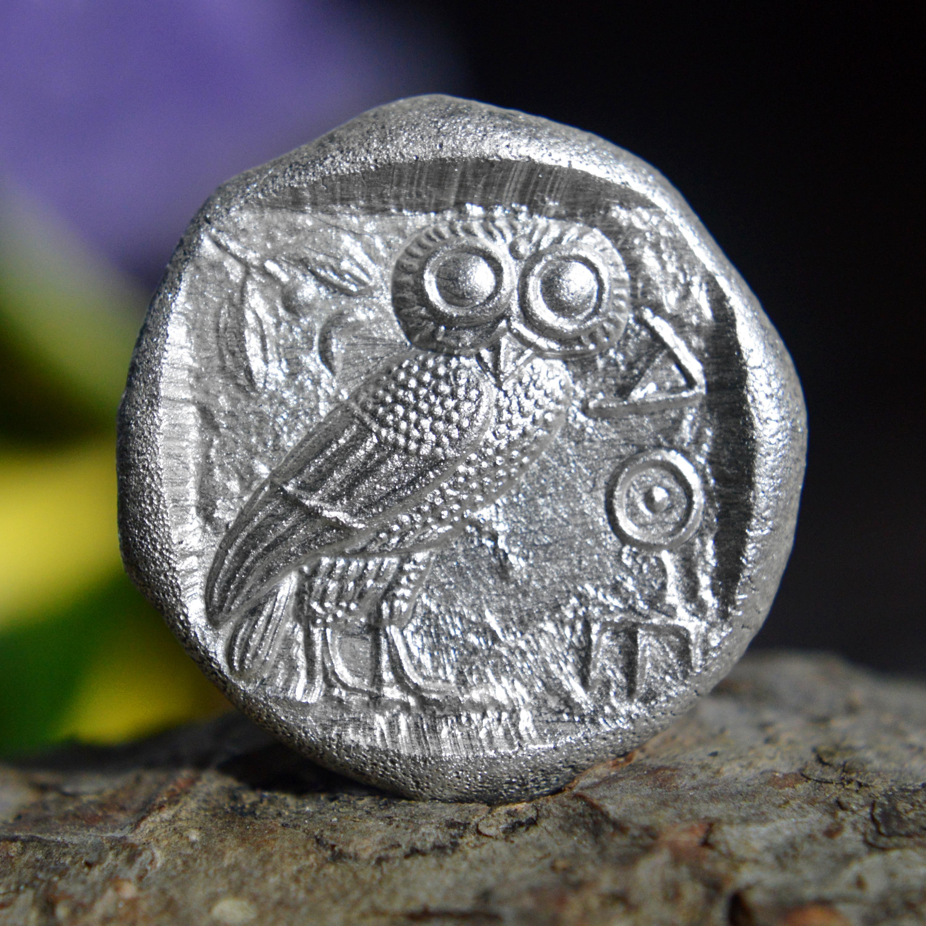 Silver Greek Tetradrachm of Athenian Owl Classical Depiction of Athena, Athens Attica Owl goddess of wisdom Athena, Solid Silver Coin