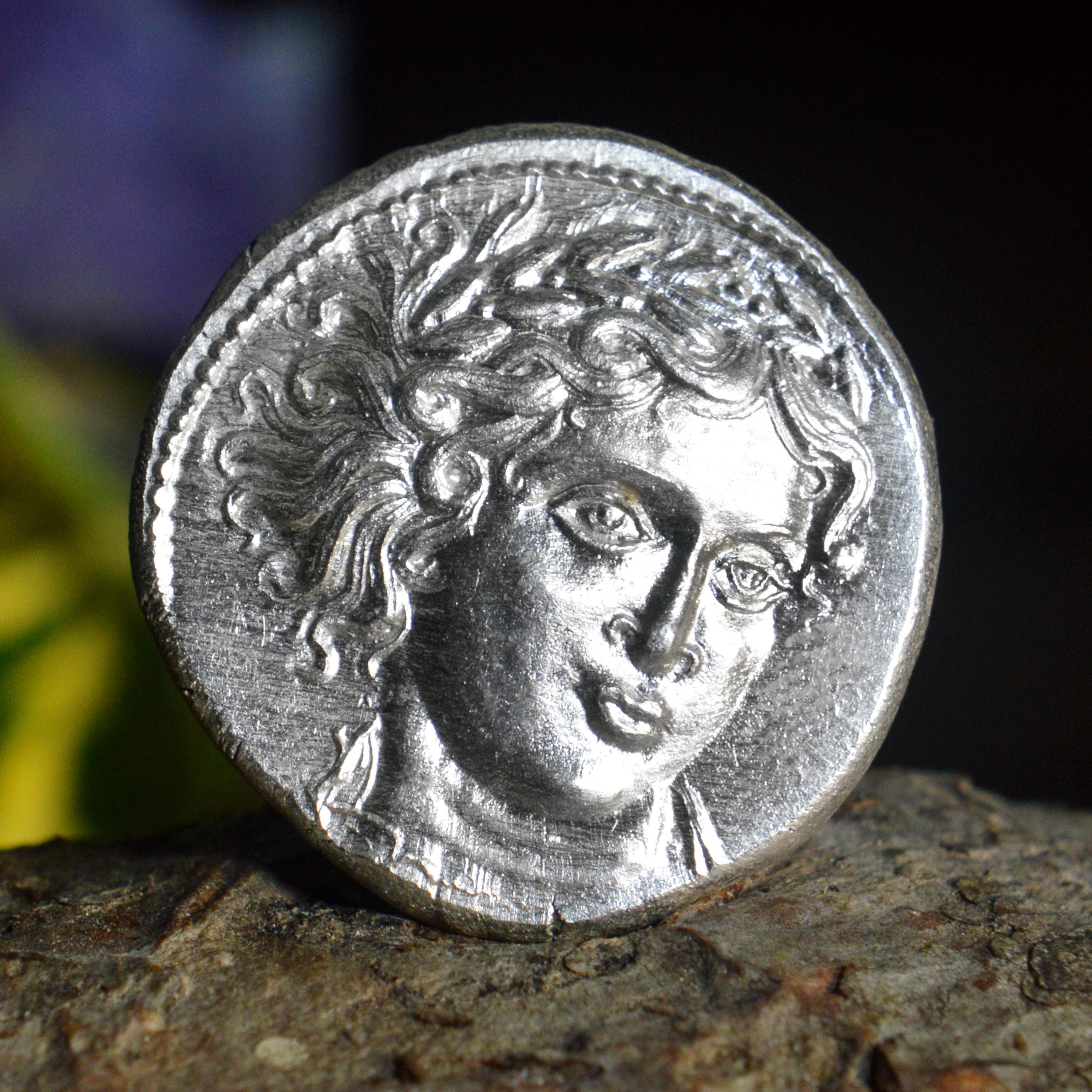Experience the glory of ancient Greece with our hand-crafted Greek Tetradrachm replica — a museum-quality coin inspired by classical artistry and historic legacy. Each piece is hand-struck in solid silver, not cast, using techniques rooted in the traditions of ancient Greek coin-makers.