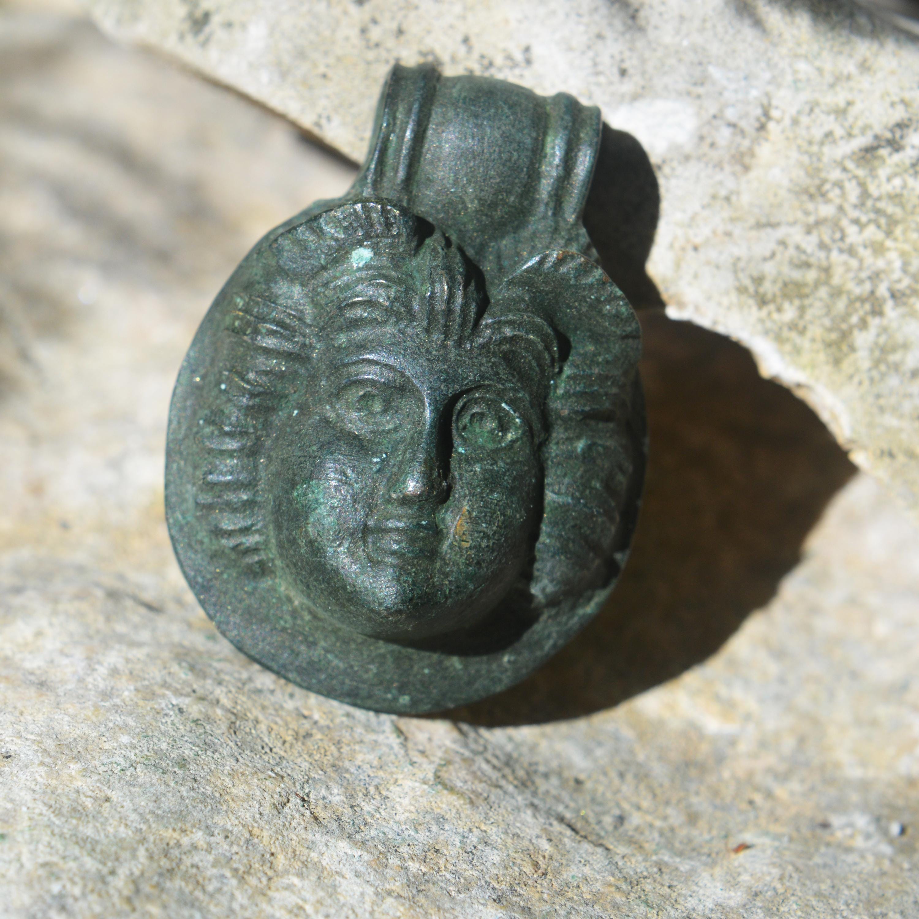 Roman Bronze Gorgon Medusa Amulet Pendant