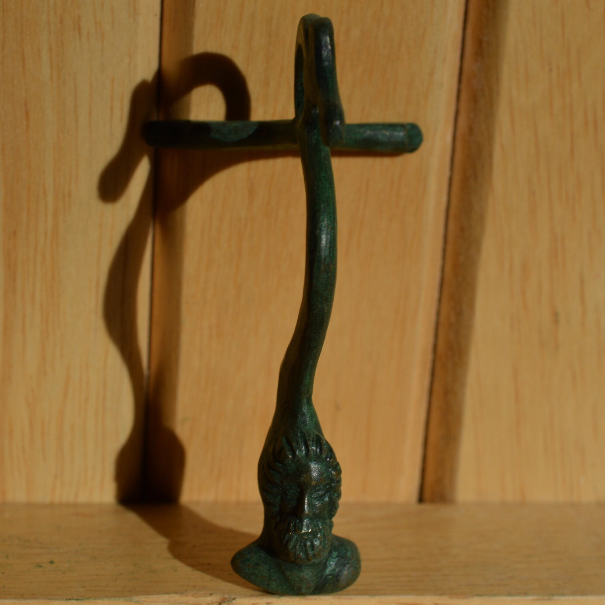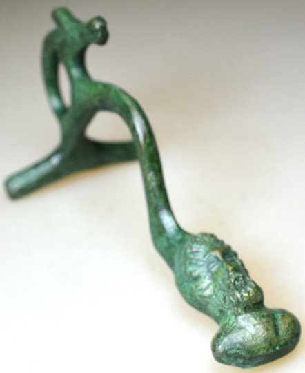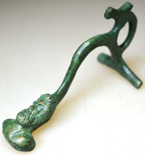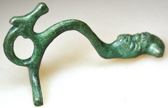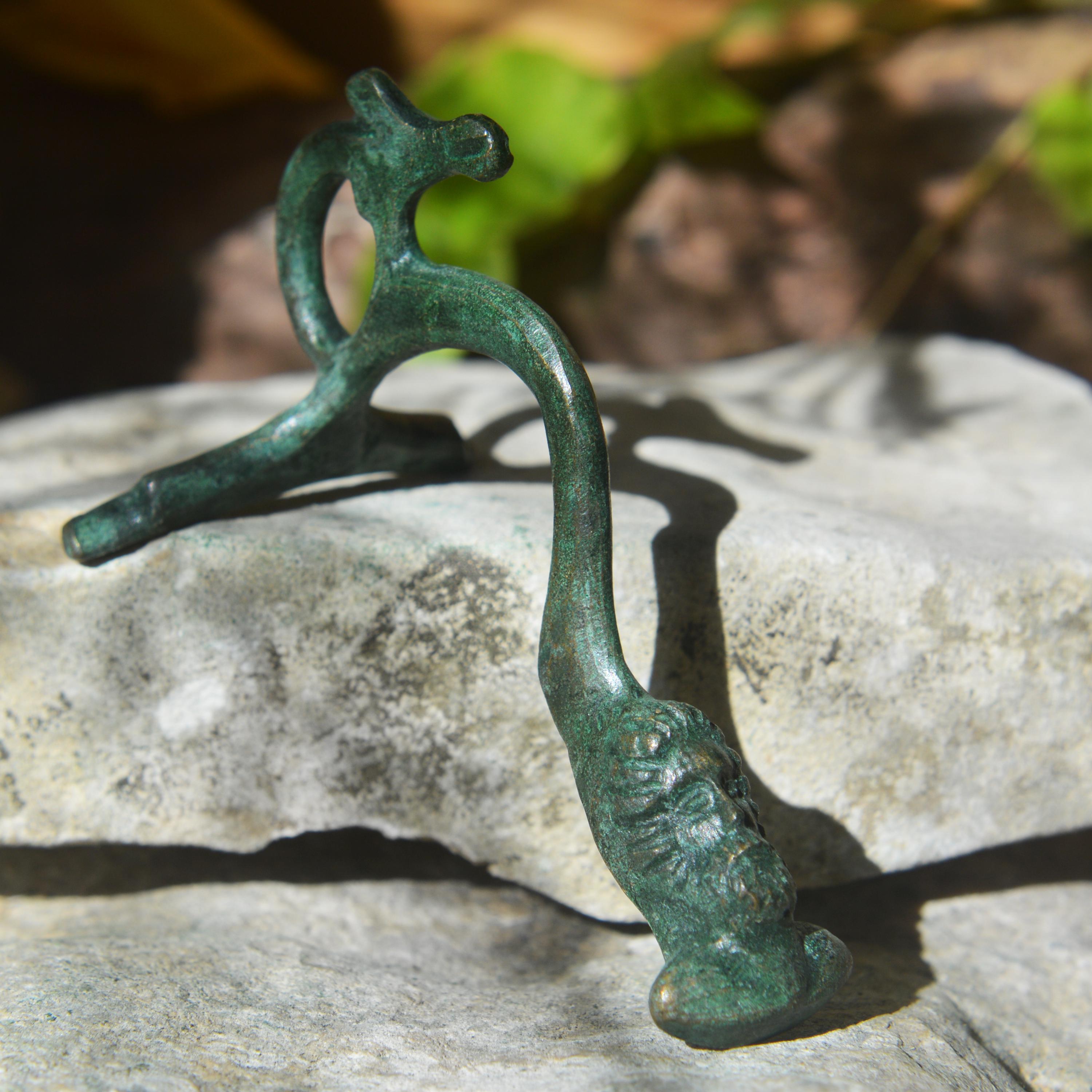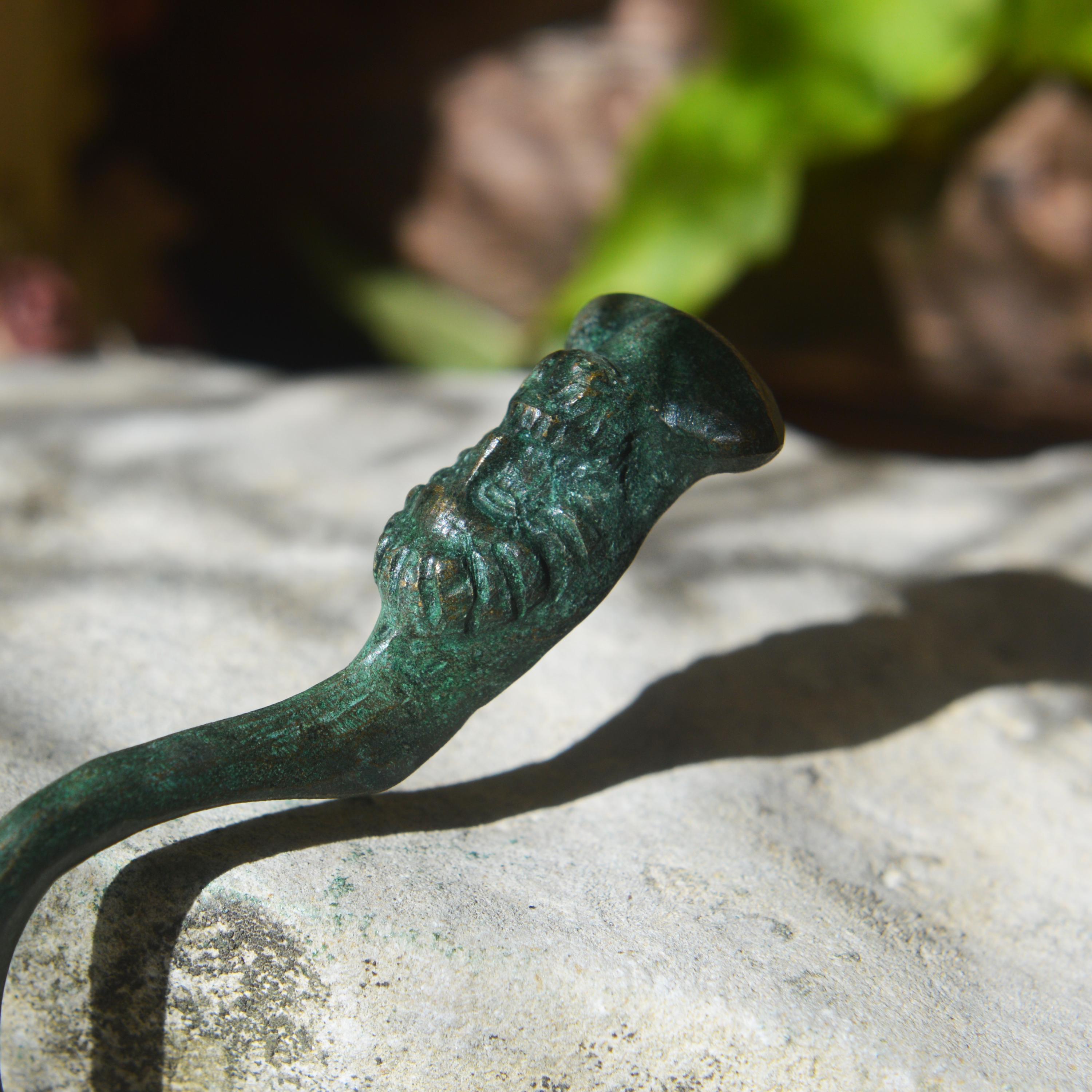 Roman Bronze Handle of a Jug with the Head of a Satyr