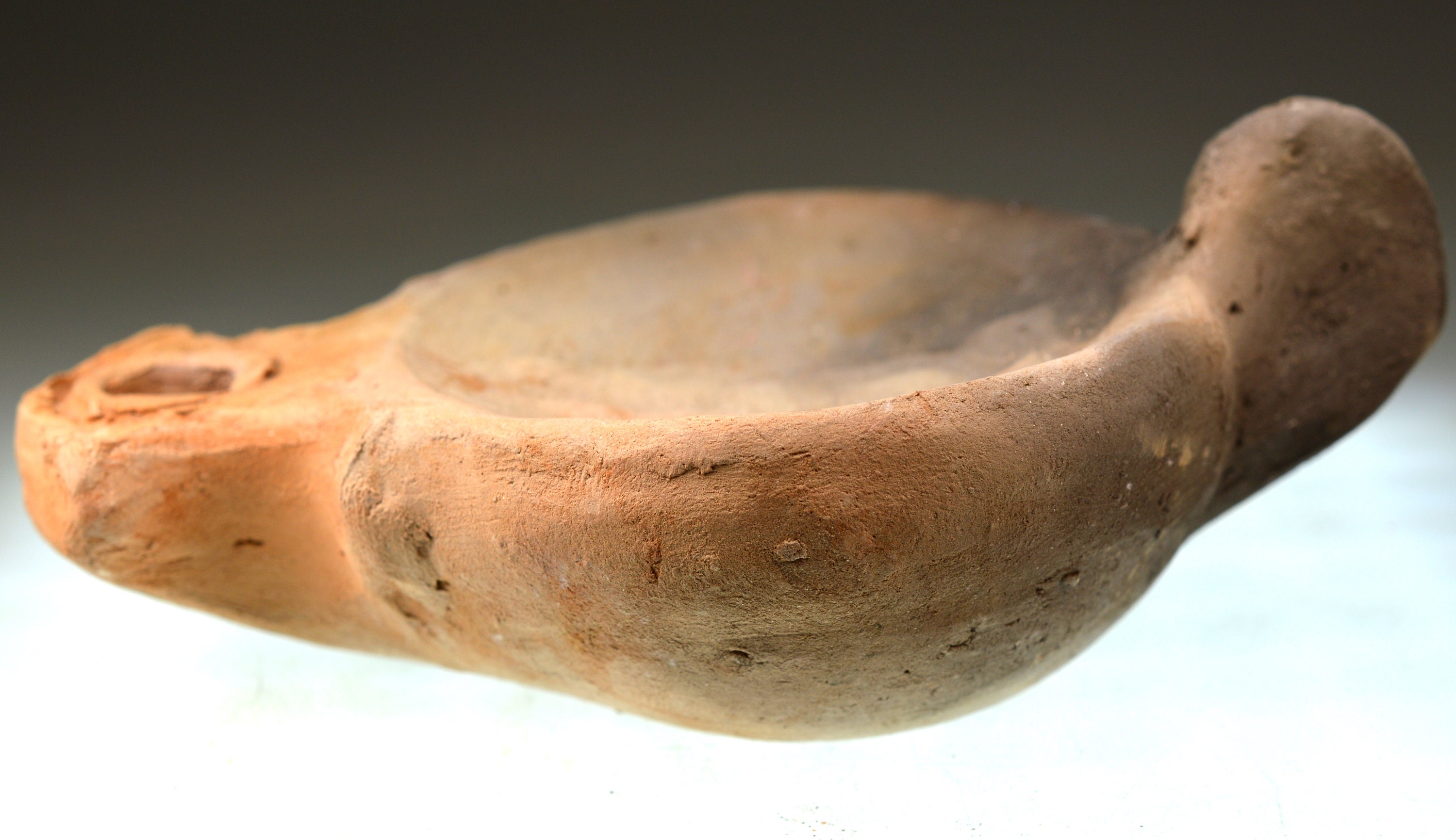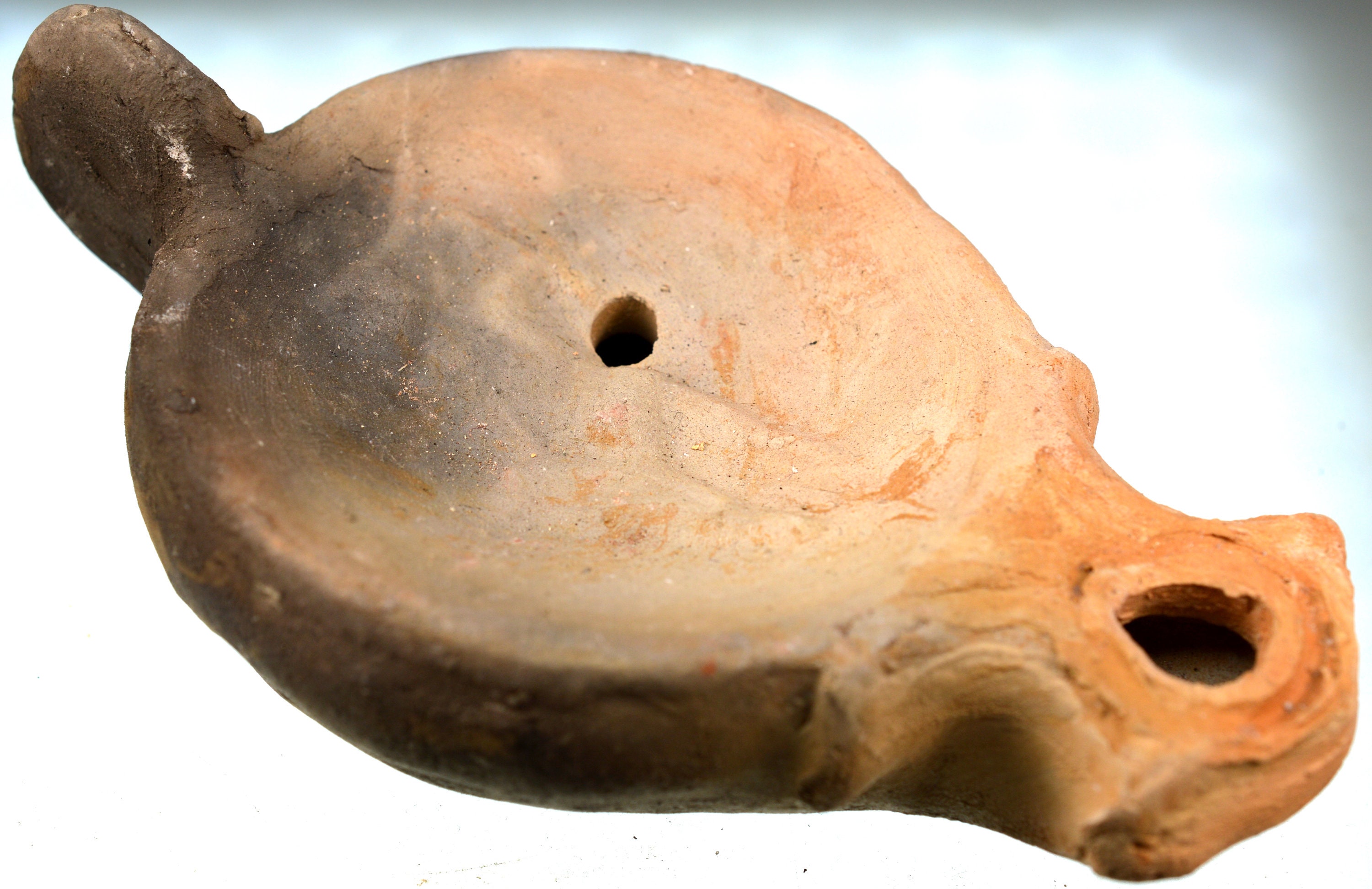Roman Clay Oil Lamp with Handle, Pottery Oil Lamp, Terracotta Artificial Light