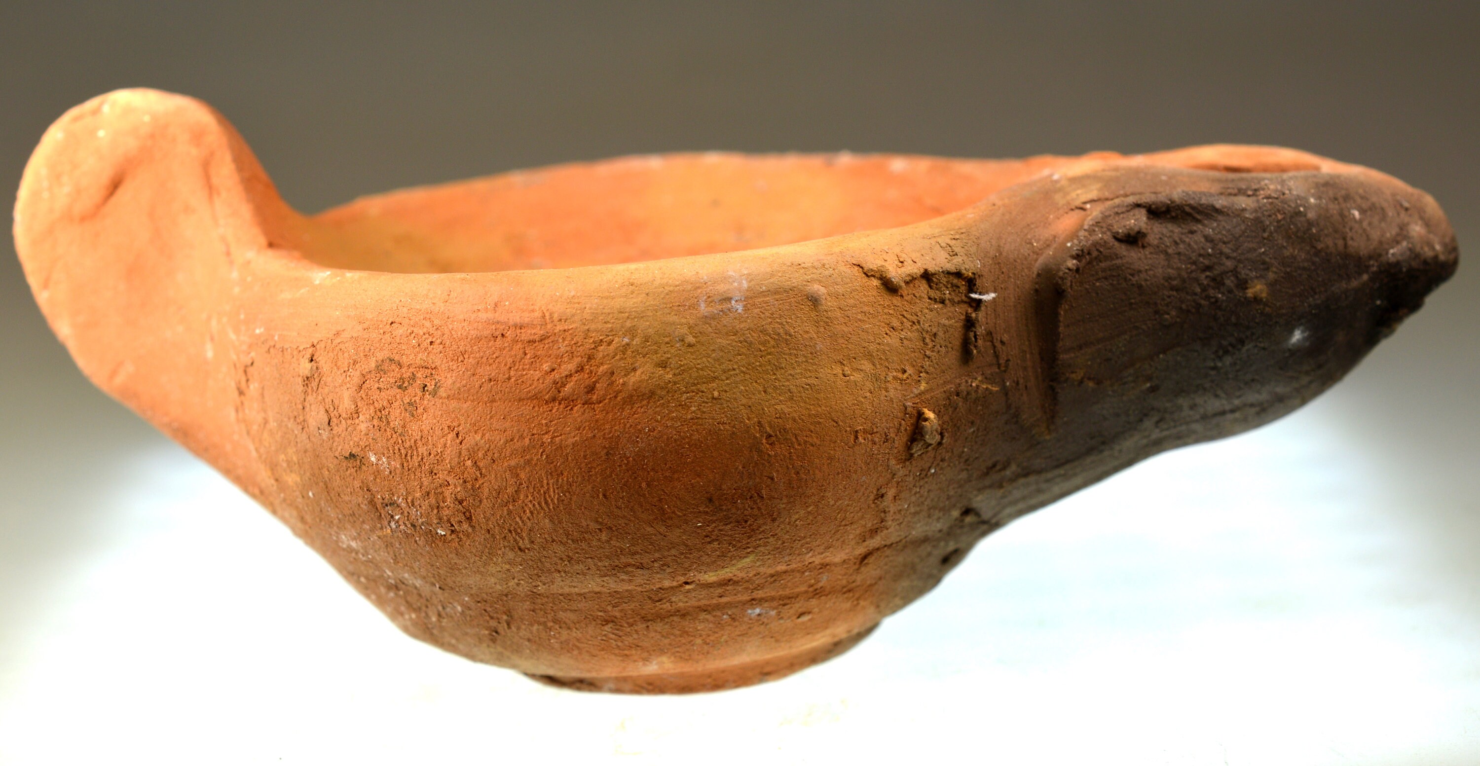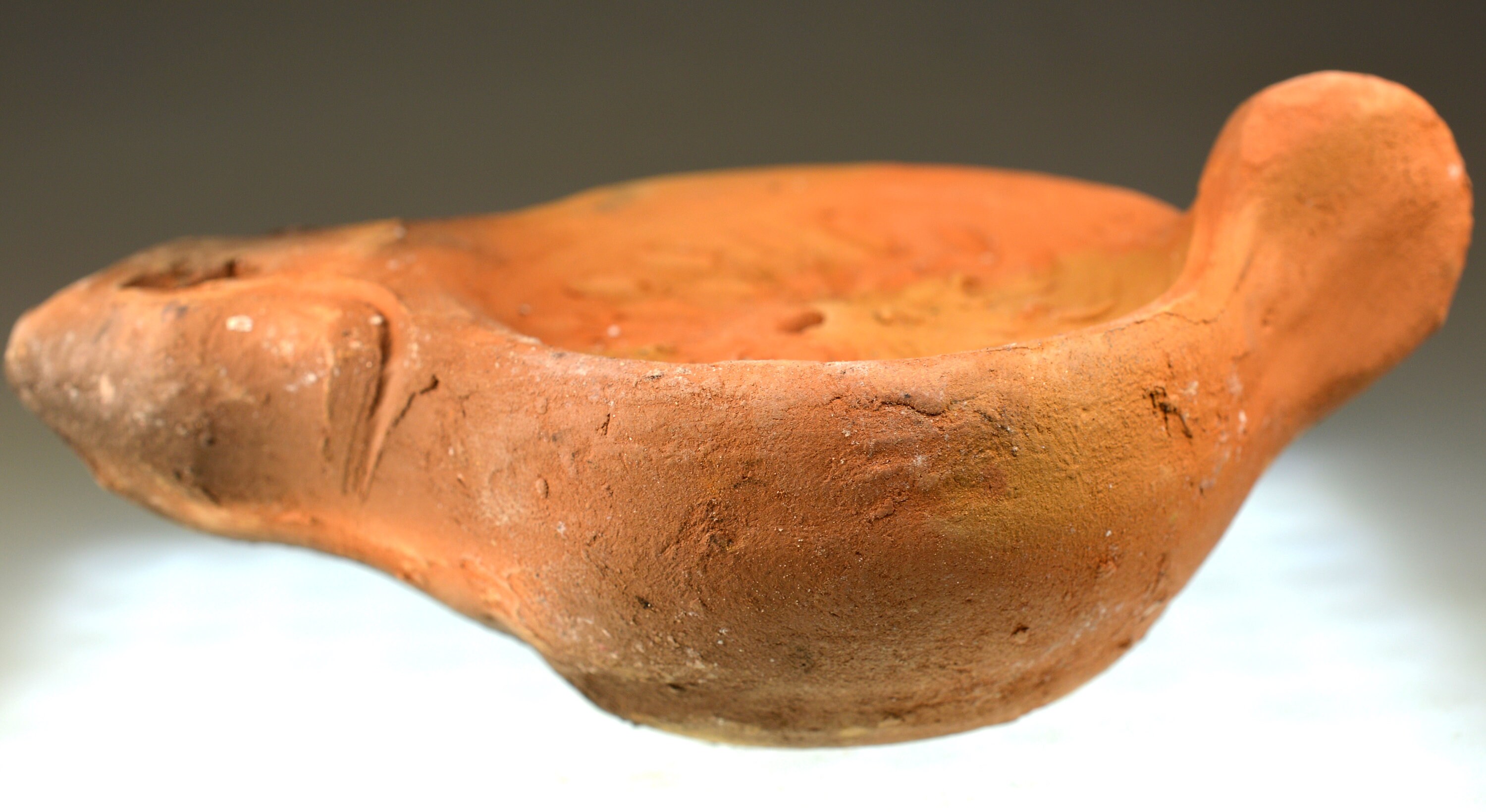 Roman Clay Oil Lamp with Handle, Pottery Oil Lamp, Terracotta Artificial Light