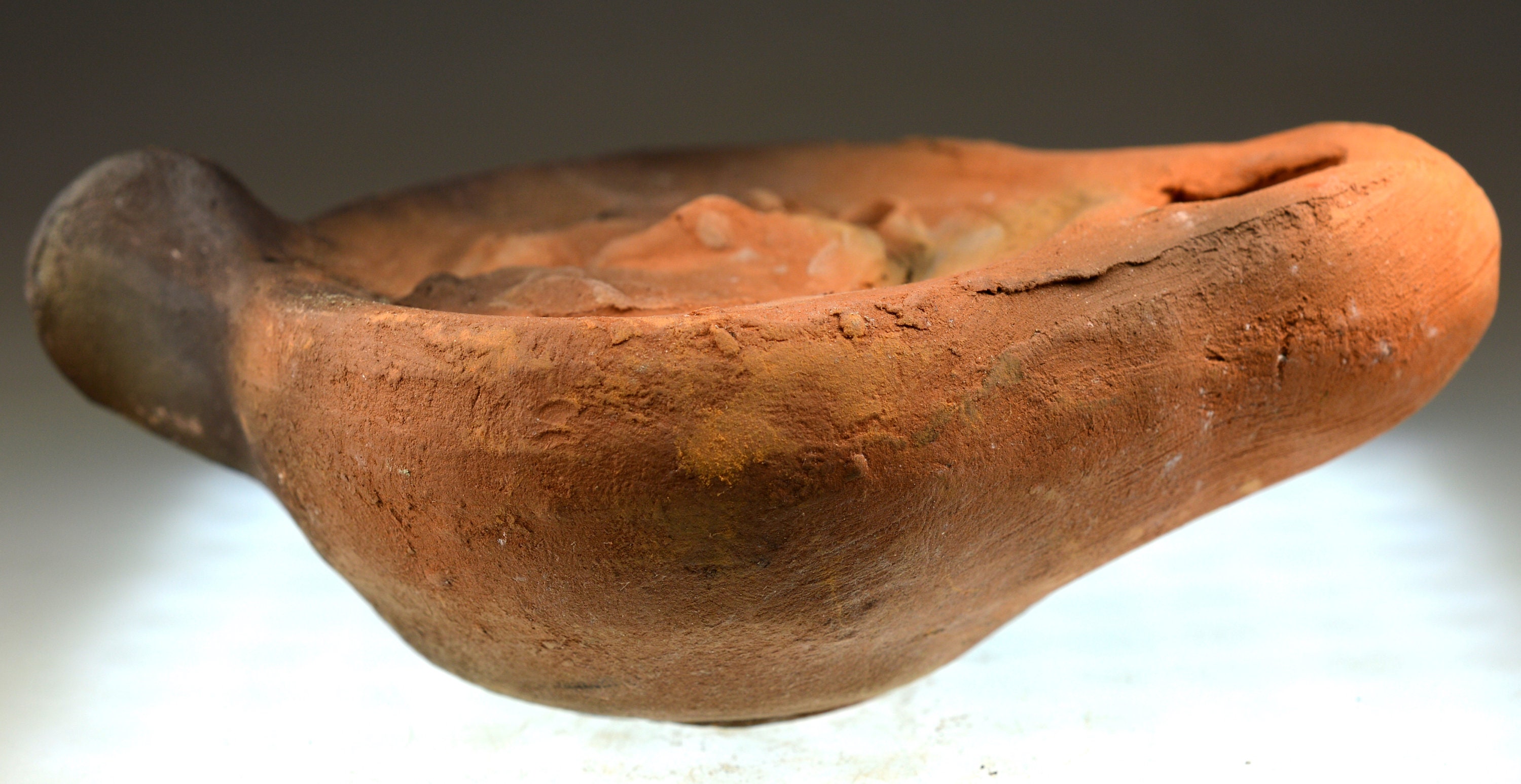 Roman Clay Oil Lamp with Handle, Pottery Oil Lamp, Terracotta Artificial Light