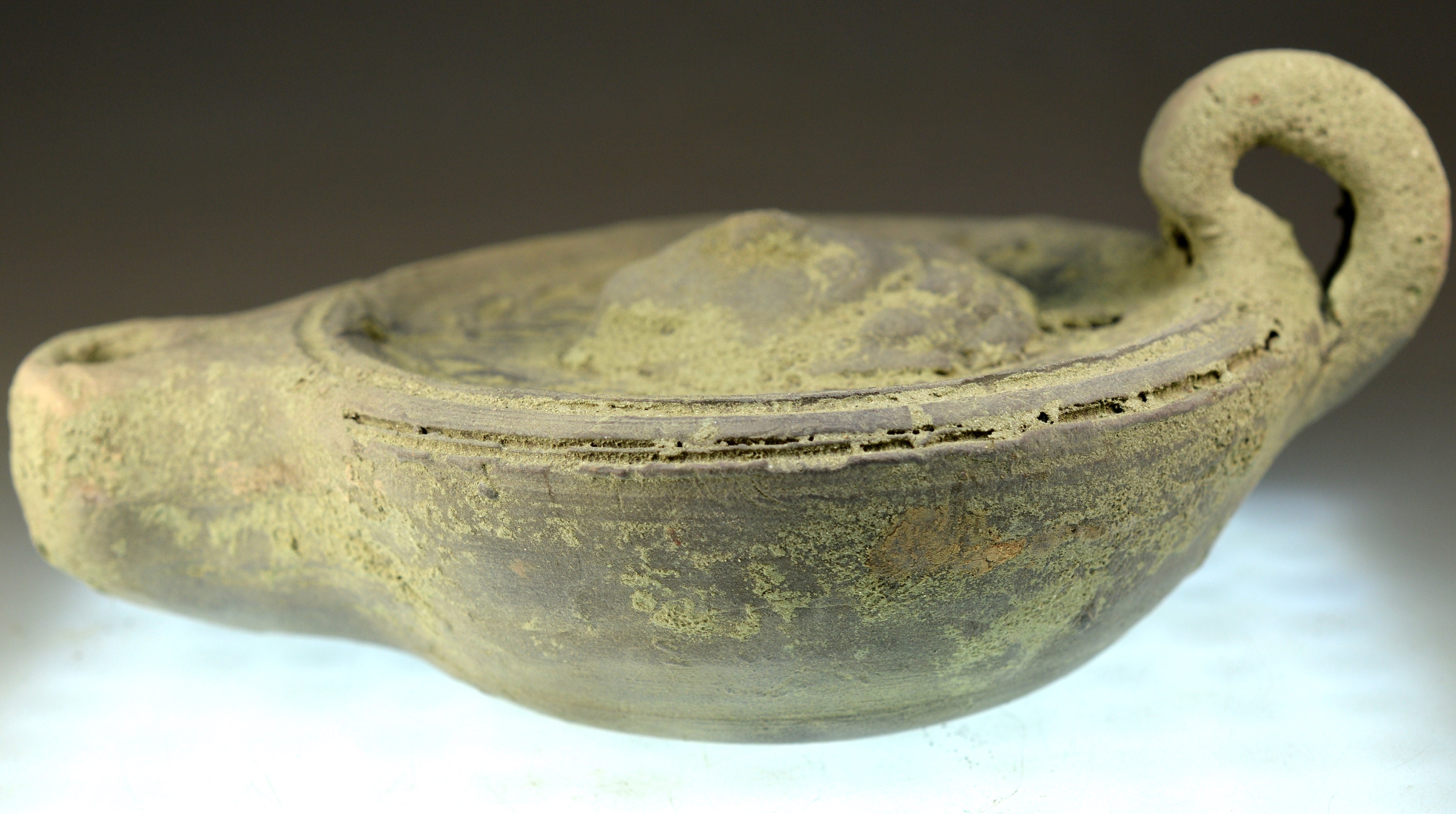 Large Roman Clay Oil Lamp with Handle, Pottery Oil Lamp, Terracotta Artificial Light