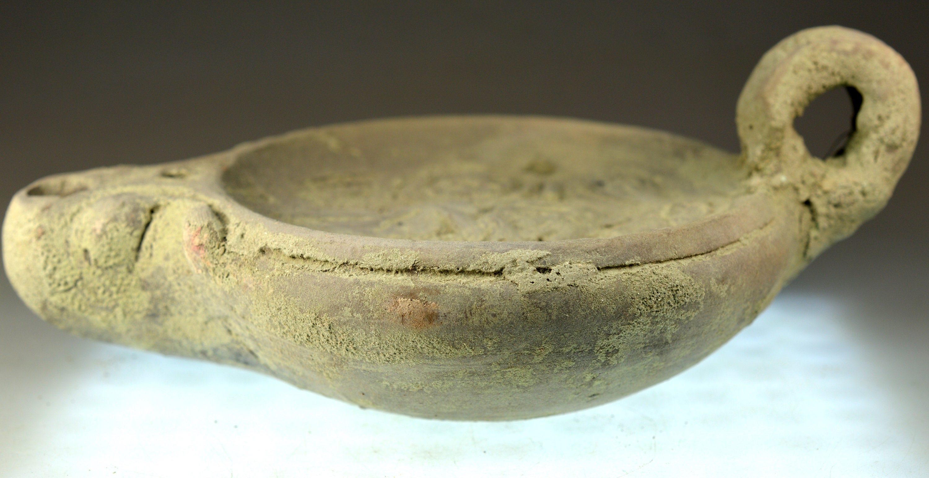 Large Roman Clay Oil Lamp with Handle, Pottery Oil Lamp, Terracotta Artificial Light