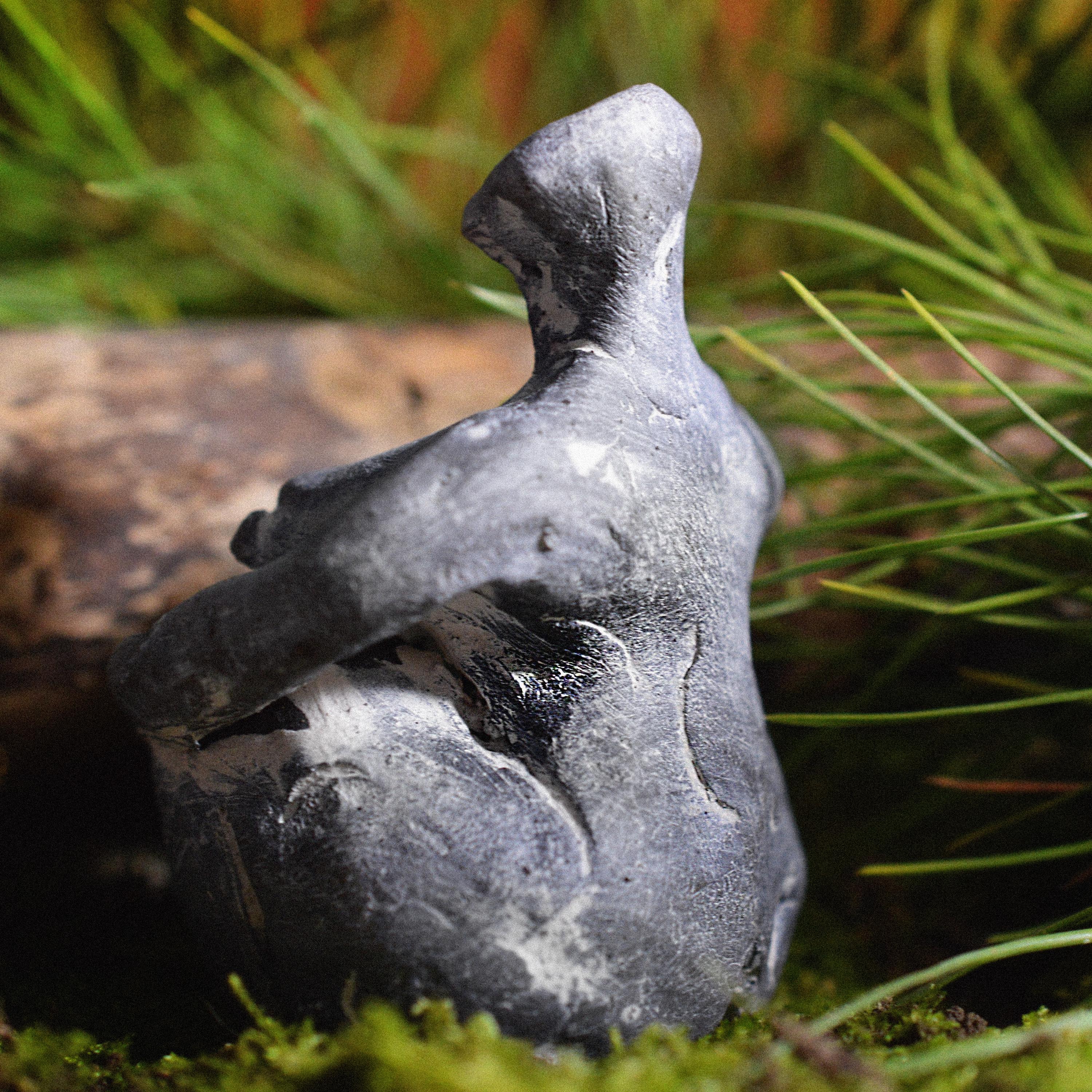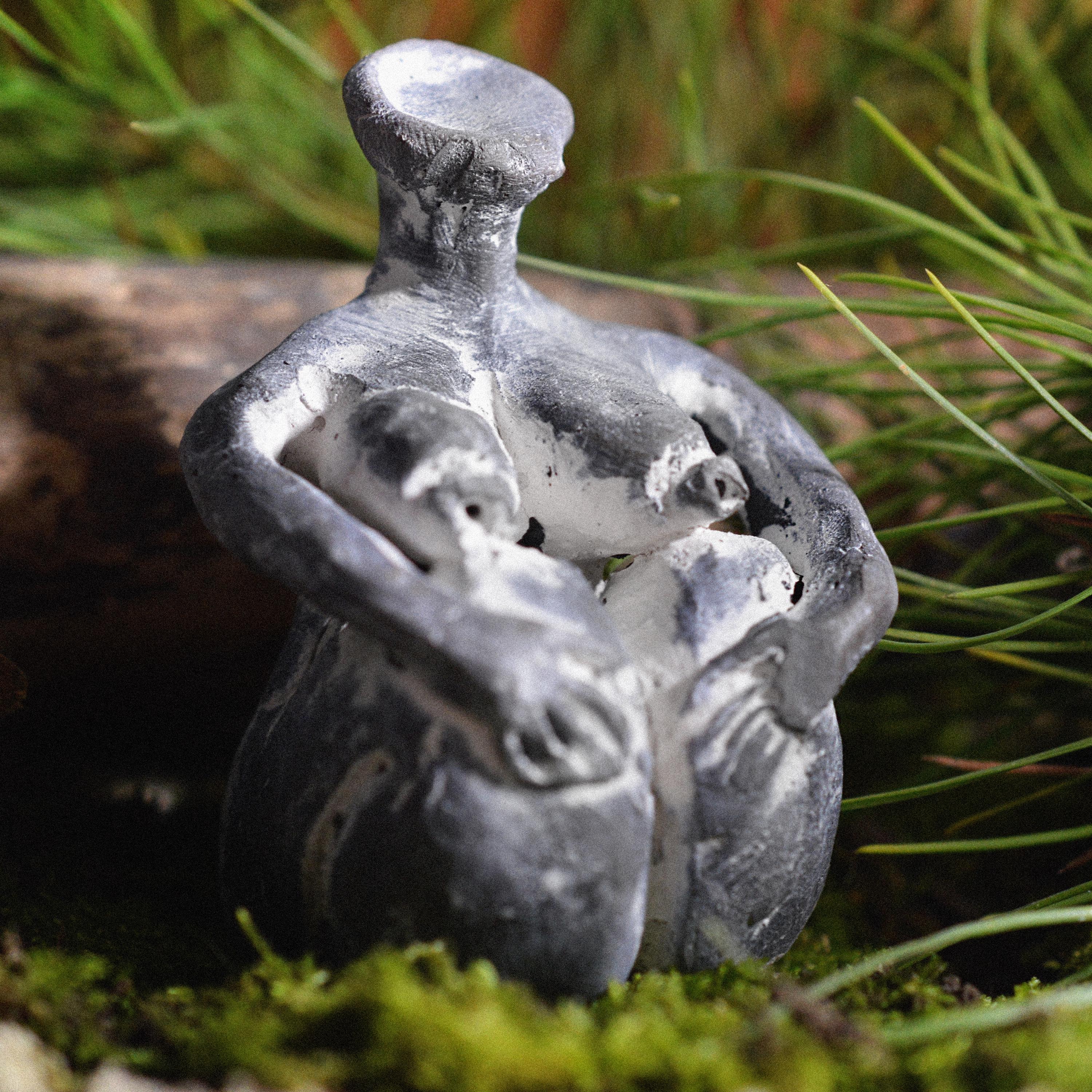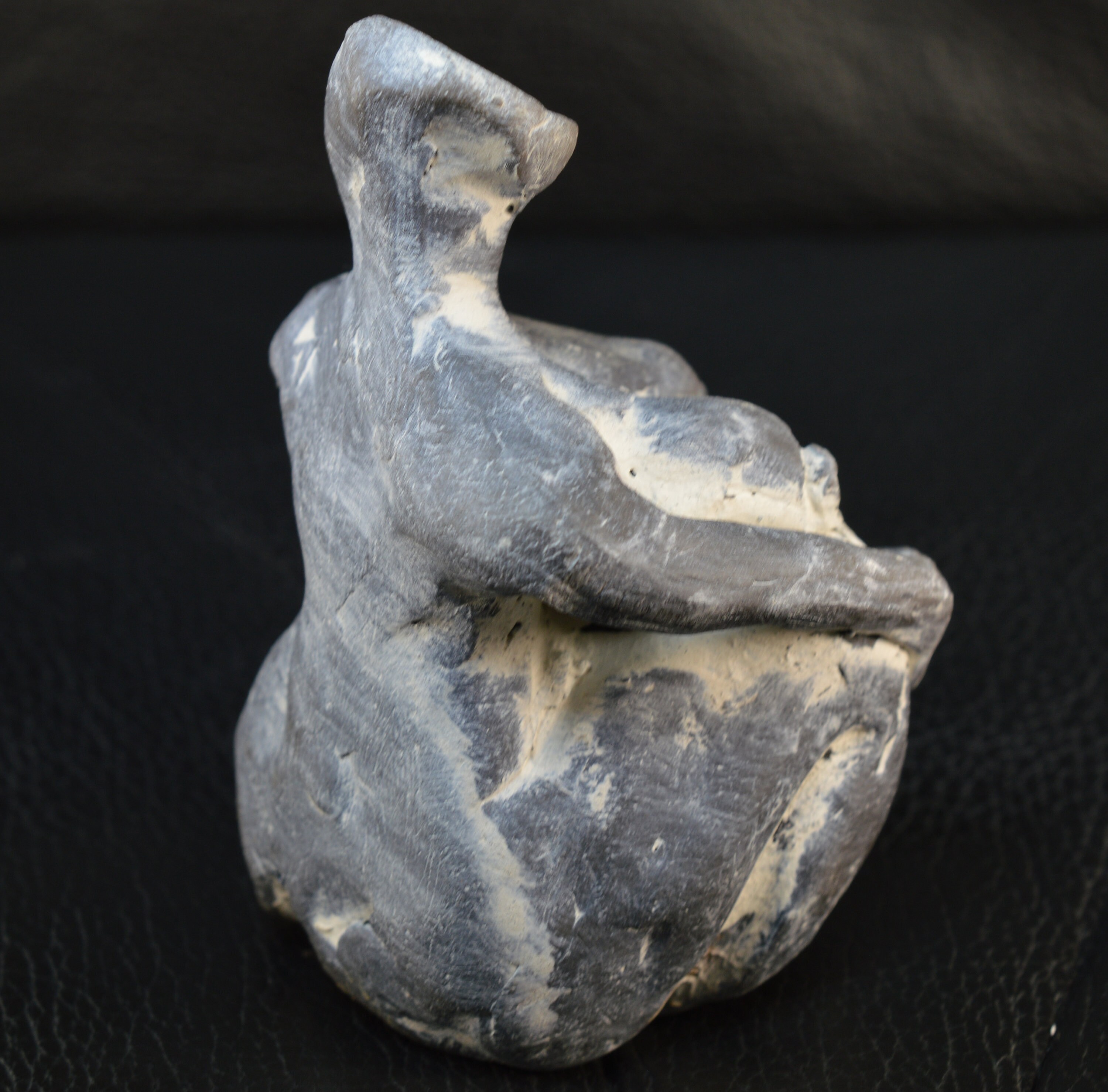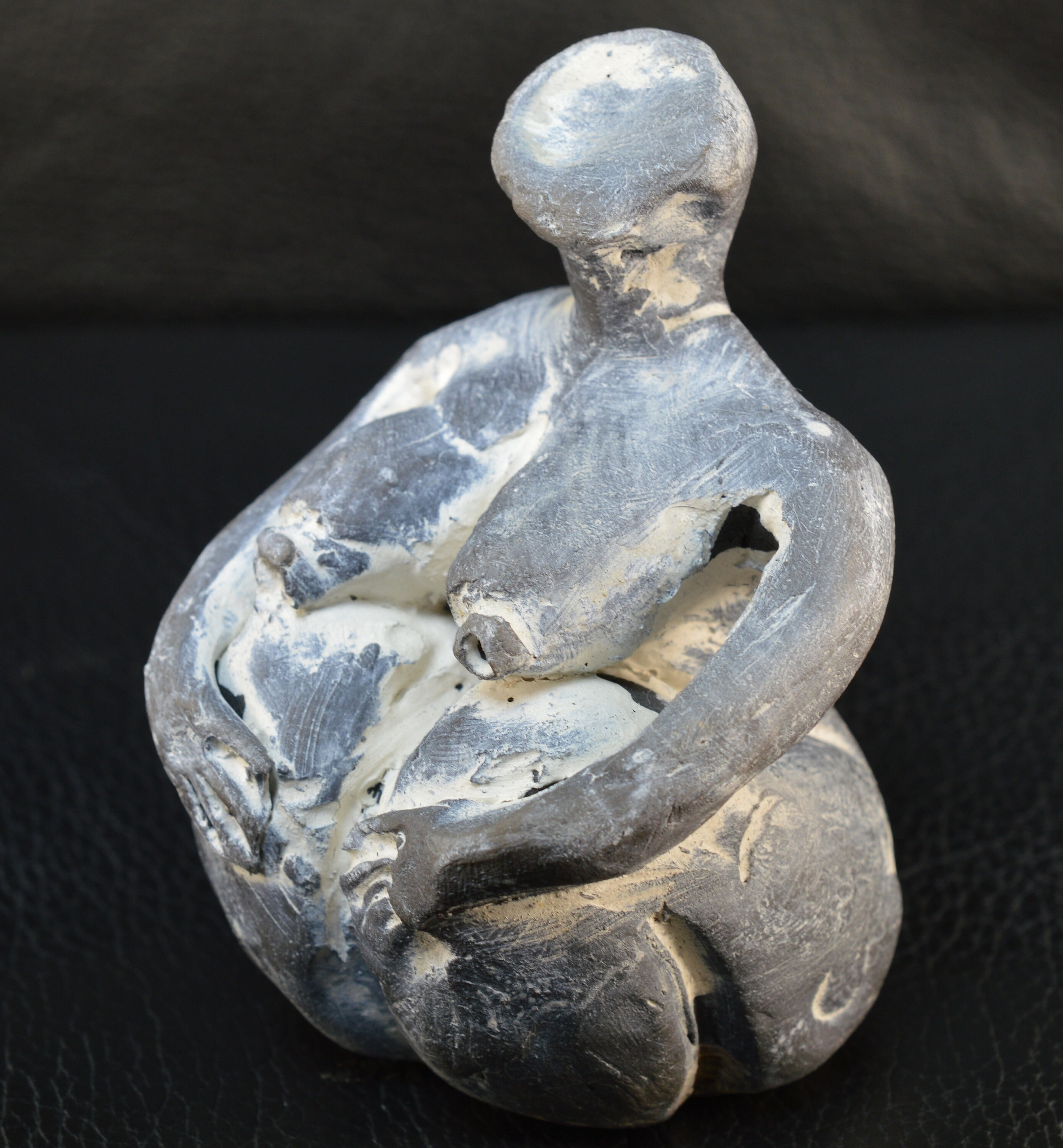 Handcrafted from clay, the figurine depicts a sitting, pregnant women with large belly and full hips. The female Goddess is believed to be a symbol of fertility and prolificacy.
