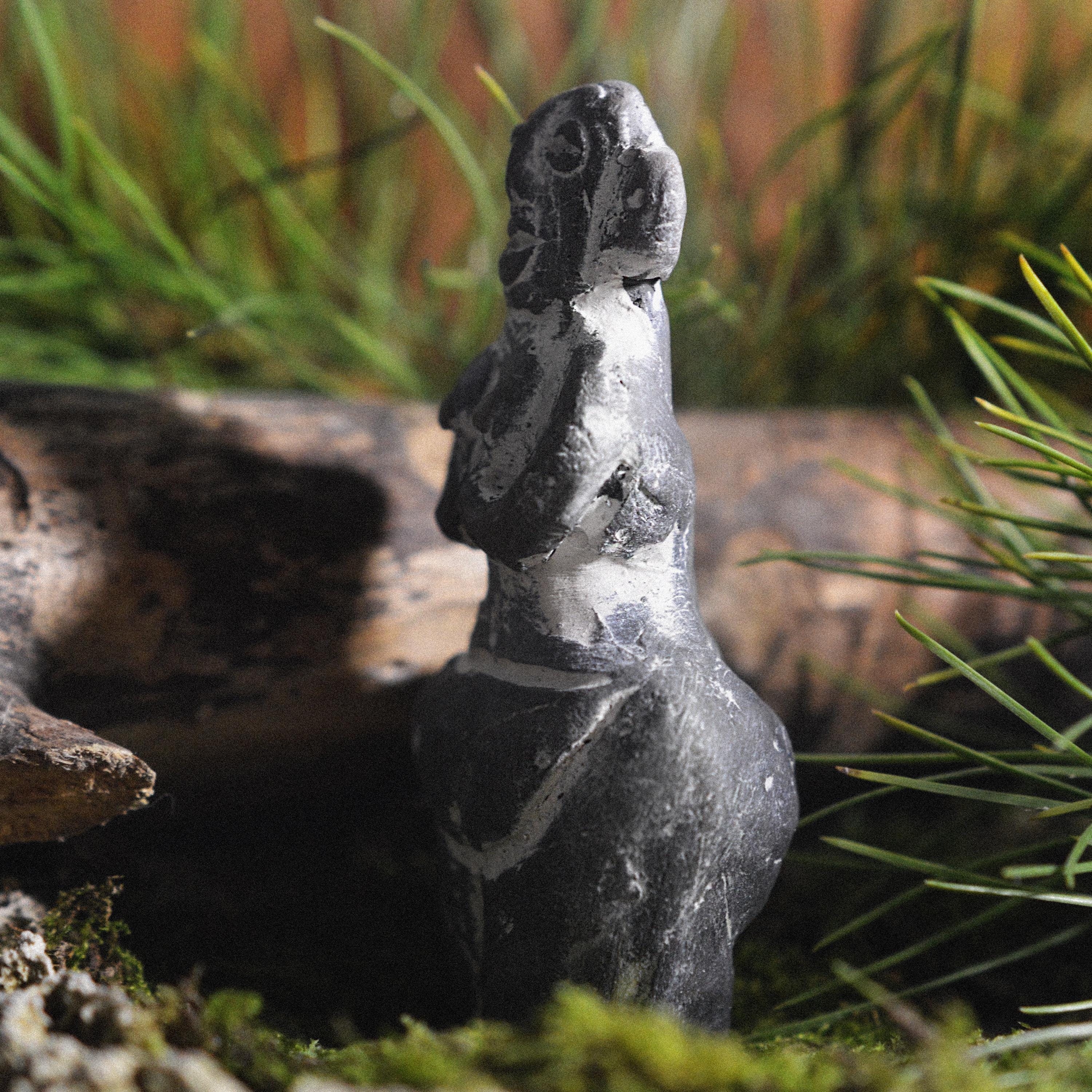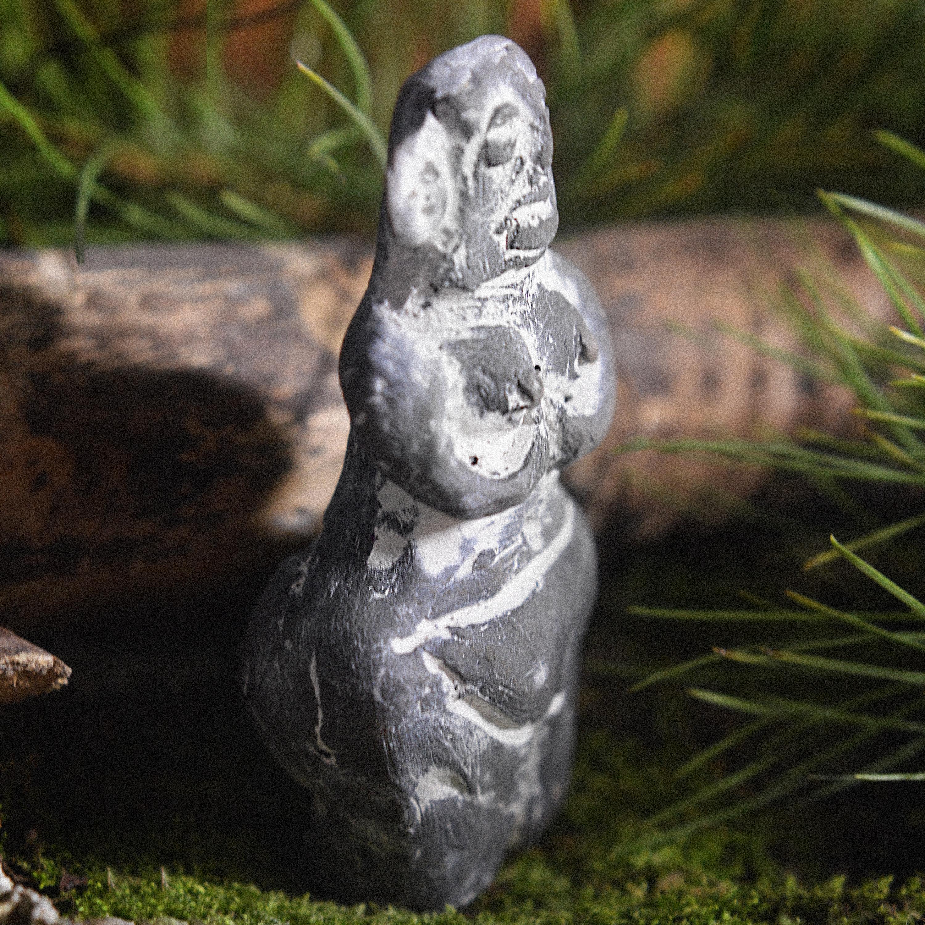 A Neolithic Grey Clay Female Standing Idol, Ceramic Sculpture, Figurine Depicts A Goddess Symbol of Fertility and Prolificacy