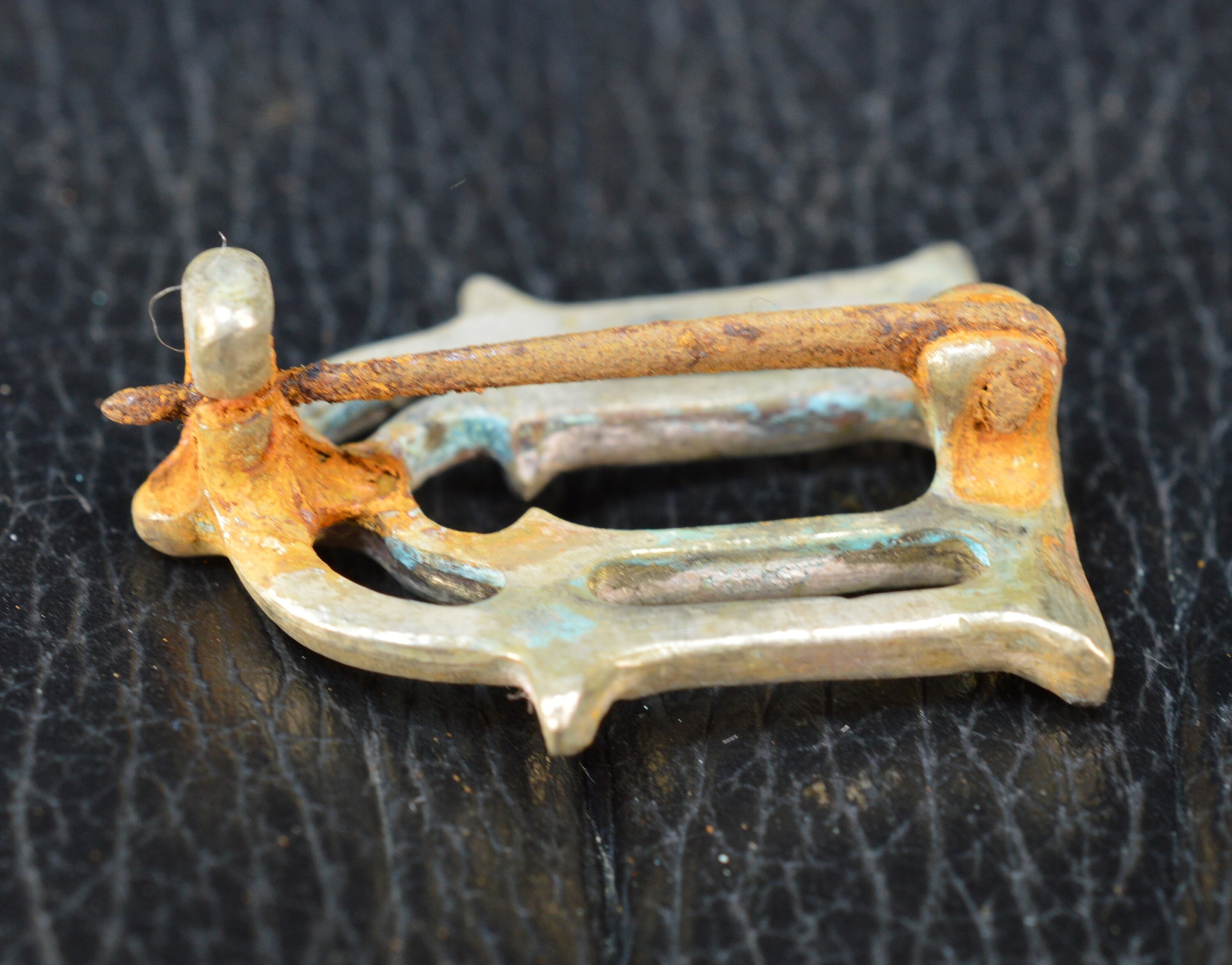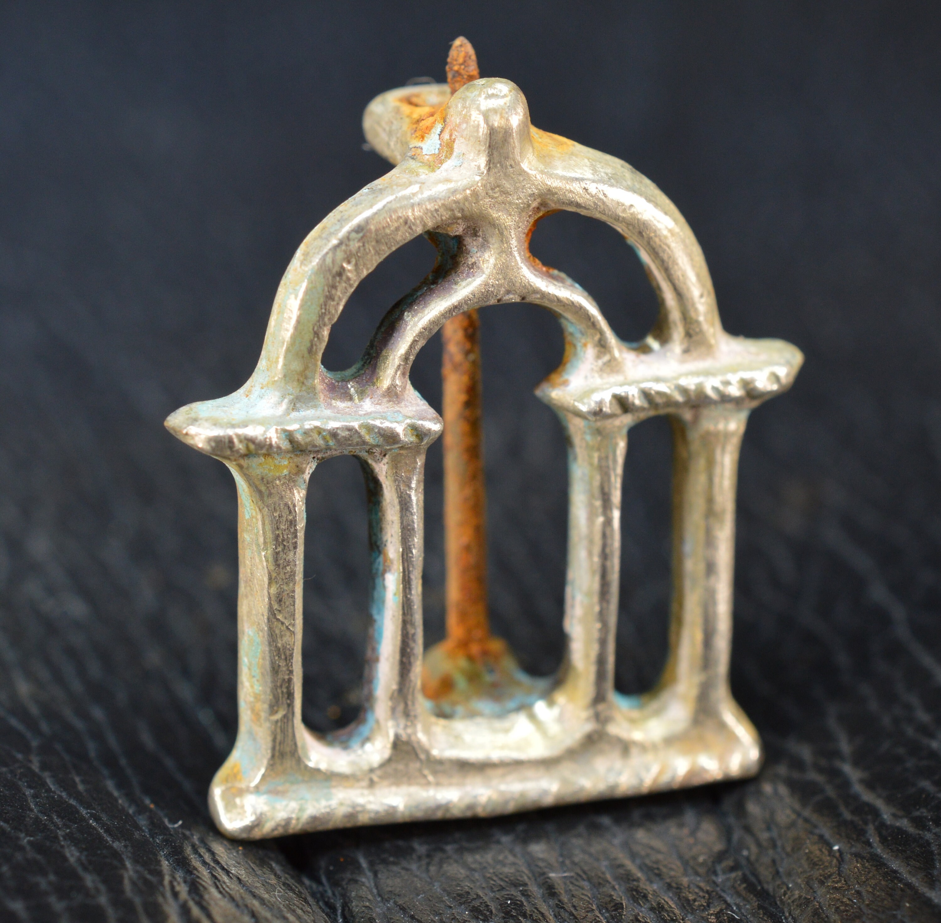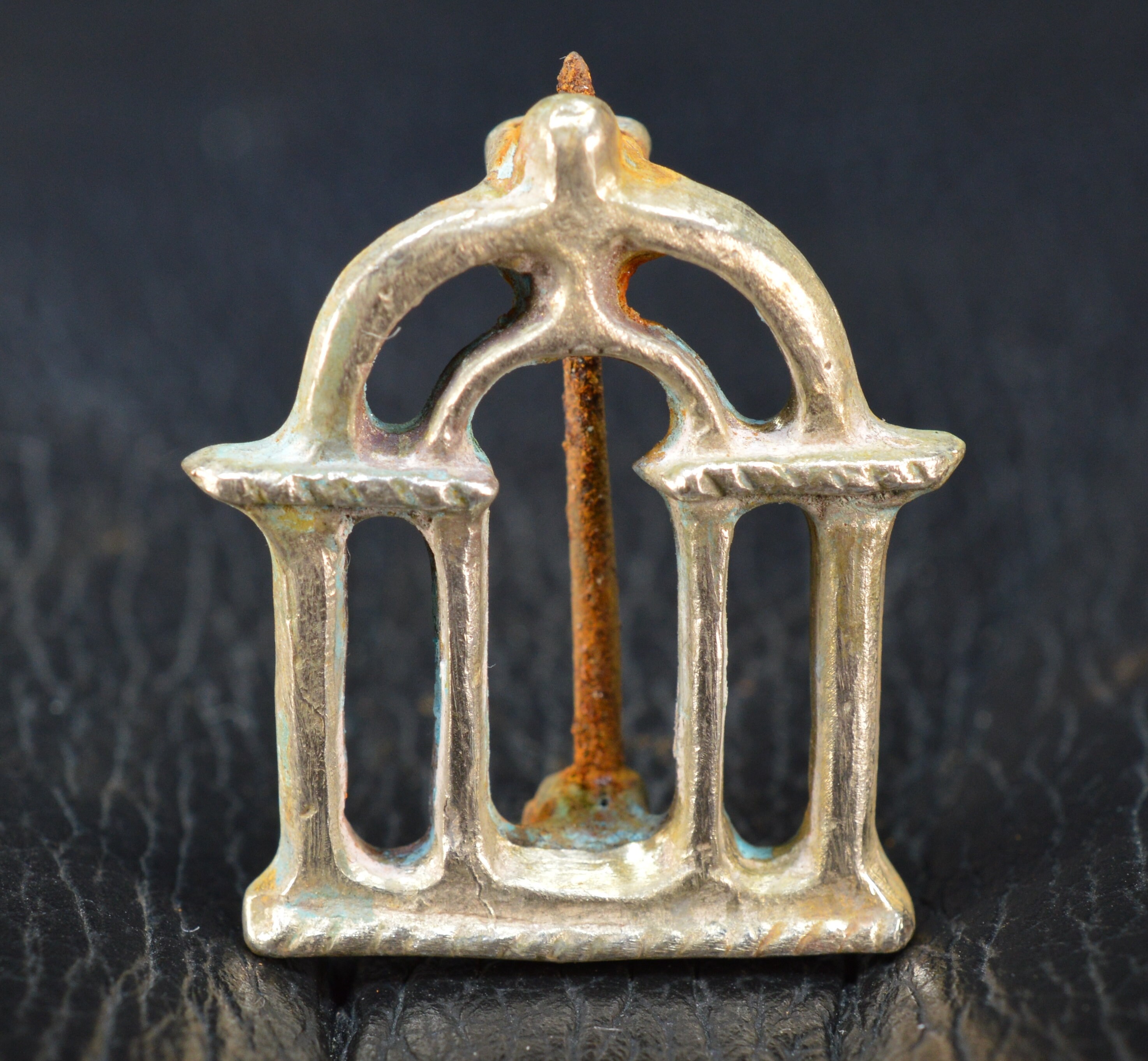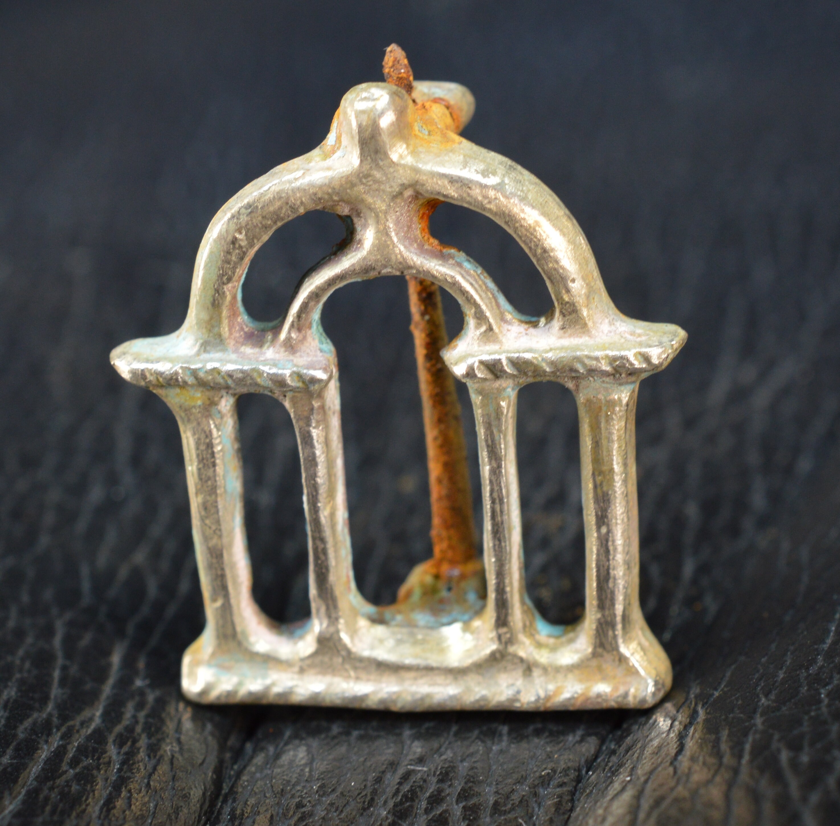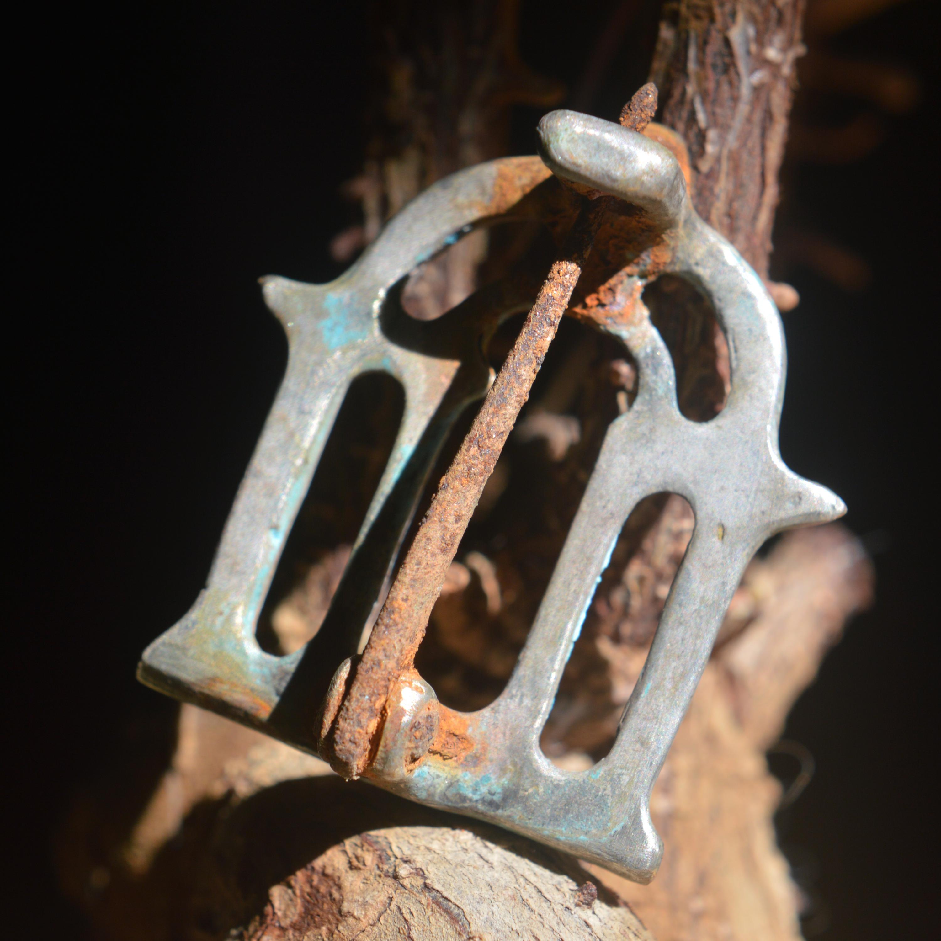 Roman Solid Silver Brooch Fibula with Iron Pin