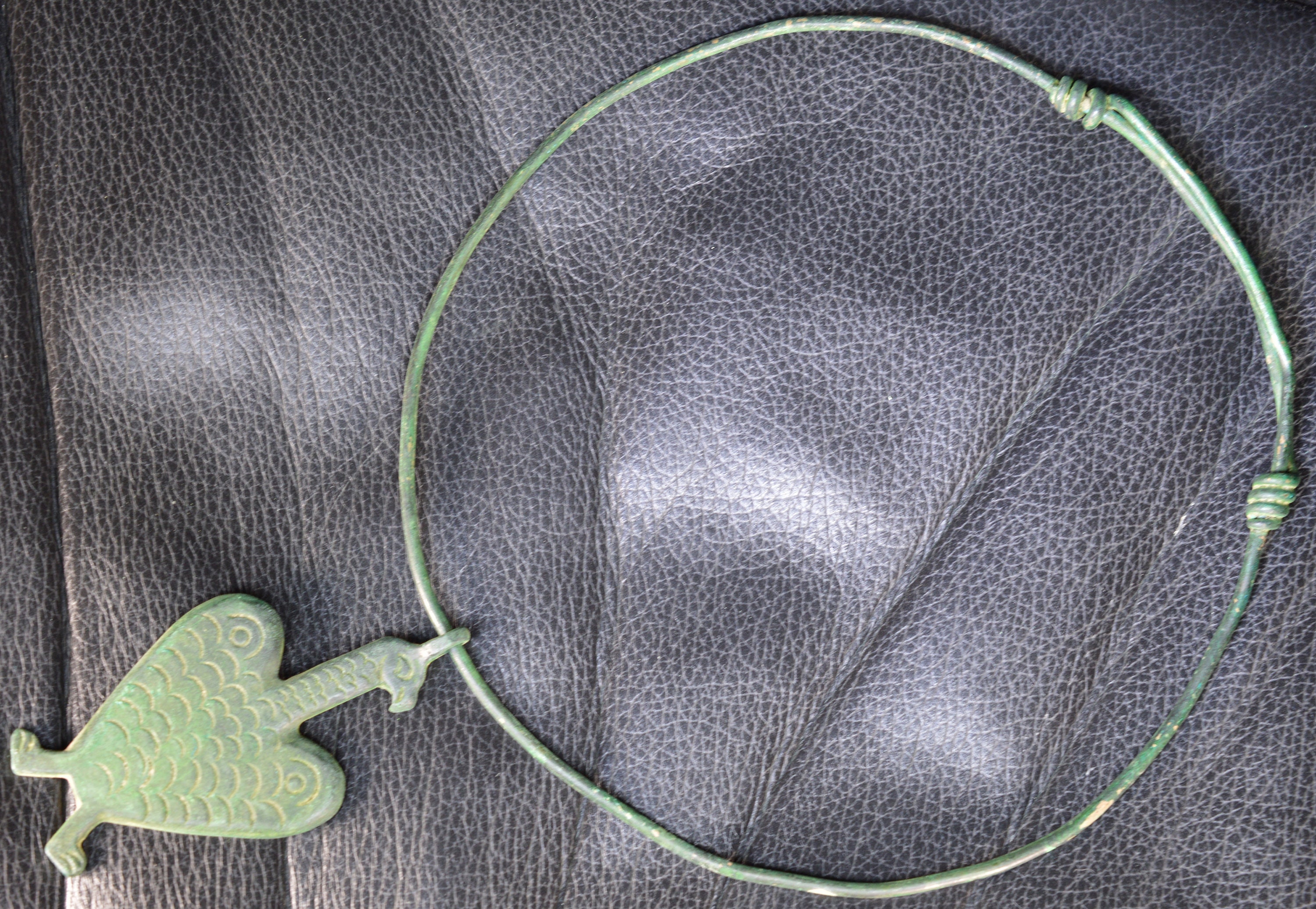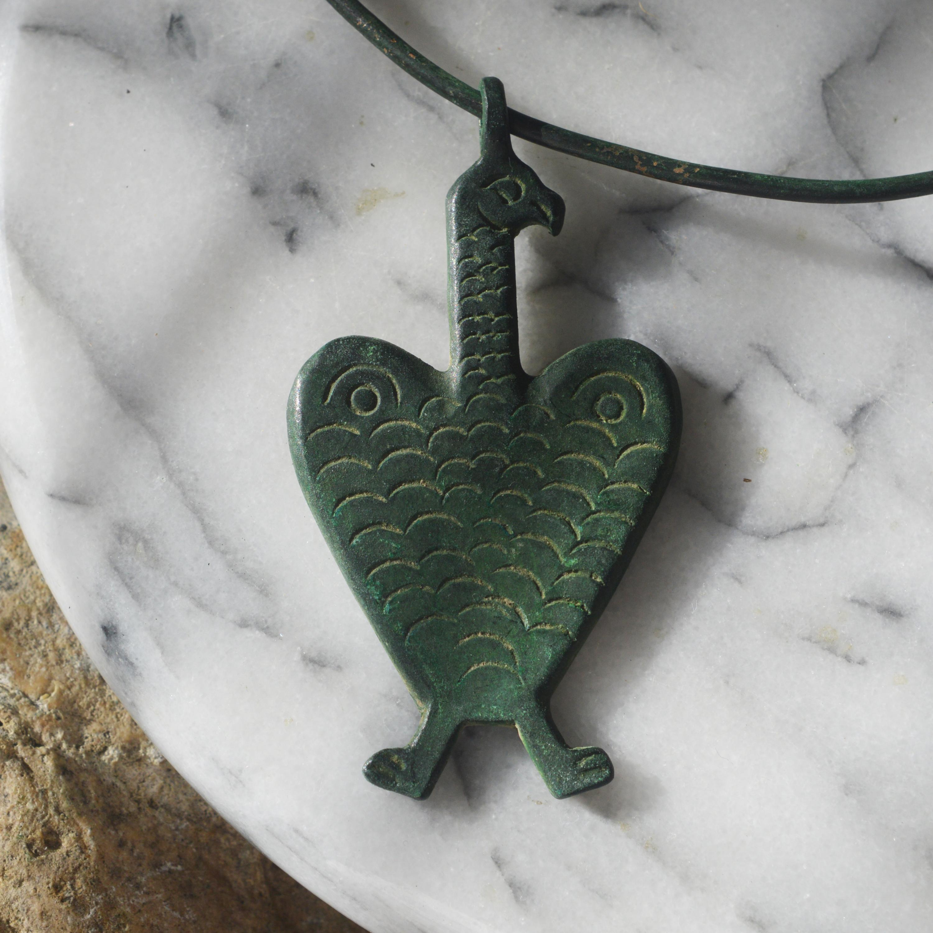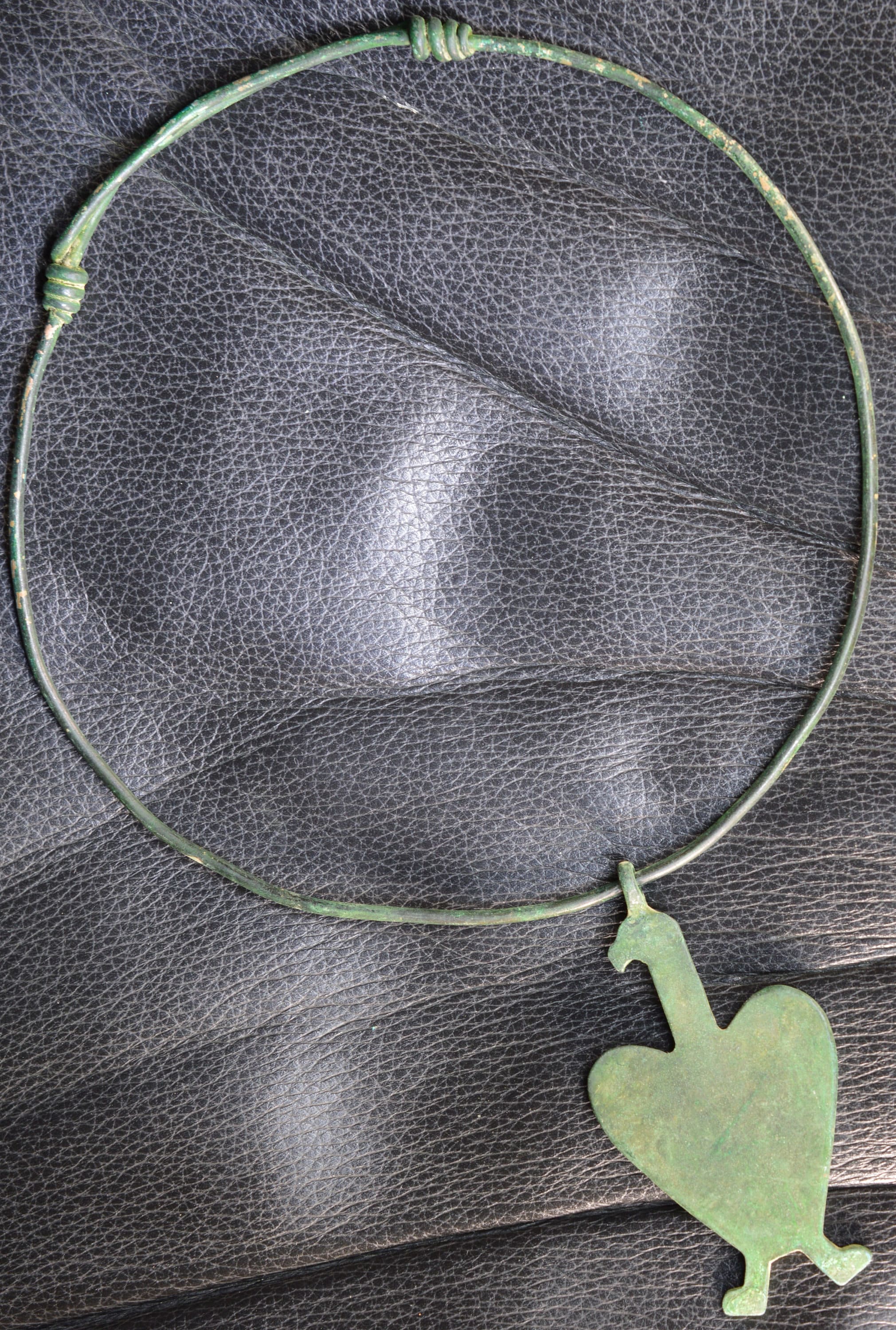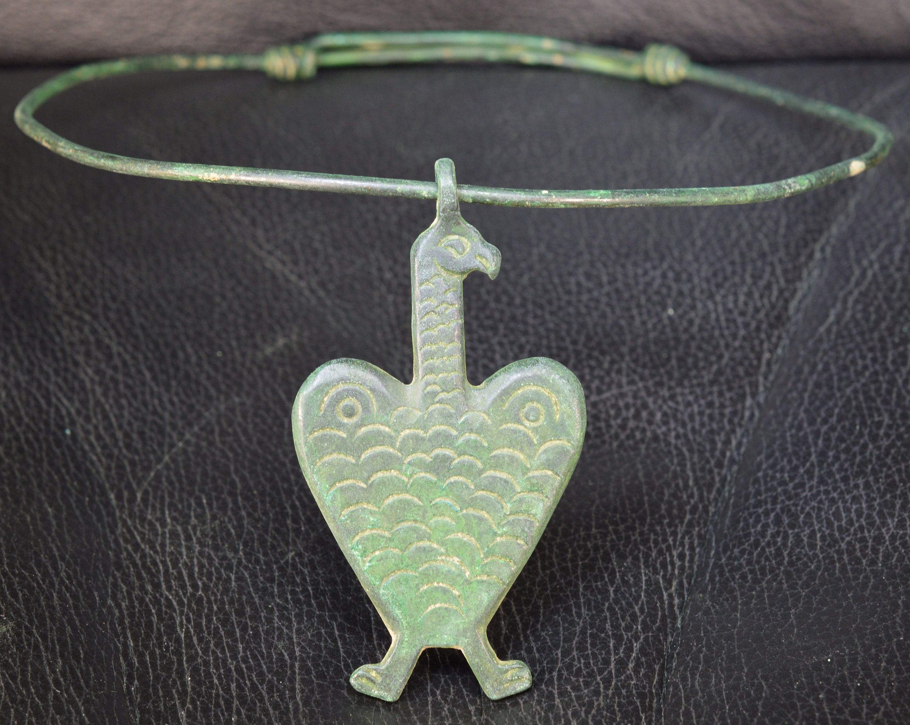 Roman Bronze Neck Torc with Eagle Amulet Pendant