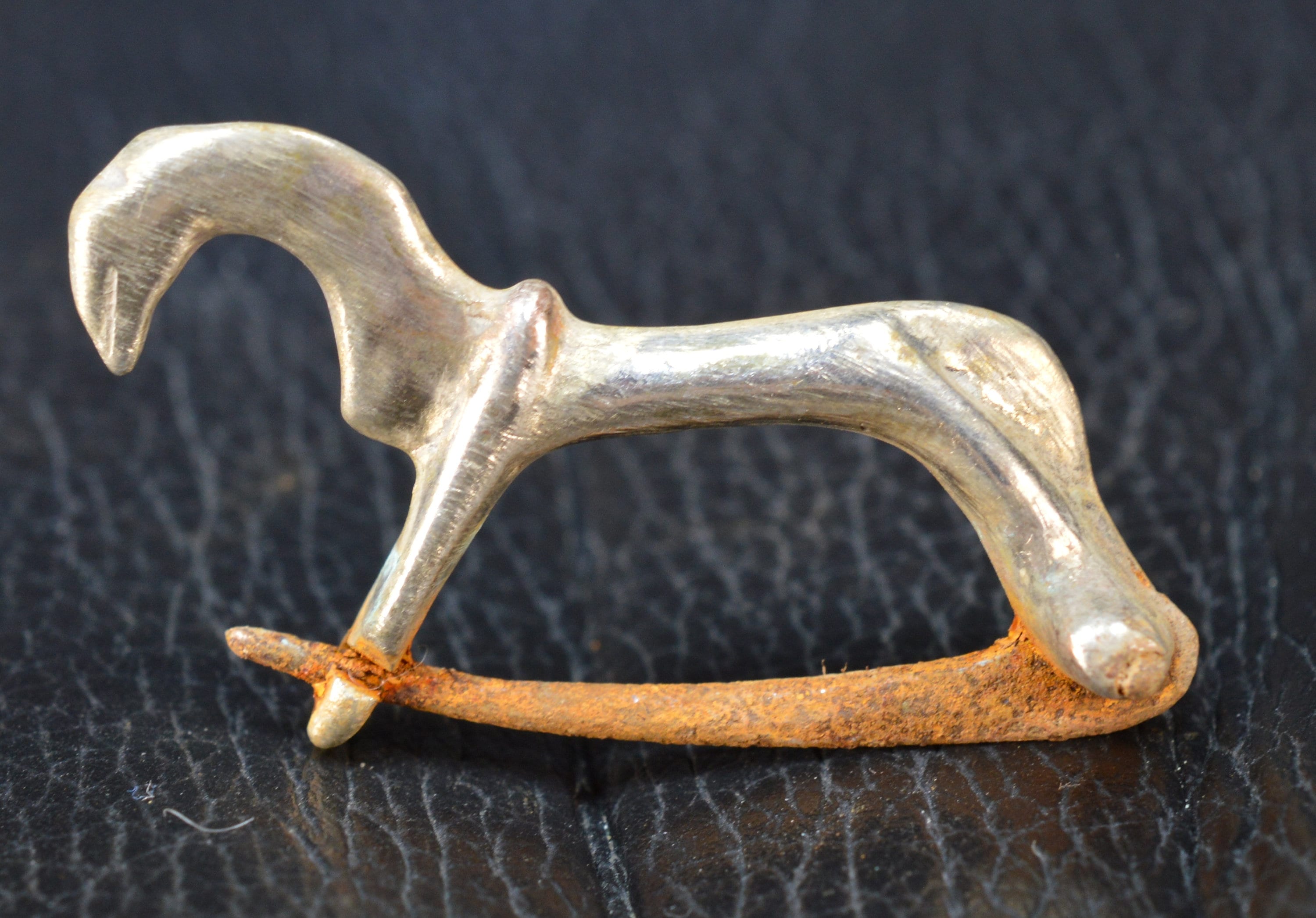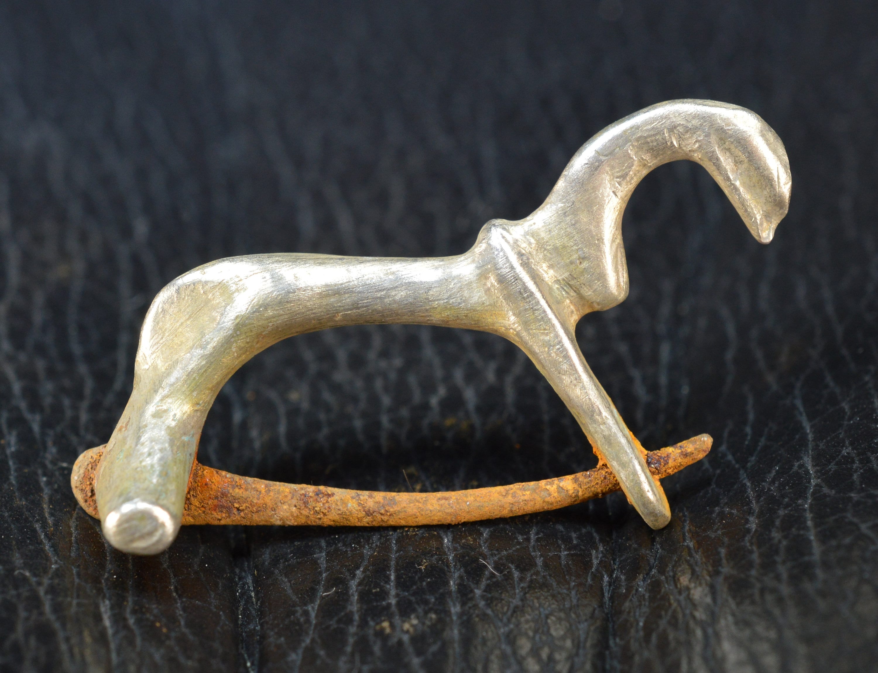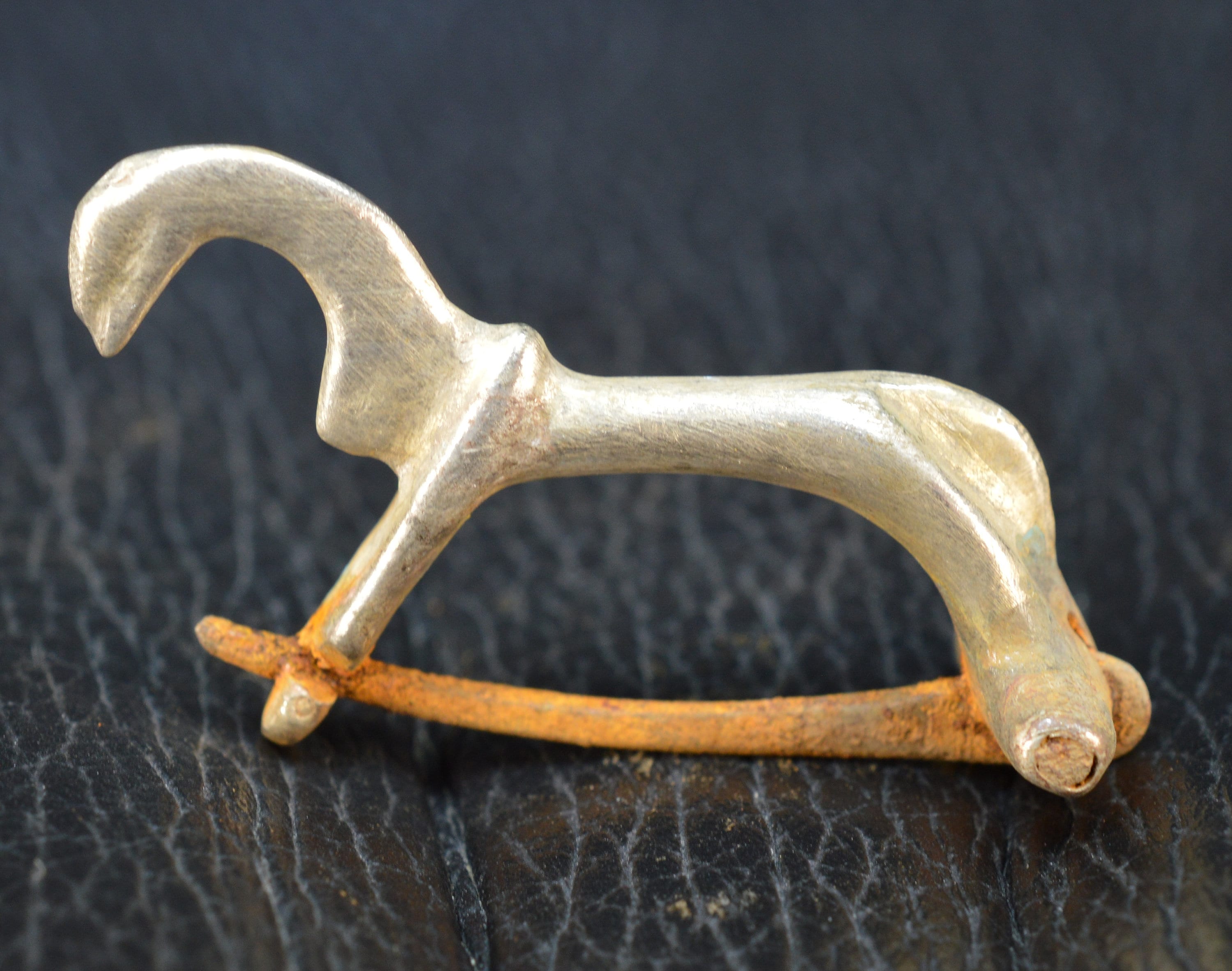 Roman Solid Silver Zoomorphic Brooch Fibula with Iron Pin