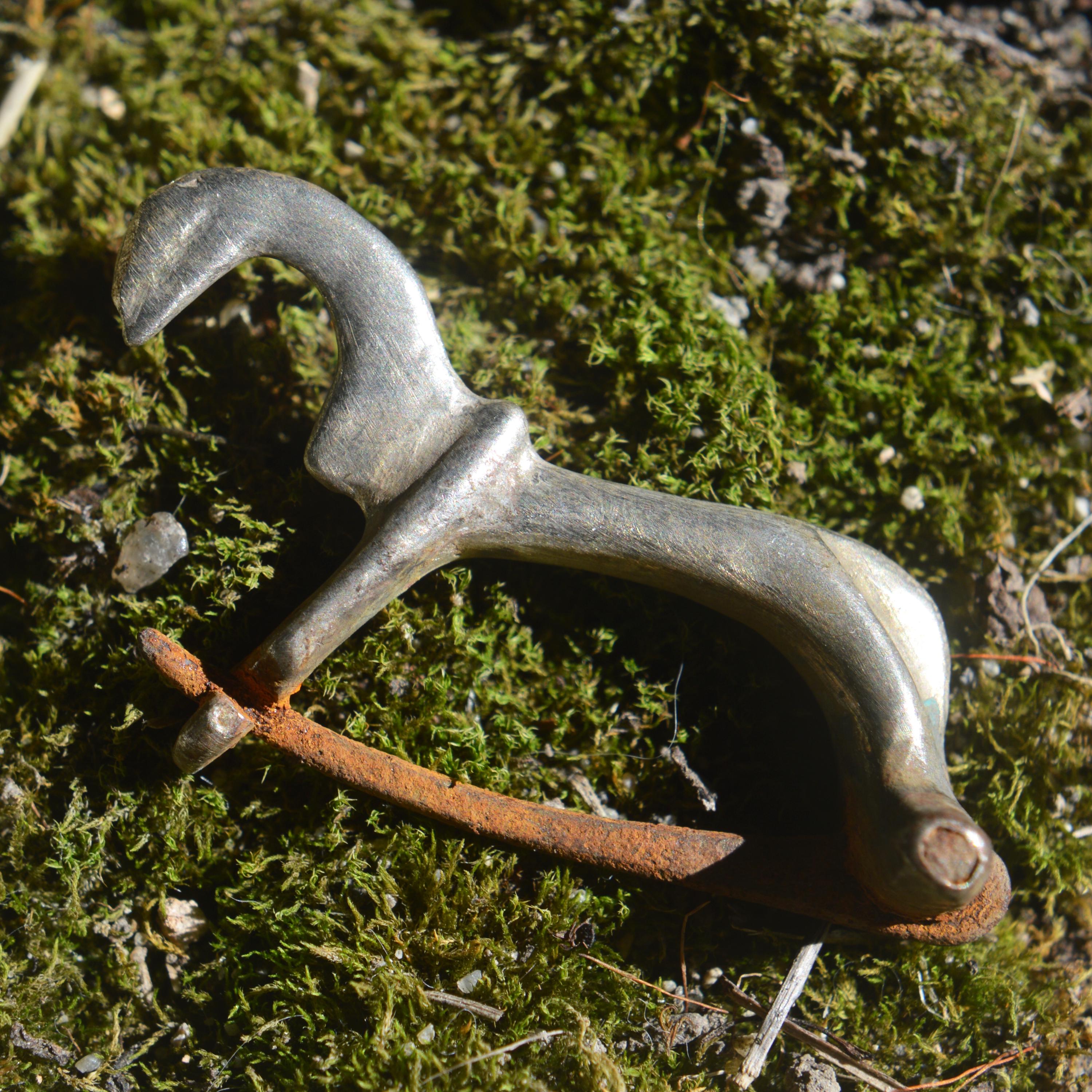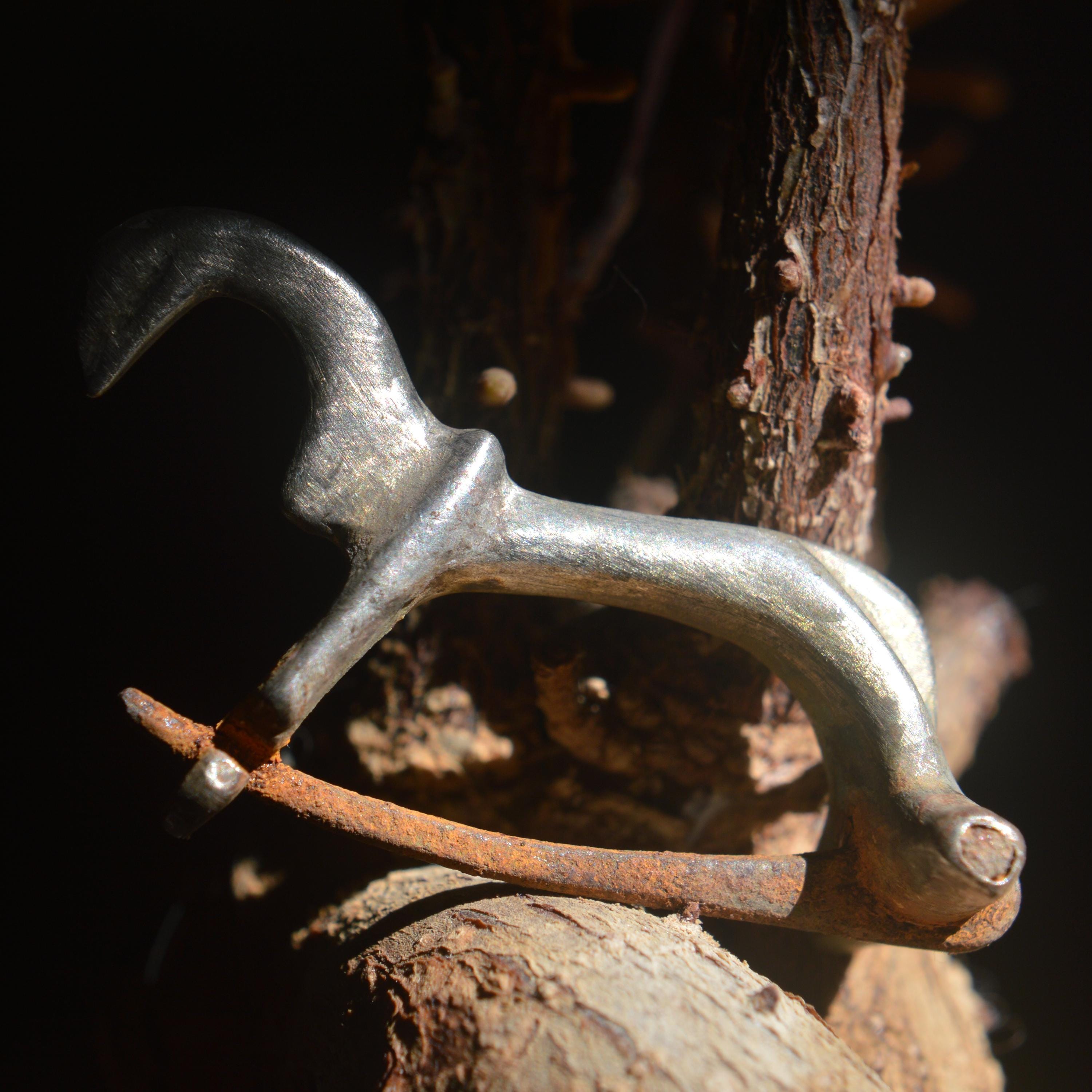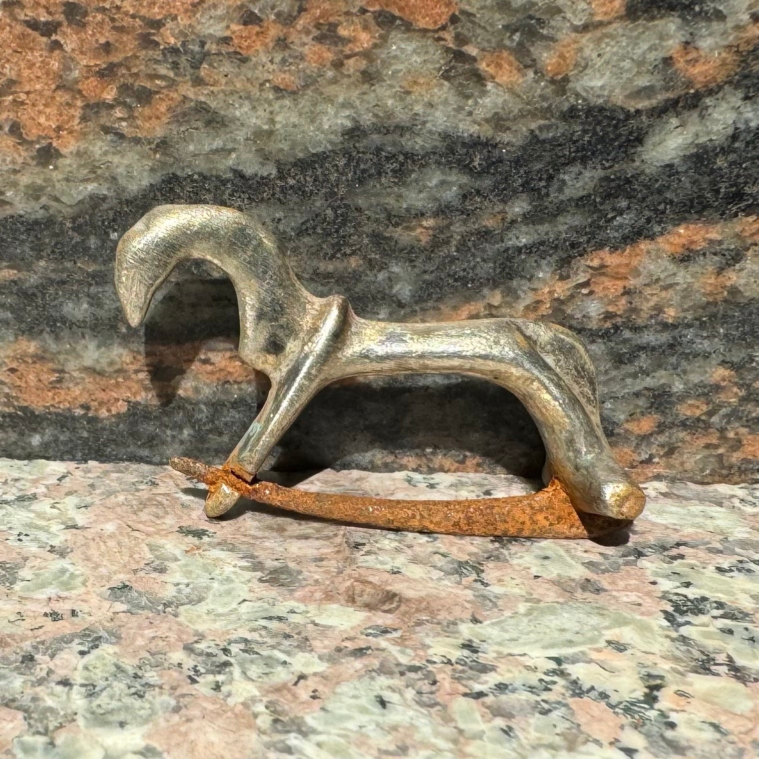 Roman Solid Silver Zoomorphic Brooch Fibula with Iron Pin